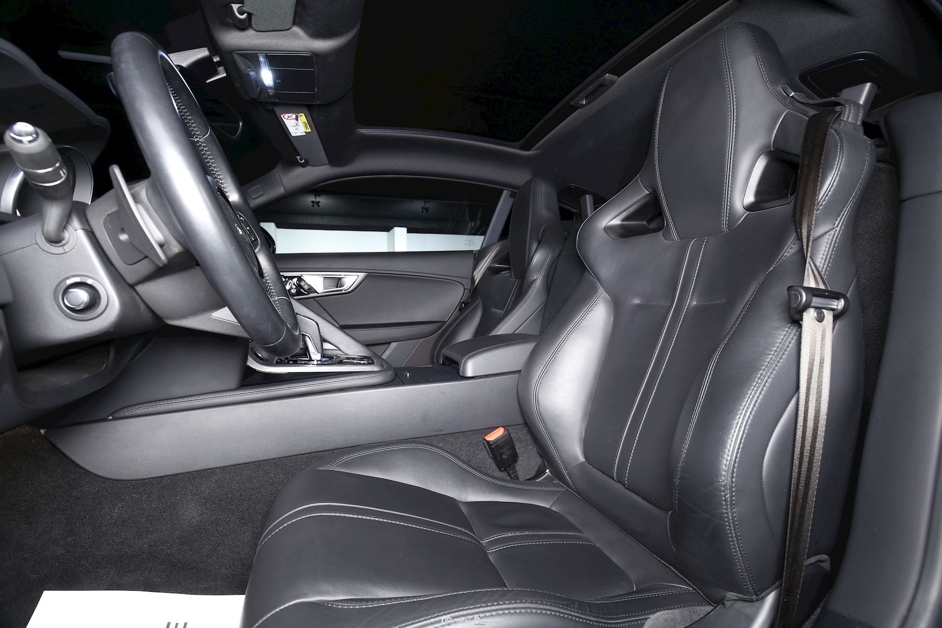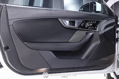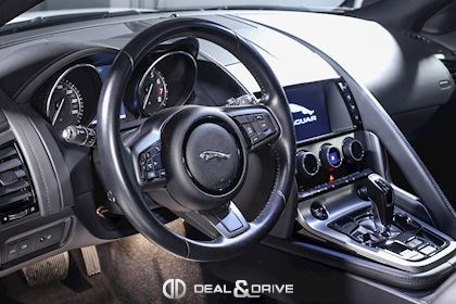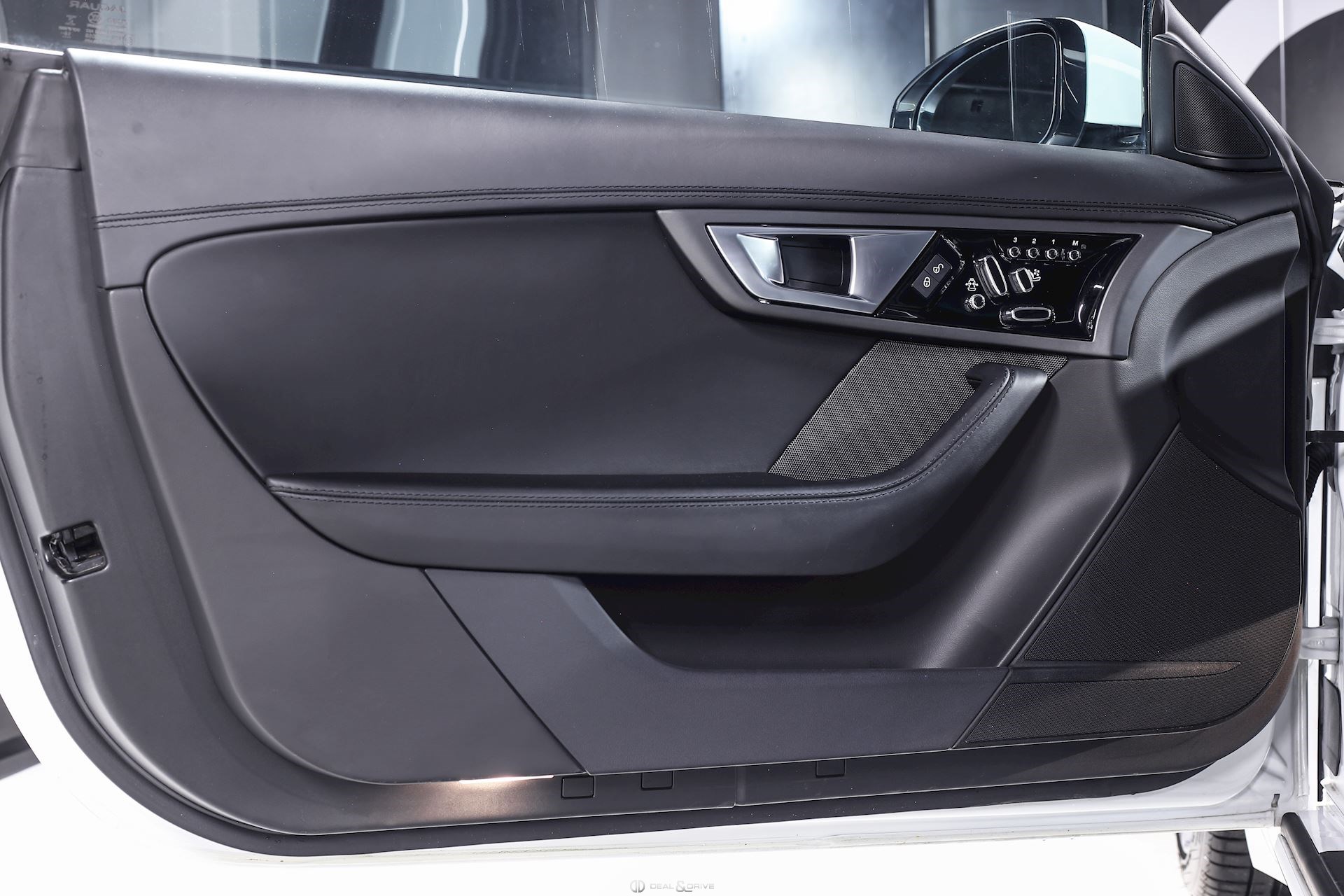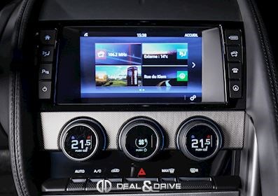 INTÉRIEUR Inserts en Graphite Grey Volant en cuir, multifonctions Volant réglable électriquement Sièges Performance Sièges électriques réglables en 14 voies Sièges chauffants Appuie-lombaires électriques Climatisation automatique Ceintures en Noir Seuils de porte en Aluminium avec inscription « JAGUAR » Tapis de sol Plafonnier Noir Garniture des portes en cuir étendu