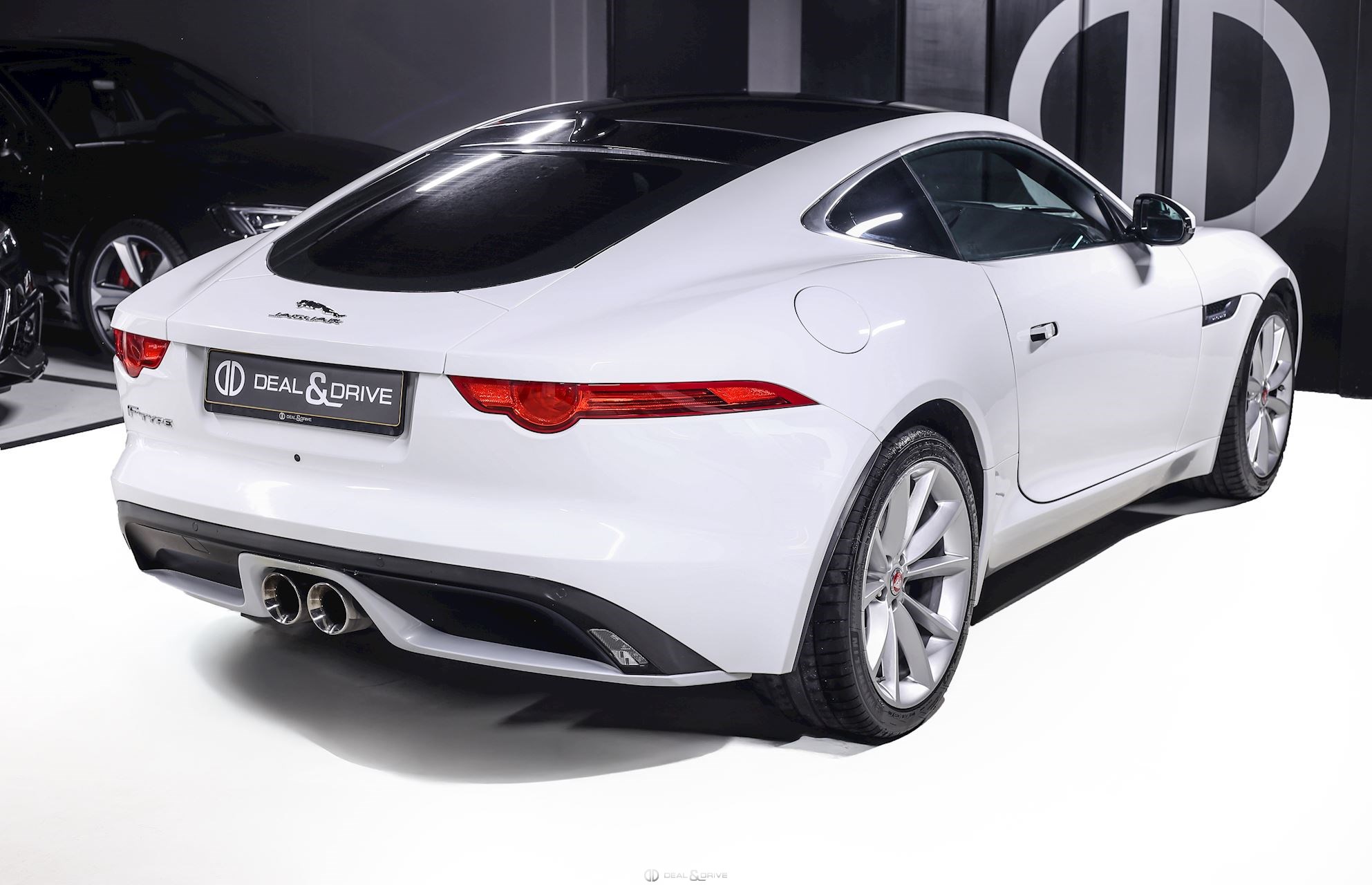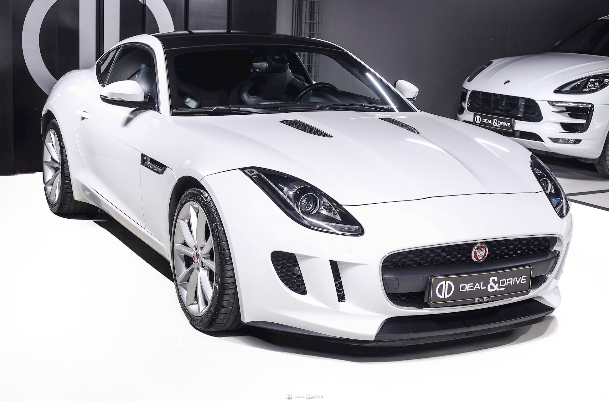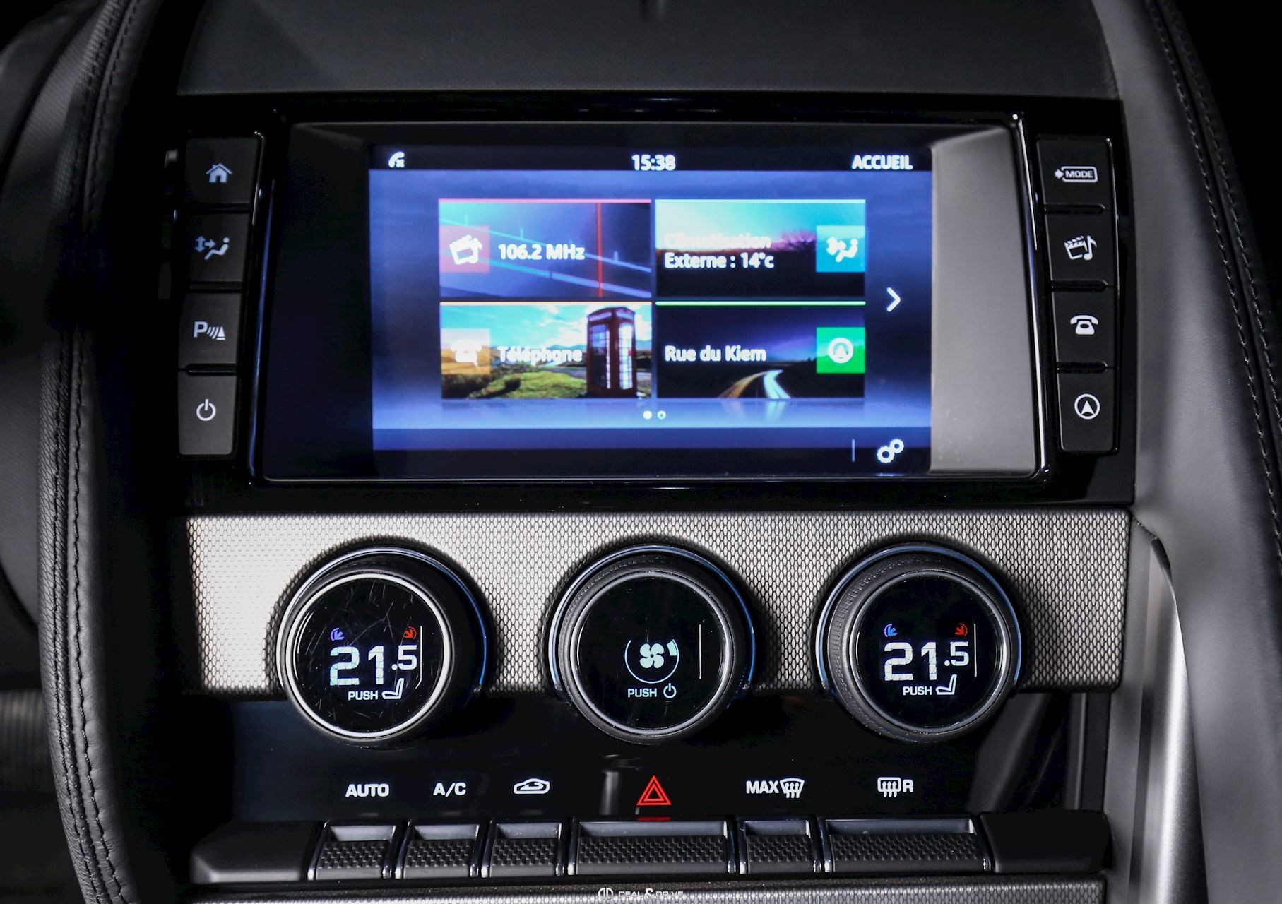 INTÉRIEUR Inserts en Graphite Grey Volant en cuir, multifonctions Volant réglable électriquement Sièges Performance Sièges électriques réglables en 14 voies Sièges chauffants Appuie-lombaires électriques Climatisation automatique Ceintures en Noir Seuils de porte en Aluminium avec inscription « JAGUAR » Tapis de sol Plafonnier Noir Garniture des portes en cuir étendu