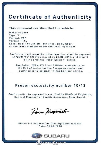 SUBARU WRX STI 2.5 AWD FINAL EDITION 1/13