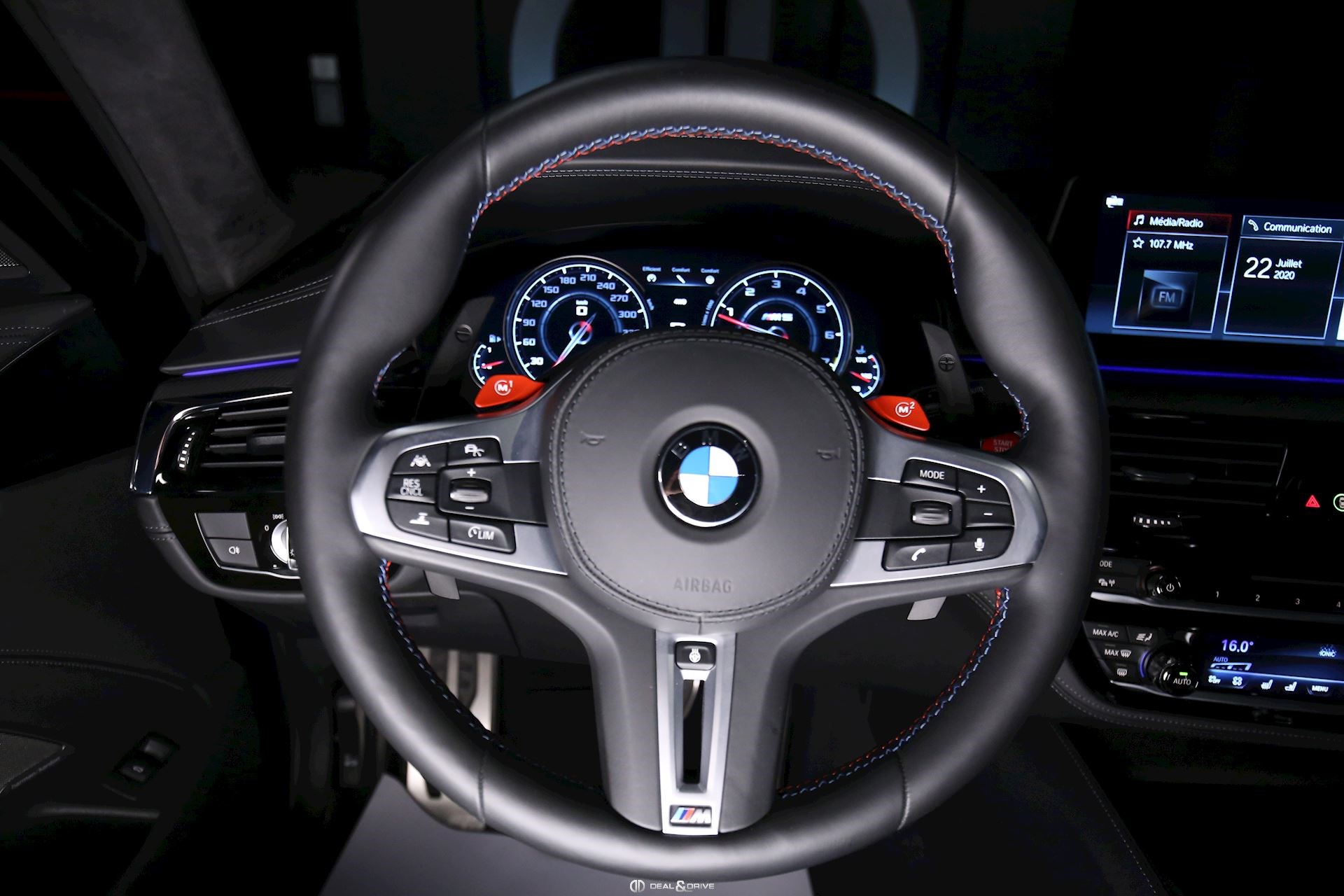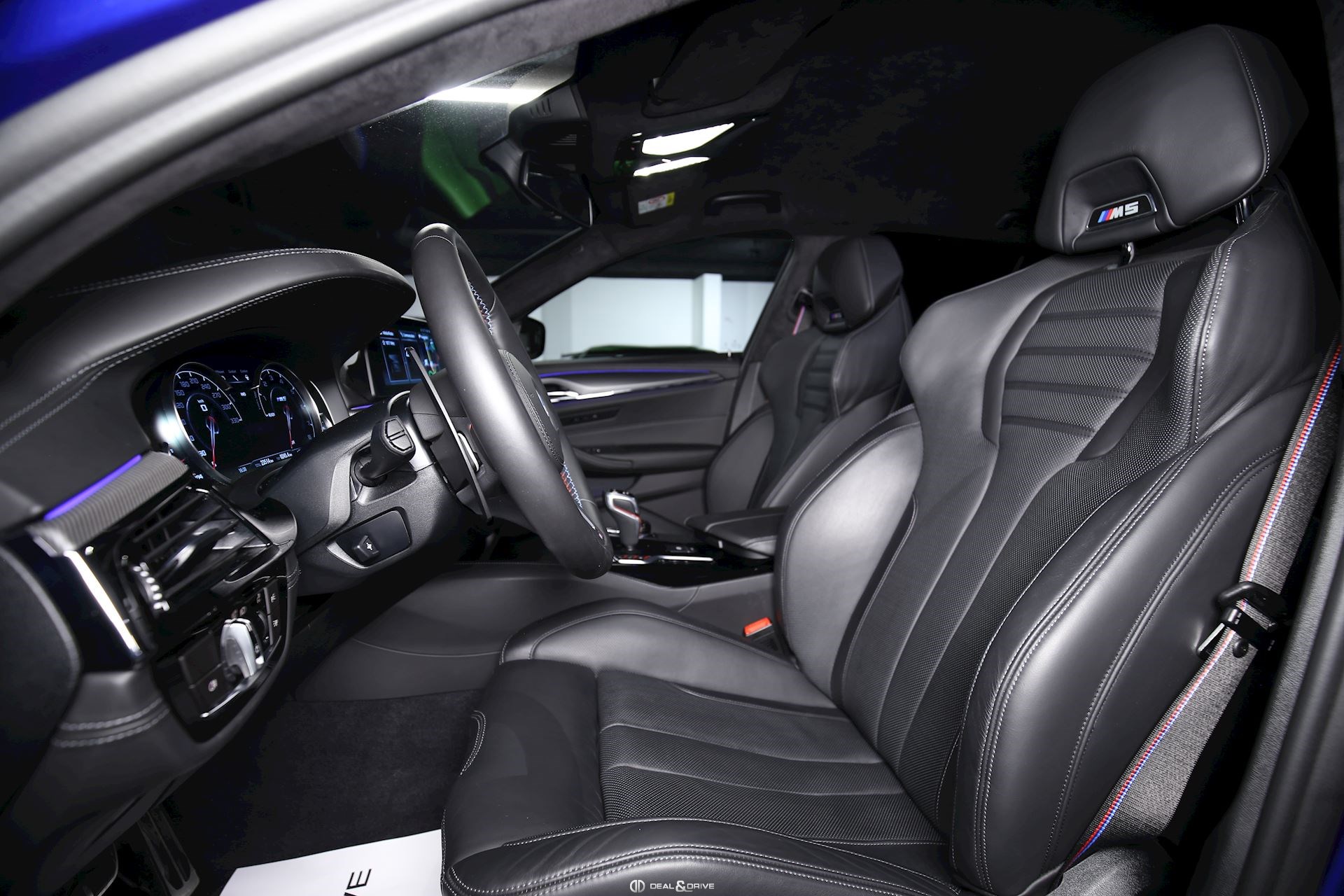 INTÉRIEUR Sellerie Cuir intégral Merino noir Plafonnier Anthracite BMW Individual Sièges avant électriques M Sièges avant ventilés Sièges avant chauffants Sièges arrière chauffants Sièges avant avec fonction mémoire Appui-lombaires Ceintures de sécurité M Volant en cuir multifonctions Volant chauffant Seuils de portes avec Monogramme M-Technic Volant M-Technic Climatisation automatique 4 zones Intérieur finition Aluminium Carbone Volant réglable électriquement Accoudoir central avant Rétroviseur Intérieur avec fonction anti-éblouissement Tapis de sol Palettes de changement de vitesse