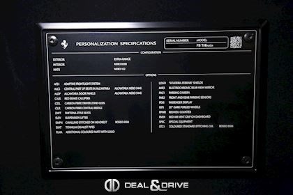 DAYT Daytona Style Seats EMPH Cavallino Stitched on Headrest (Rosso 0504) FLMA Additional Coloured Mats with Logo SPEC Special Equipment STC1 Coloured Standard Stitching O.R. (Rosso 0504) PDIS Passenger Display RPMR Red Rev. Counter RVEN Red Air Vent Grip On dashboard