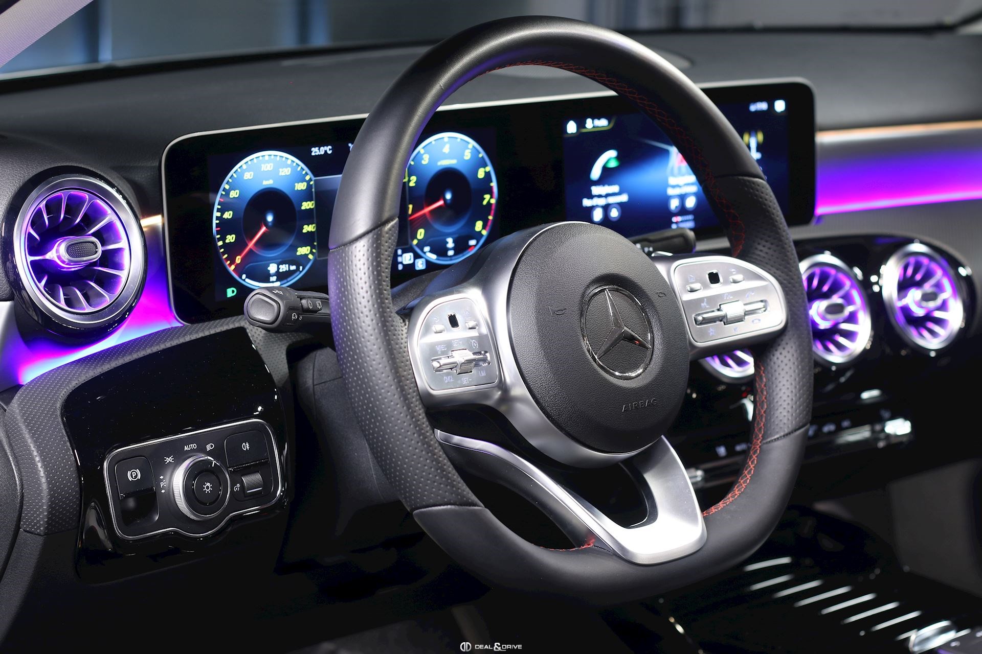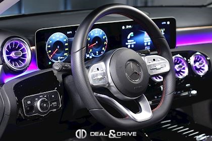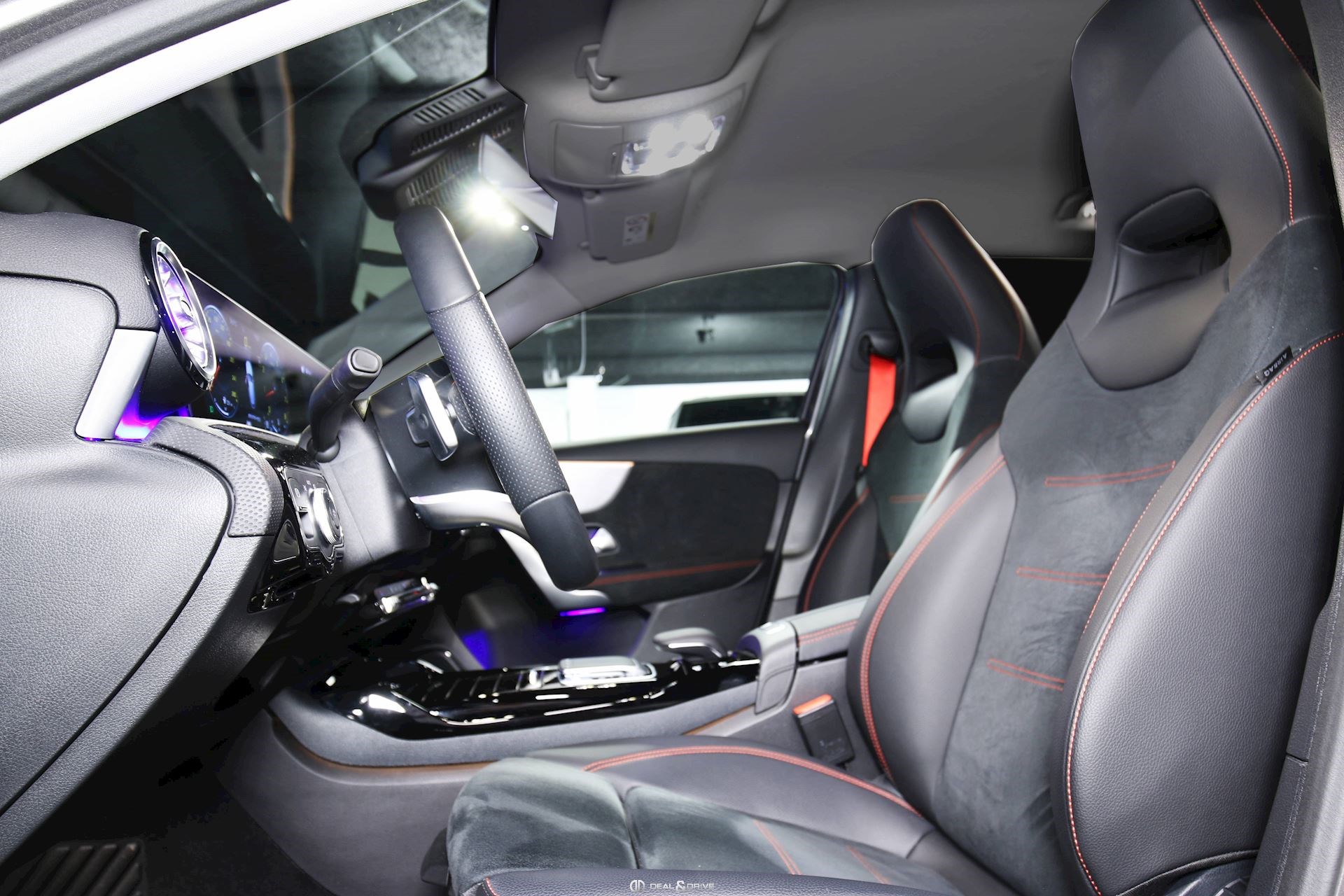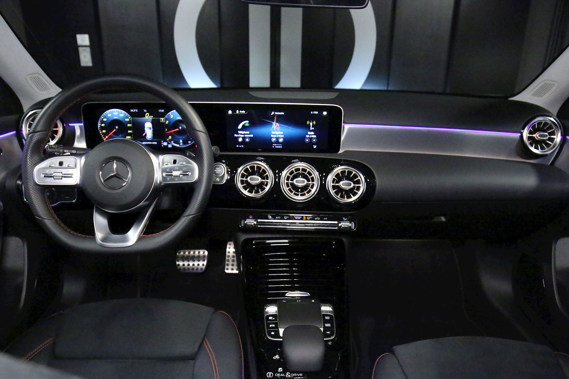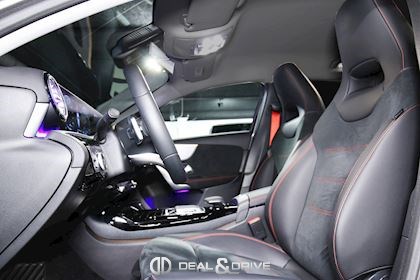 Console centrale avant avec rideau occultant Seuils de portes éclairés MBUX Augmented Reality pour Navigation Ceintures de sécurité rouge Climatisation automatique Thermatic Plafonnier noir Pack Lumière & Visibilité Pack siège confort Pédalier acier inox Design Sport Sièges Sport avant Tapis de sol AMG Volant en Cuir Nappa multifonctions USB à l’arrière
