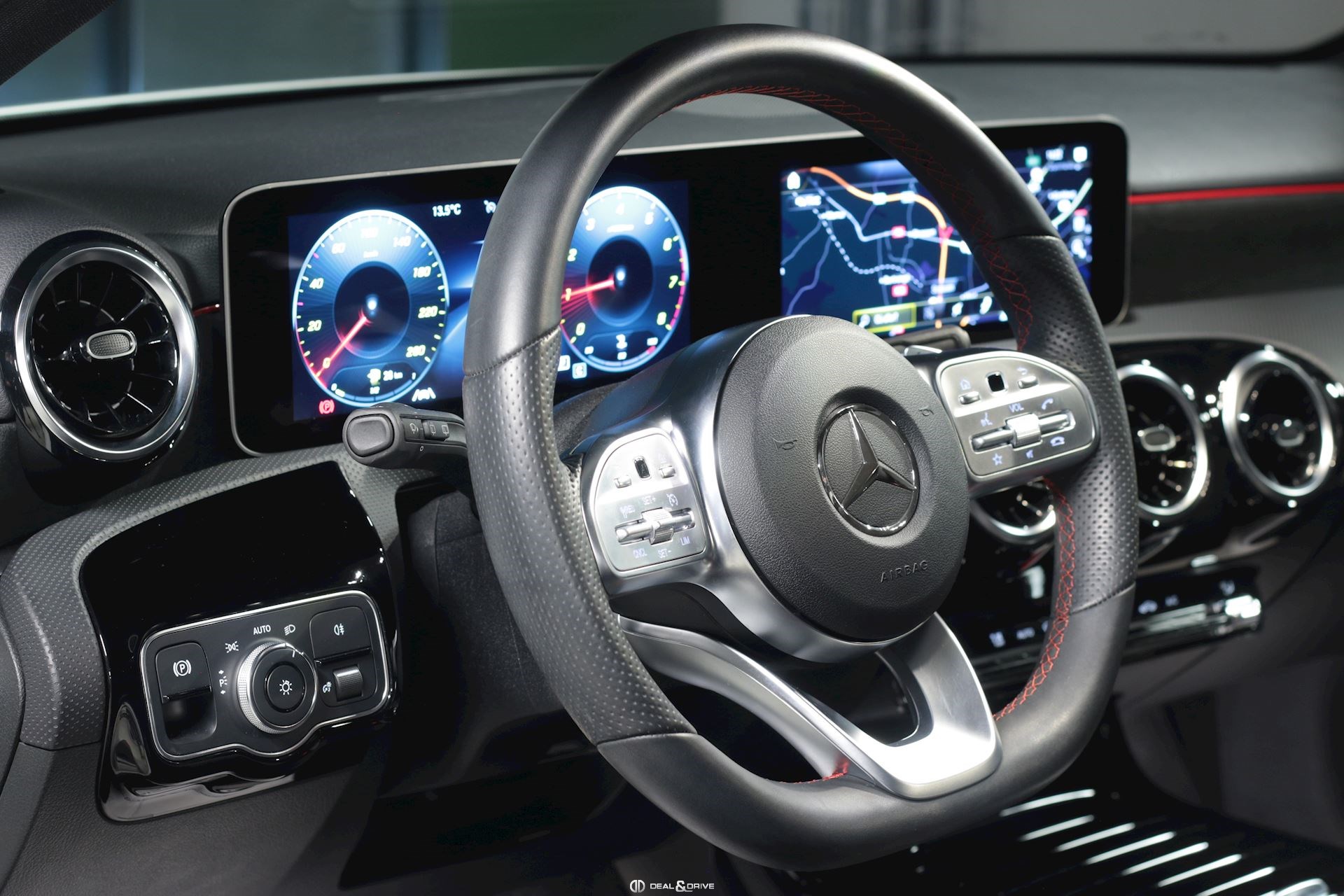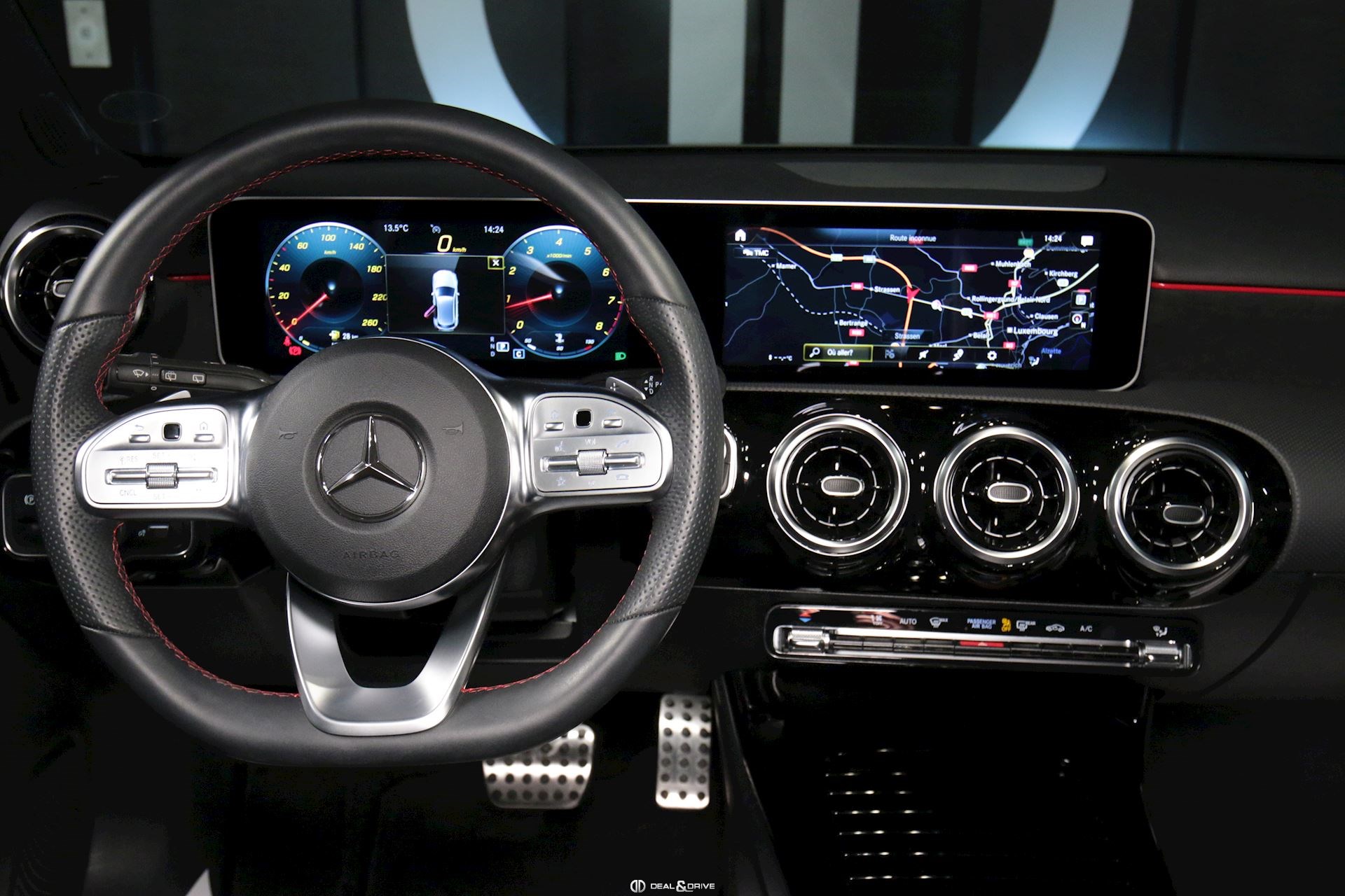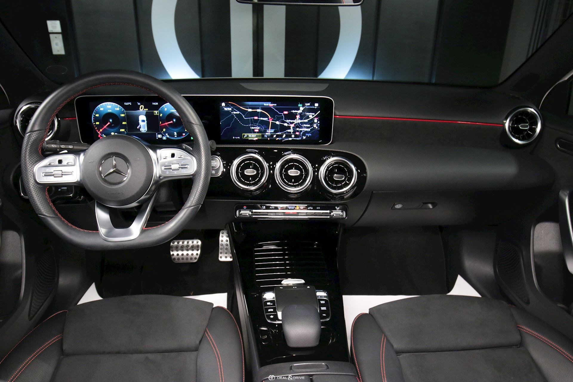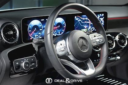 INTÉRIEUR Pack intérieur AMG-Line Appuie-lombaires avant électriques Console centrale avant avec rideau Dossier arrière rabattable en deux parties Sièges avant chauffants Tapis de sol AMG Plafonnier noir Sellerie en simili-cuir Artico / Dinamica Sièges avant Sport Support à boissons avant double Volant en cuir Nappa Touchpad sur la console centrale Pack siège confort Intérieur finition Aluminium poli Navigation MBUX Augmented Reality pour Navigation