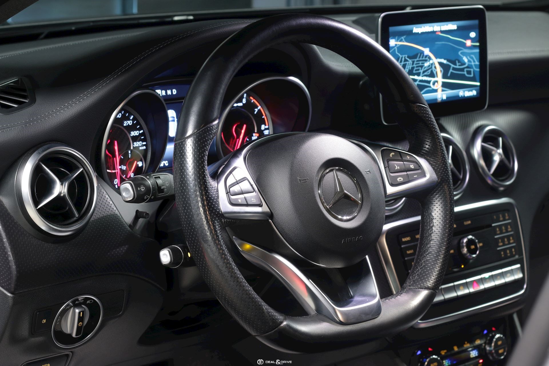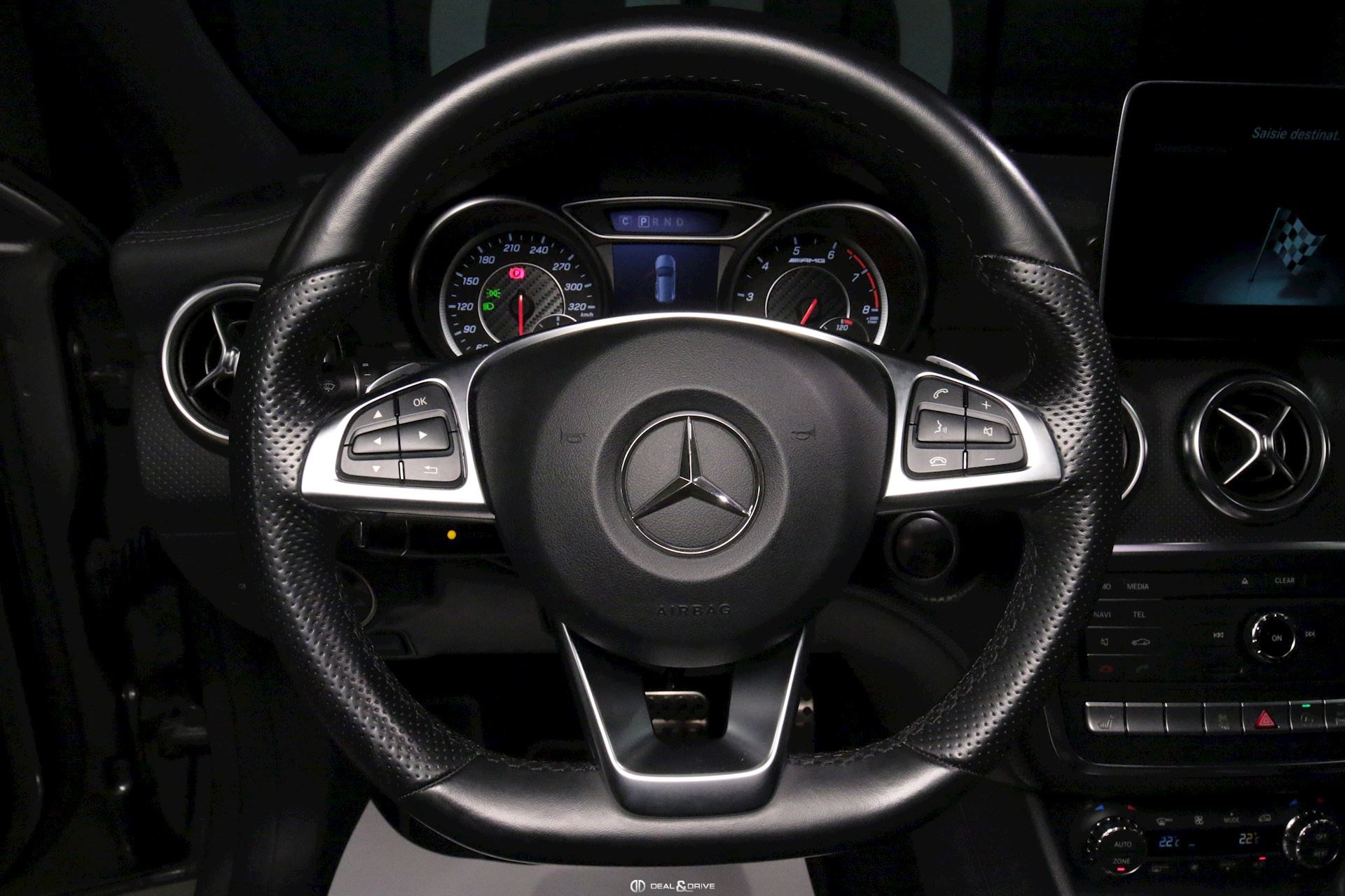 INTÉRIEUR Pack sièges confort Sièges avant chauffants Climatisation automatique 2 zones Thermotronic Pédalier en inox Soutiens lombaires réglables électriquement Volant sport multifonctions Plafonnier en tissu noir Tapis de sol AMG