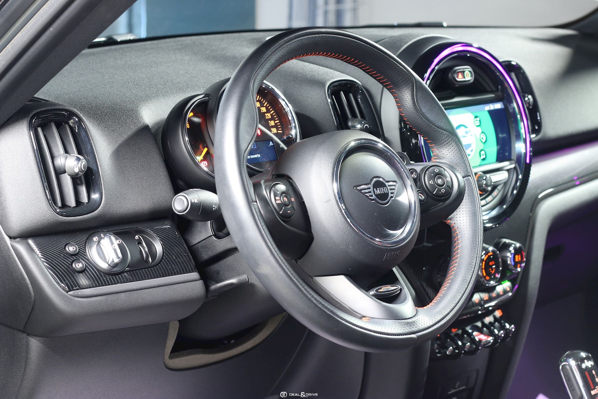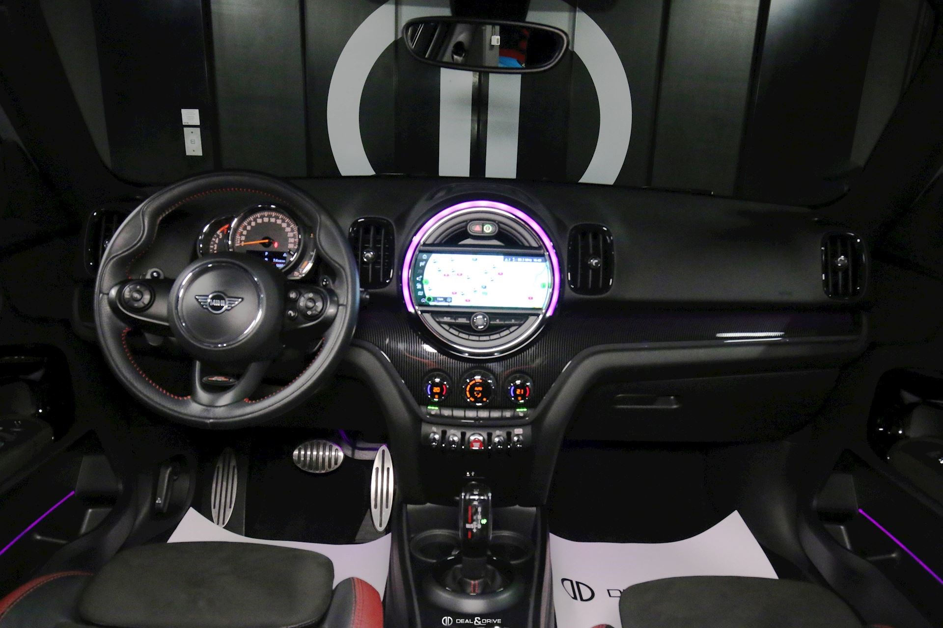 INTÉRIEUR Plafonnier Anthracite Sellerie cuir dinamica Sièges avant chauffants Sièges Sport avant John Cooper Works Volant Sport John Cooper Works Système de personnalisation de profil Intérieur finition carbone black Frein de stationnement électrique
