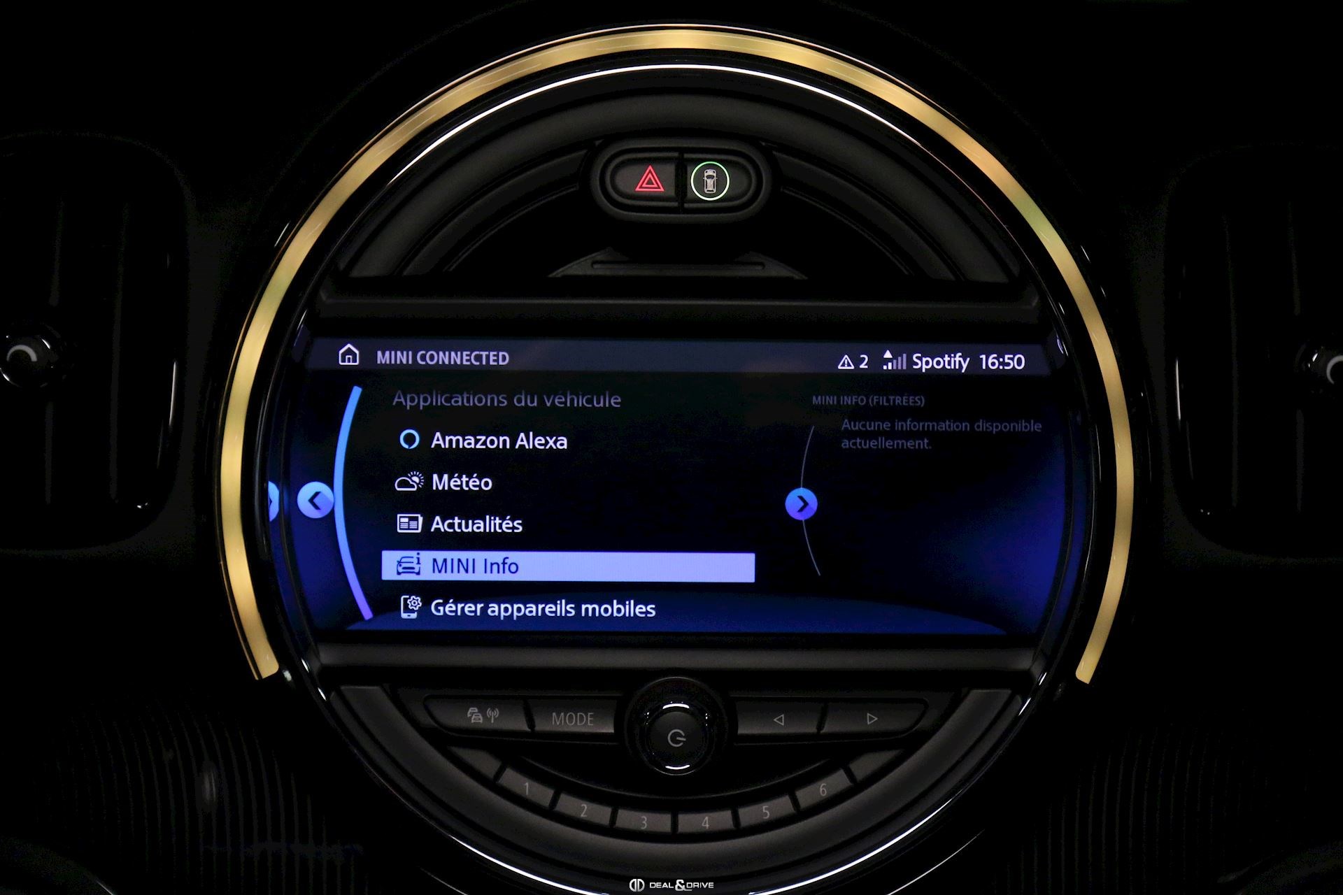 Equipements : EXTÉRIEUR Pack Aérodynamique John Cooper Works Instrument central avec anneau LED Rétroviseurs extérieurs en Noir Feux antibrouillards Feux LED adaptatifs Régulateur de vitesse Accoudoir central avant Tapis de sol Climatisation automatique 2 zones Mini Driving Modes