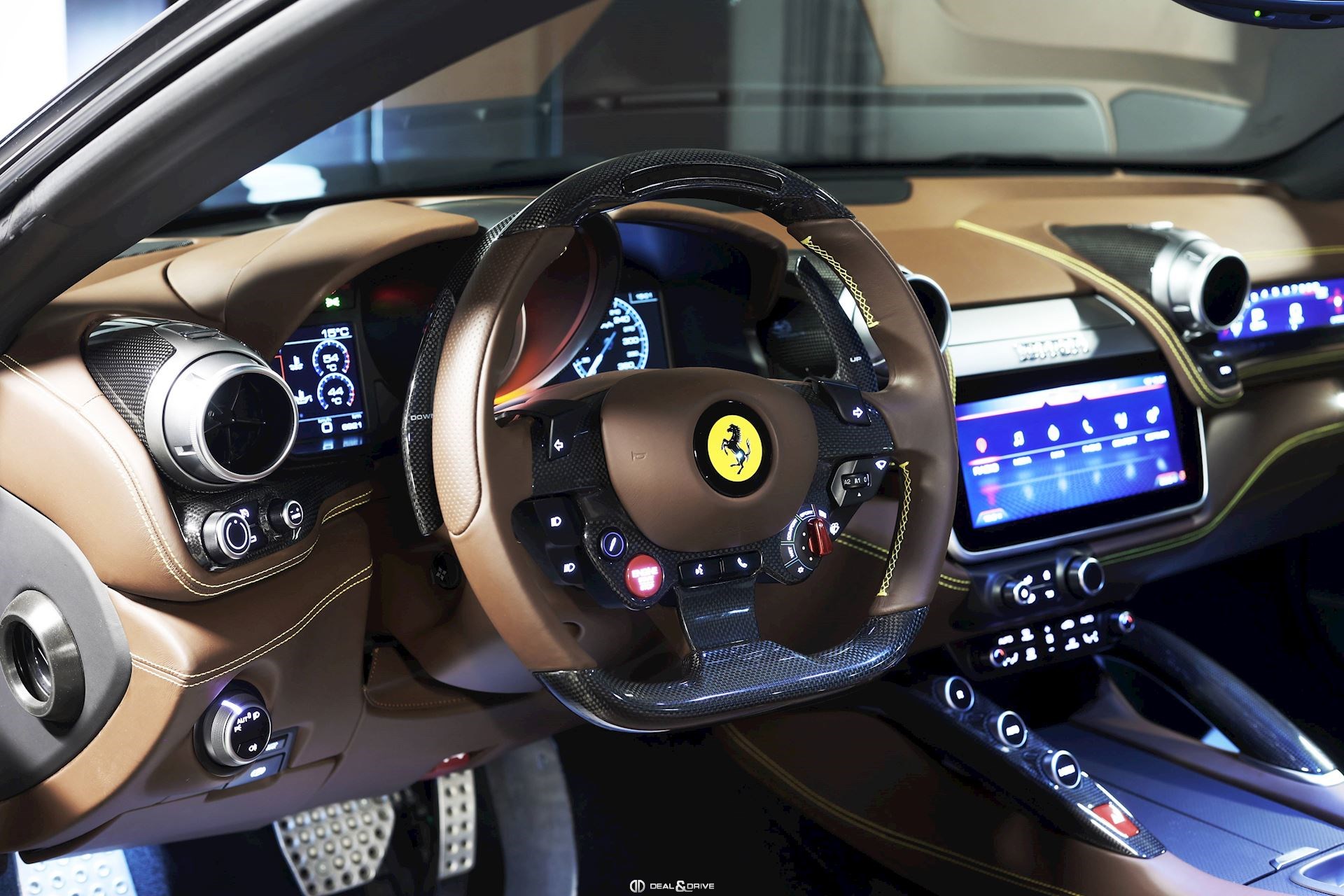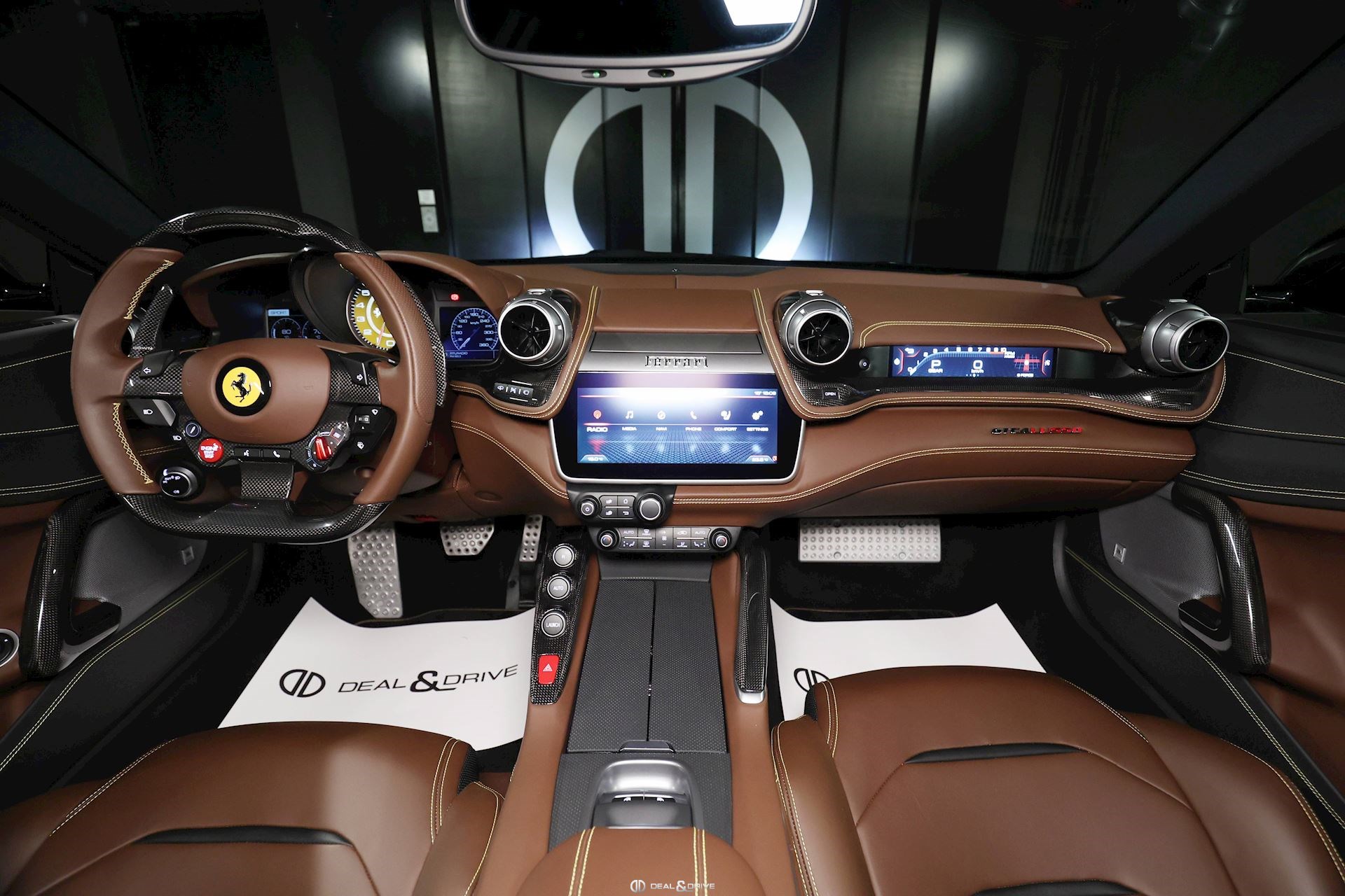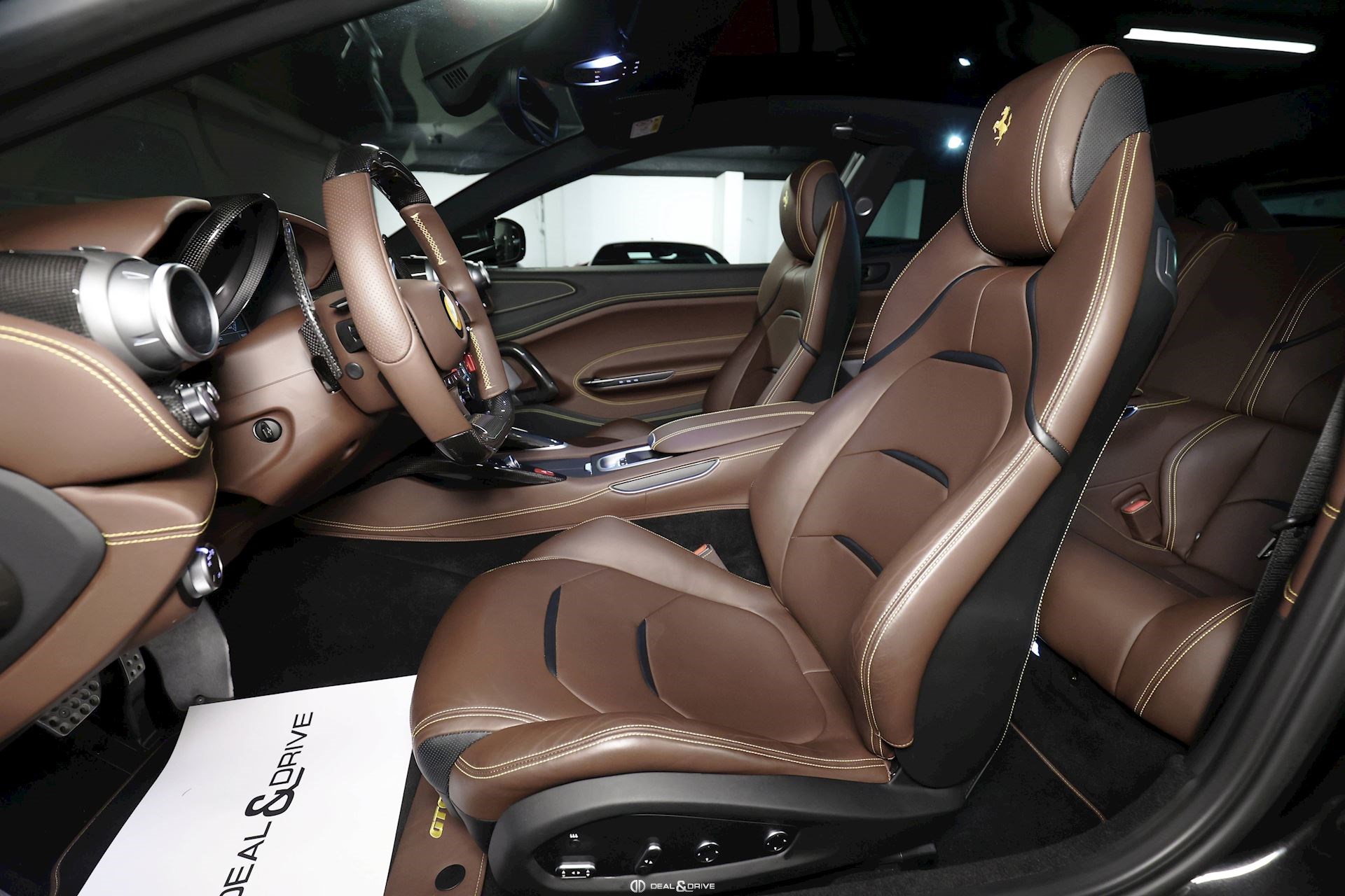 INTERIORMATS Nero 152CIDH Carbon Fibre Inner Door Handle CIDL Carbon Fibre Driver Zone+LEDSCIHZ Carbon Finish for Upper Area CILR Carbon Fibre Central Bridge CSB1 Coloured Safety Belts in YELLOW DATR Dash Inserts in Carbon Fibre DSH5 Coloured Upper Dashboard in CIOCCOLATO EMPH Cavallino Stitched on Headrest Thread in GIALLOFLMA Additional Coloured Mats with LOGO RPMY Yellow Rev. Counter STC2 Coloured Special Stitching O.R. in GIALLO STW1 Coloured Steering Wheel in CIOCCOLATO