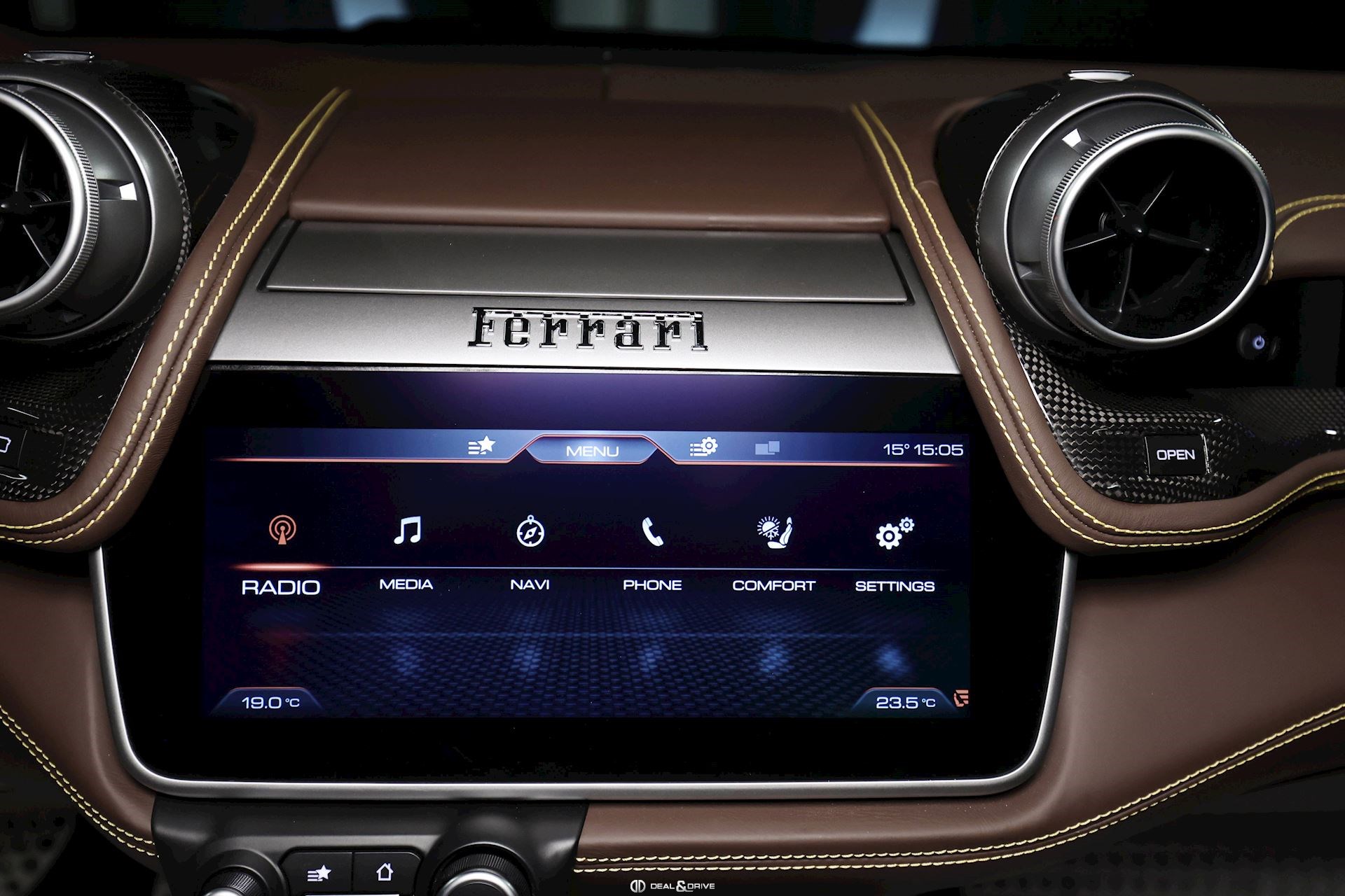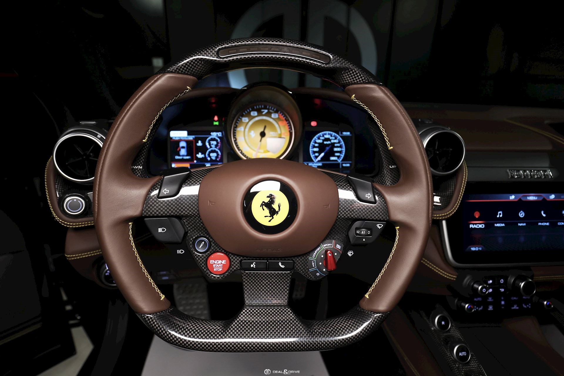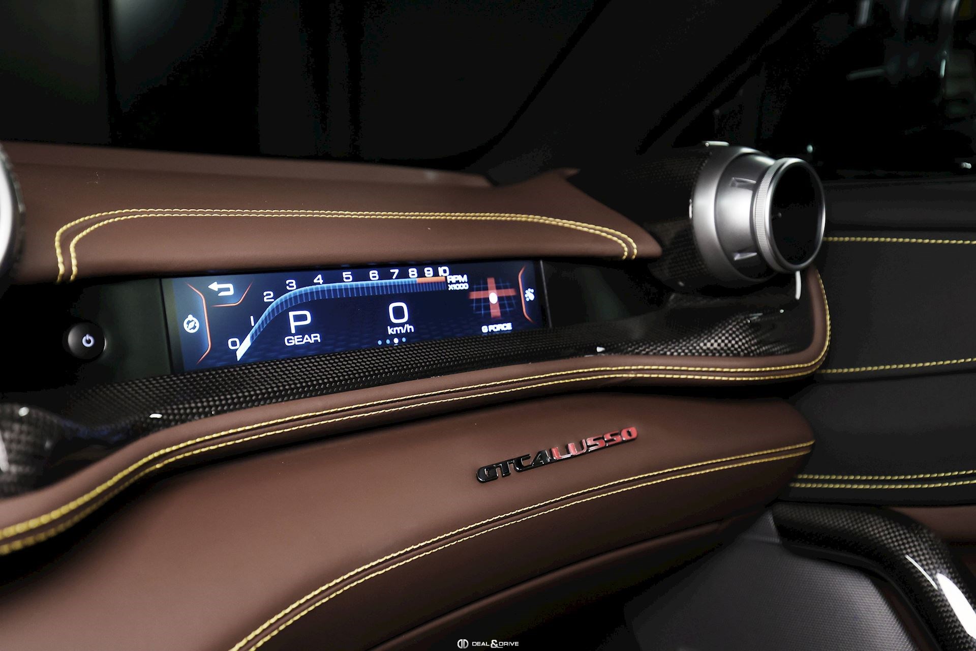 INTERIORMATS Nero 152CIDH Carbon Fibre Inner Door Handle CIDL Carbon Fibre Driver Zone+LEDSCIHZ Carbon Finish for Upper Area CILR Carbon Fibre Central Bridge CSB1 Coloured Safety Belts in YELLOW DATR Dash Inserts in Carbon Fibre DSH5 Coloured Upper Dashboard in CIOCCOLATO EMPH Cavallino Stitched on Headrest Thread in GIALLOFLMA Additional Coloured Mats with LOGO RPMY Yellow Rev. Counter STC2 Coloured Special Stitching O.R. in GIALLO STW1 Coloured Steering Wheel in CIOCCOLATO
