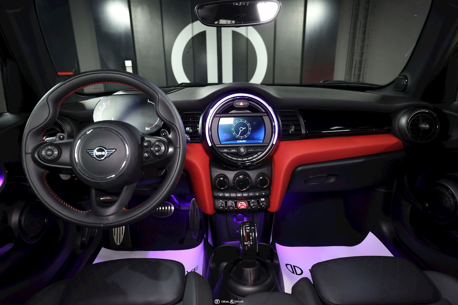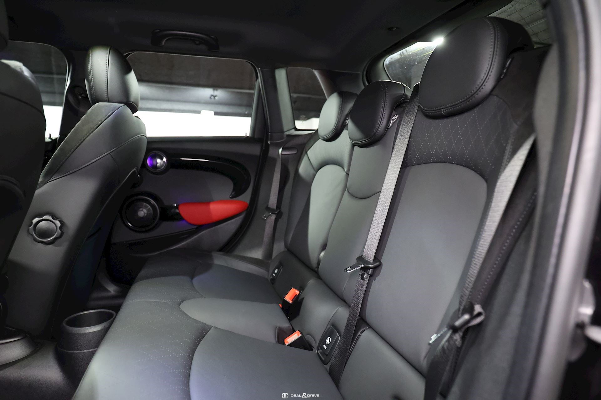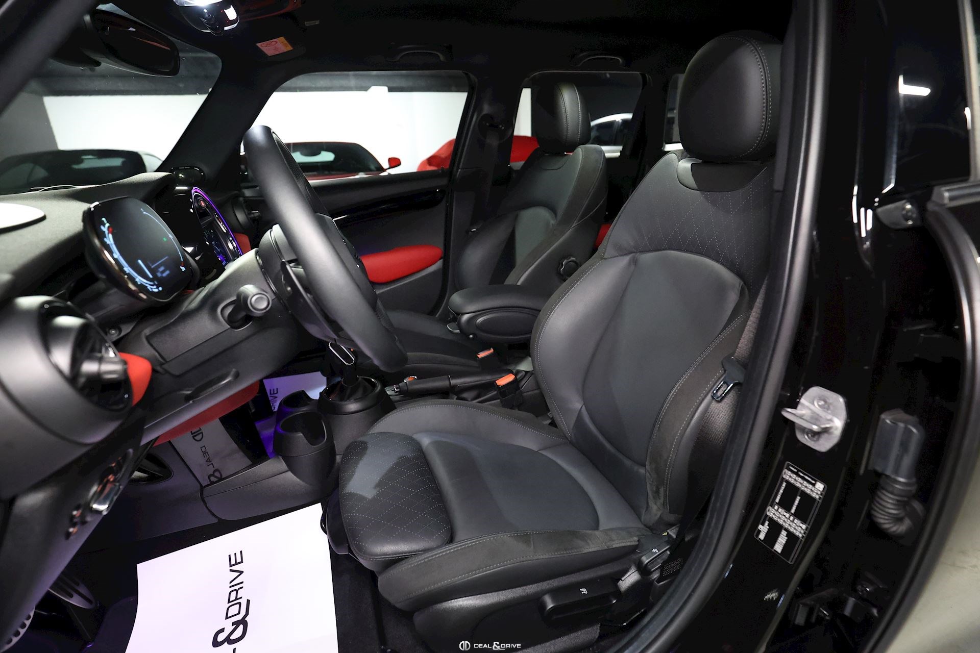 INTÉRIEUR Sièges avant sport et chauffants Sellerie en cuir Volant en cuir multifonctions John Cooper Works Compteur digital Rétroviseur intérieur avec fonction anti-éblouissement Intérieur en noir brillant