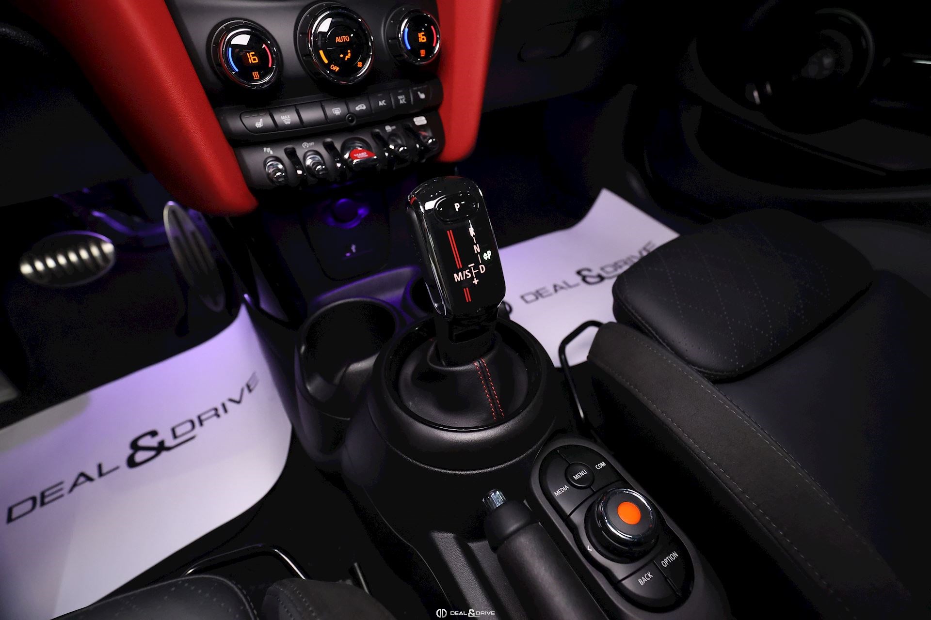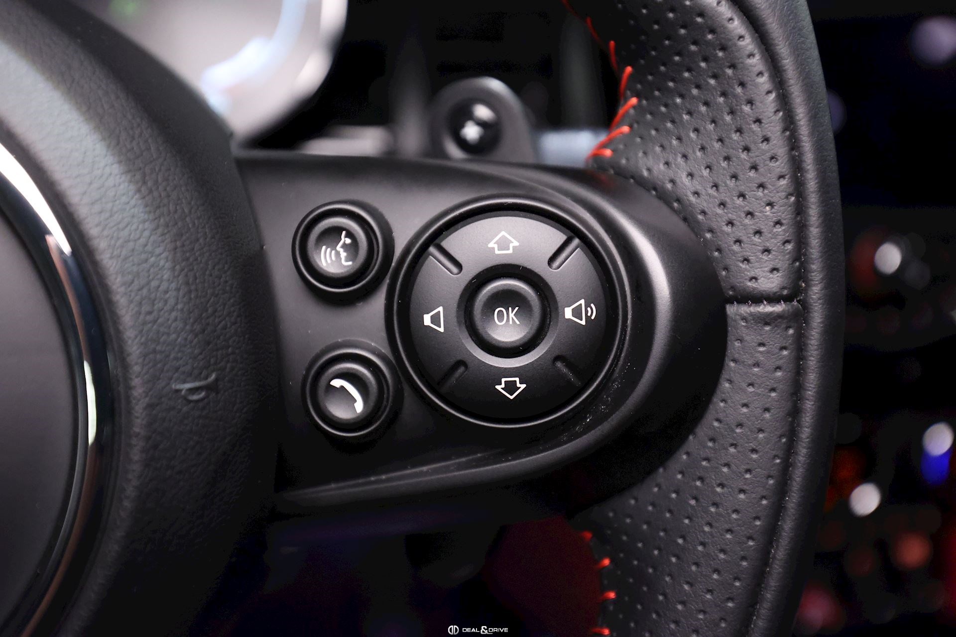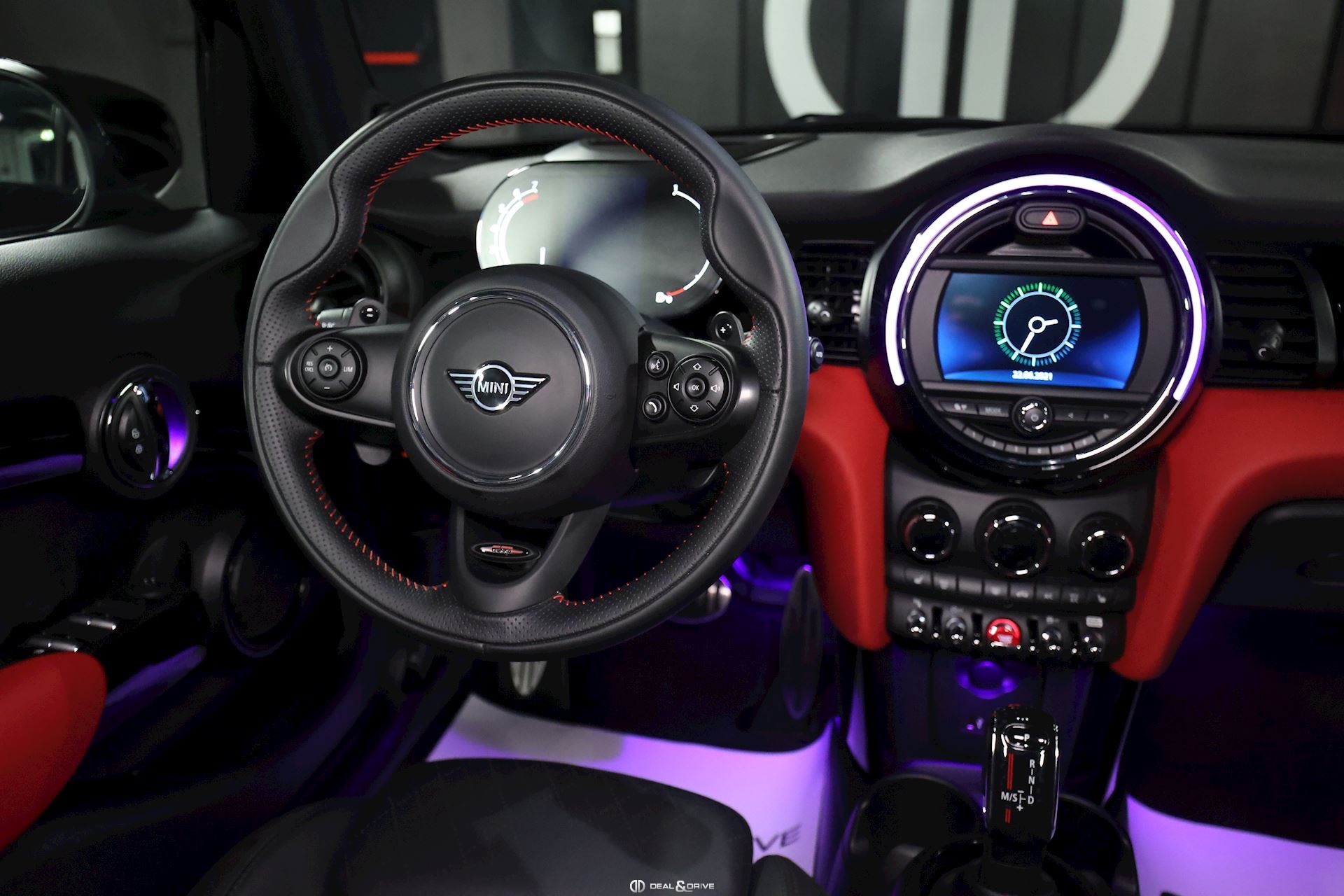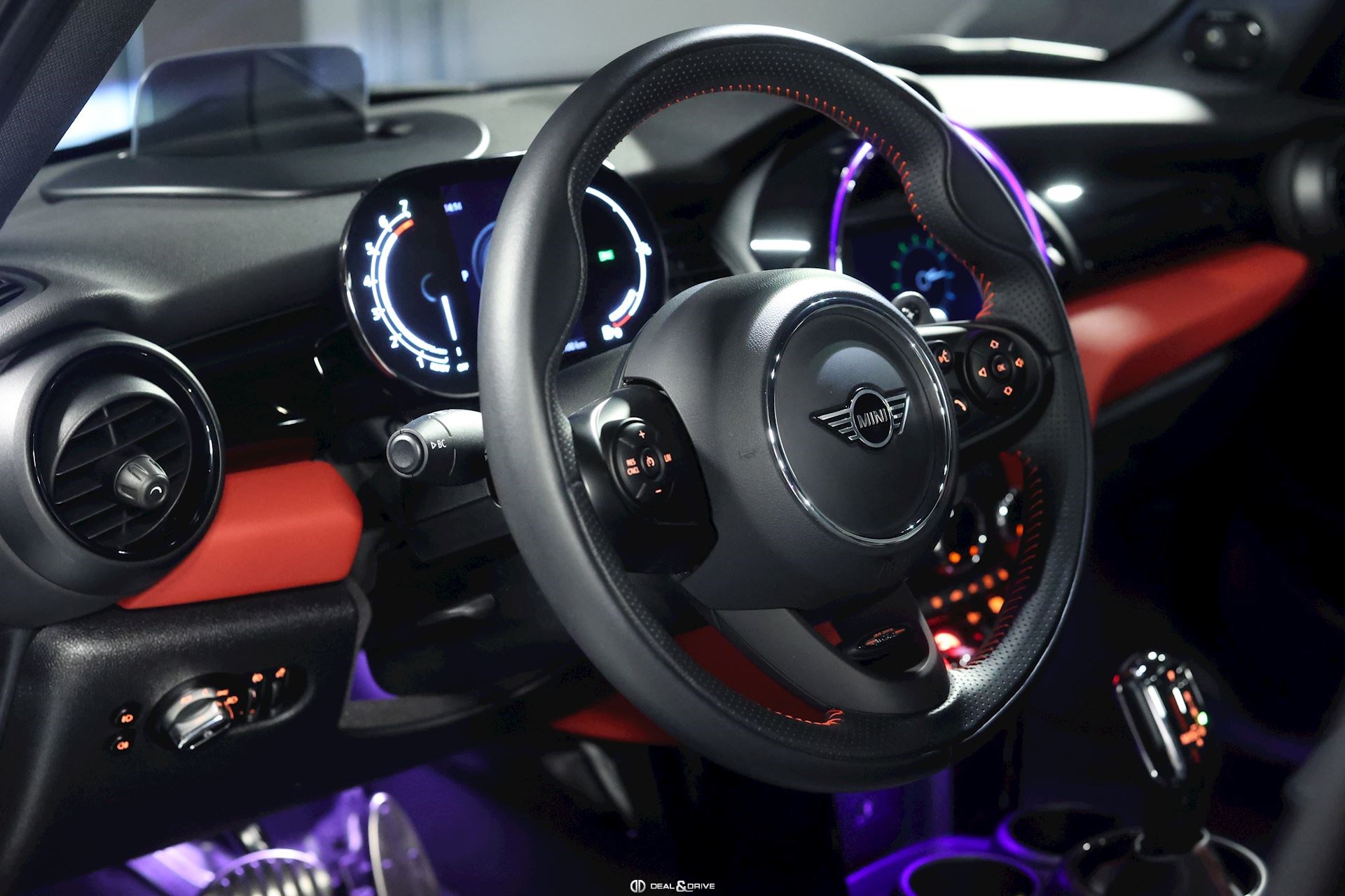 INTÉRIEUR Sièges avant sport et chauffants Sellerie en cuir Volant en cuir multifonctions John Cooper Works Compteur digital Rétroviseur intérieur avec fonction anti-éblouissement Intérieur en noir brillant
