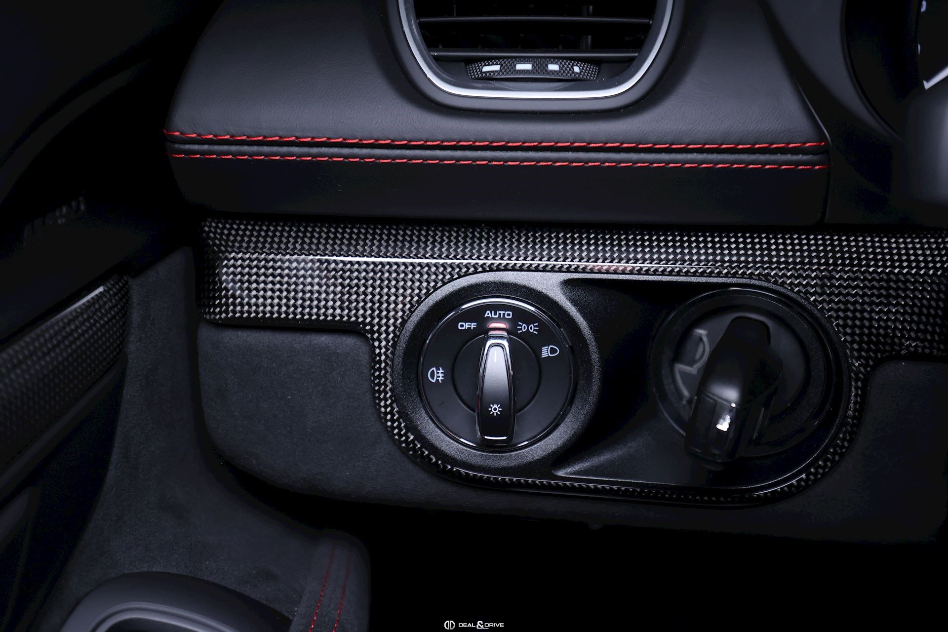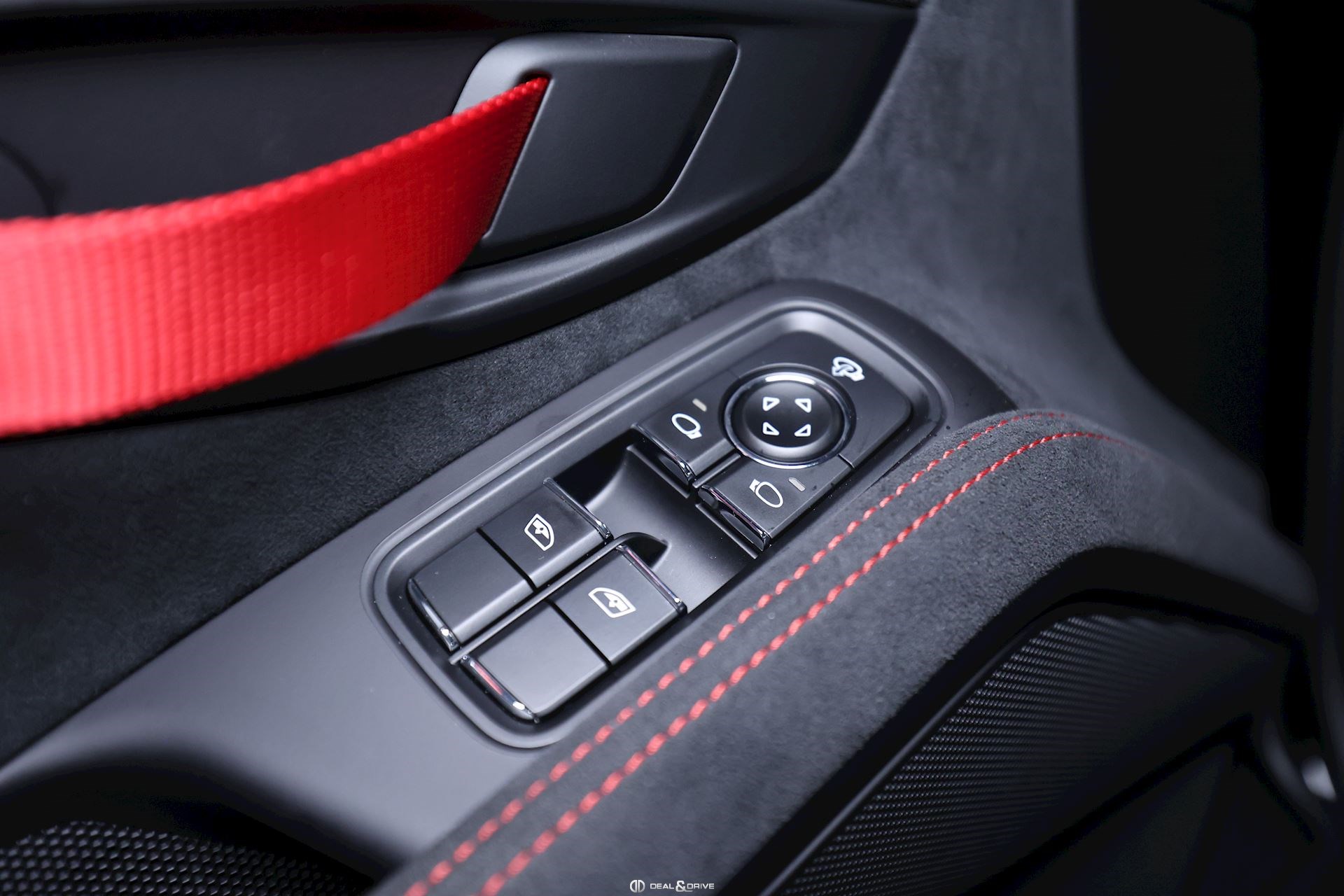 Intérieur Race-Tex avec de nombreux éléments en cuir Noir, coutures décoratives en Rouge