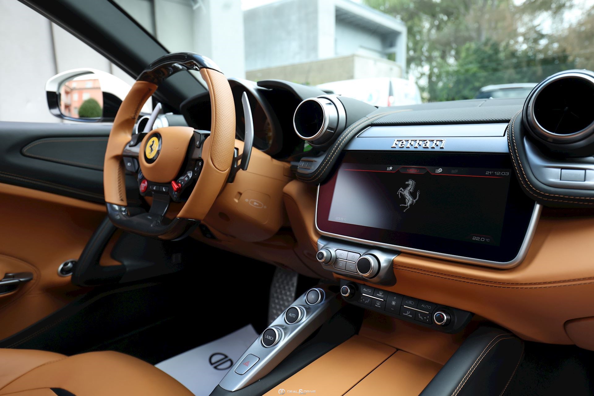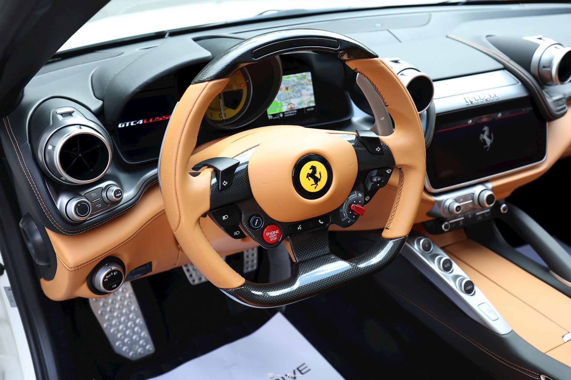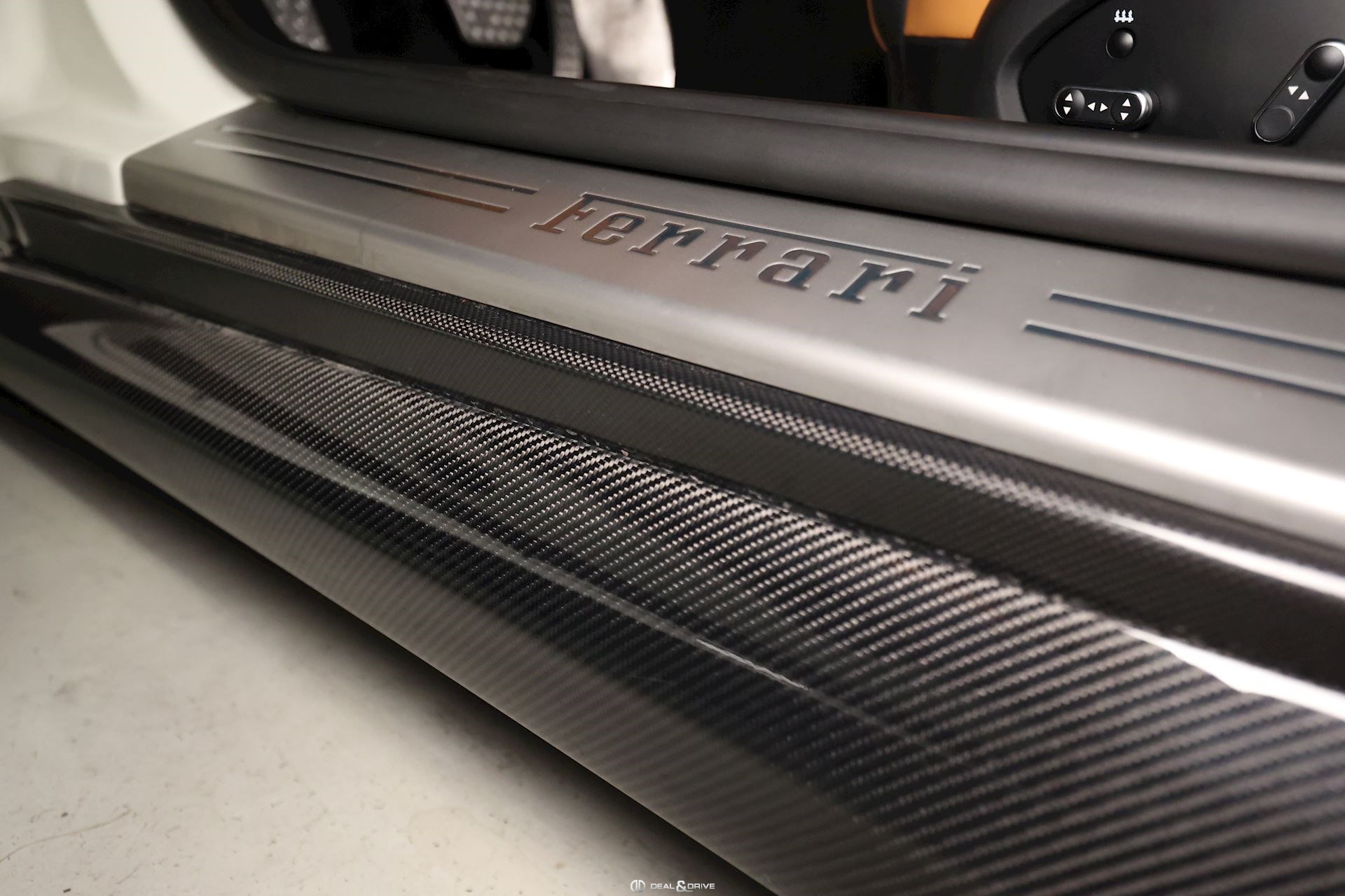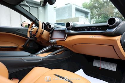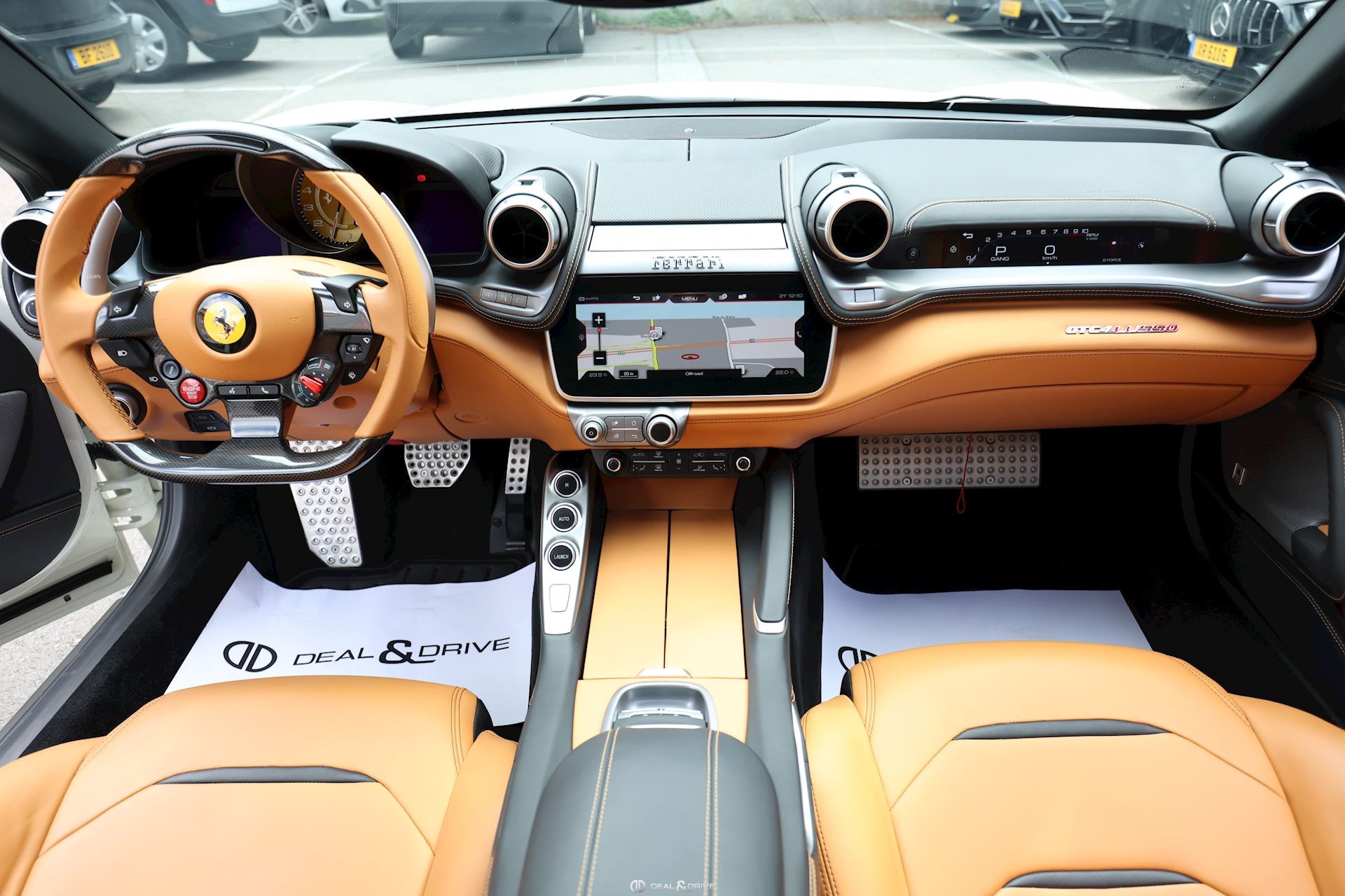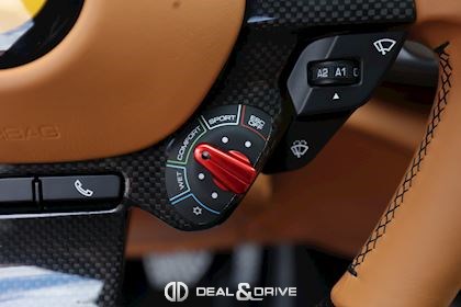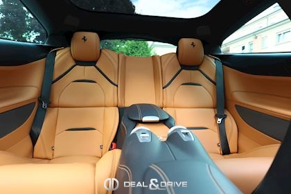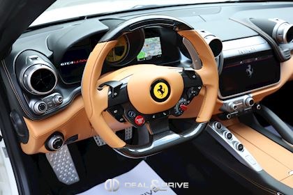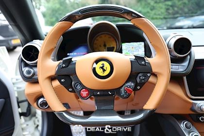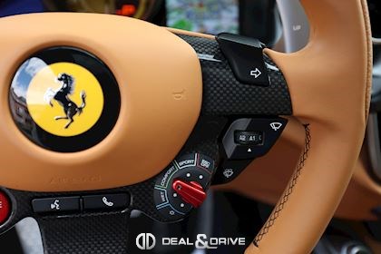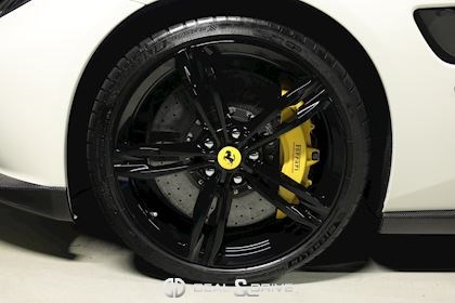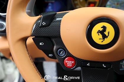 INTÉRIEUR Volant en carbone avec Shift Light LED Volant en cuir, multifonctions Sièges avant électriques Sièges avant chauffants Sièges avant avec fonction mémoire Appui-lombaires électriques Logo Ferrari de couleur noir brodé sur les appuie-têtes Compte tour de couleur jaune Climatisation automatique 2 zones