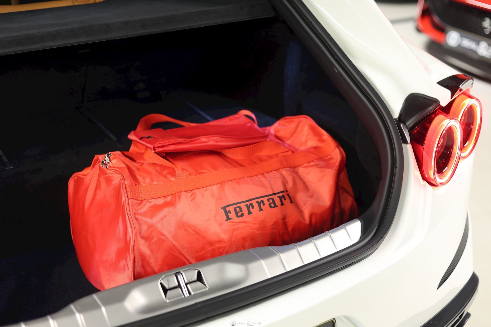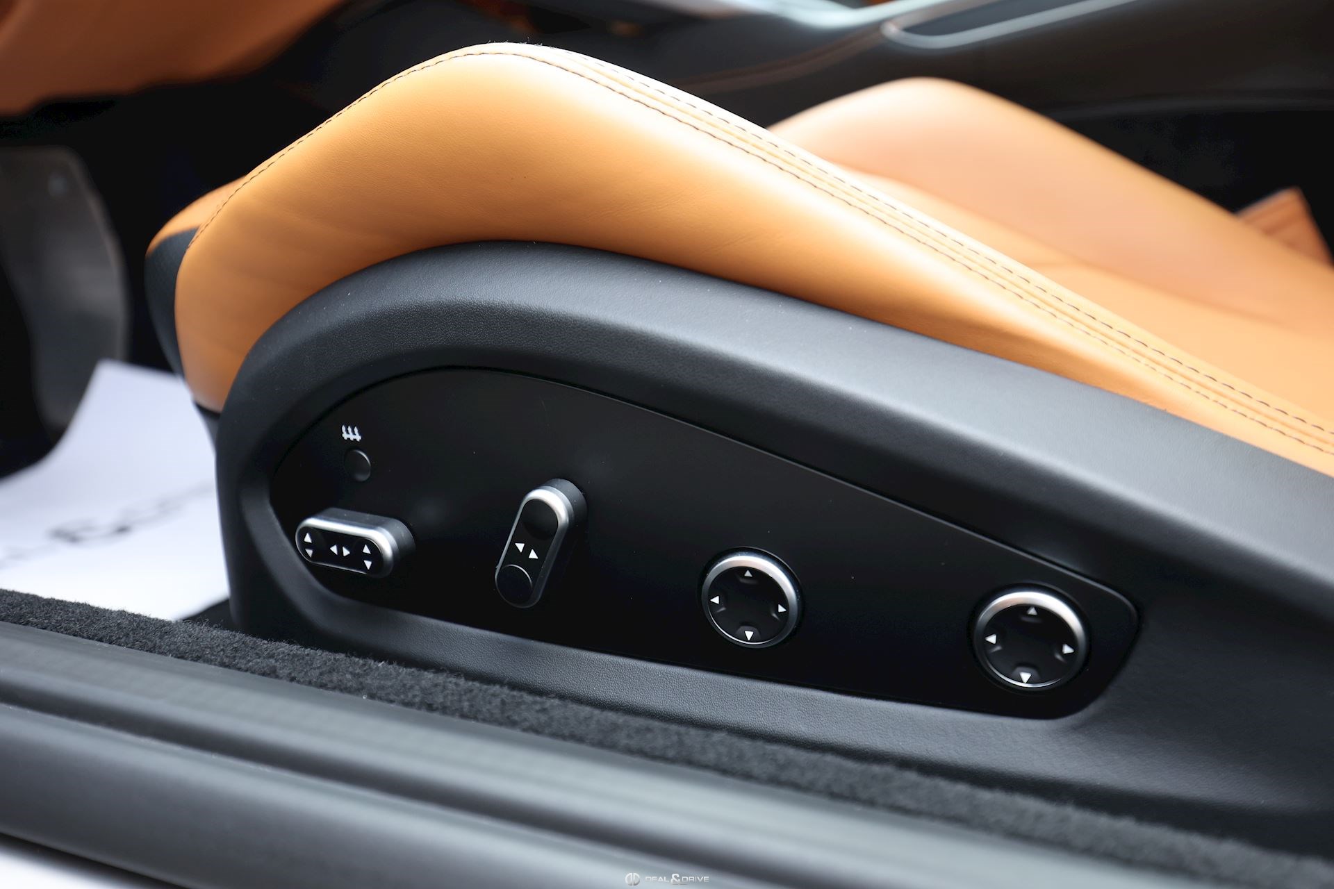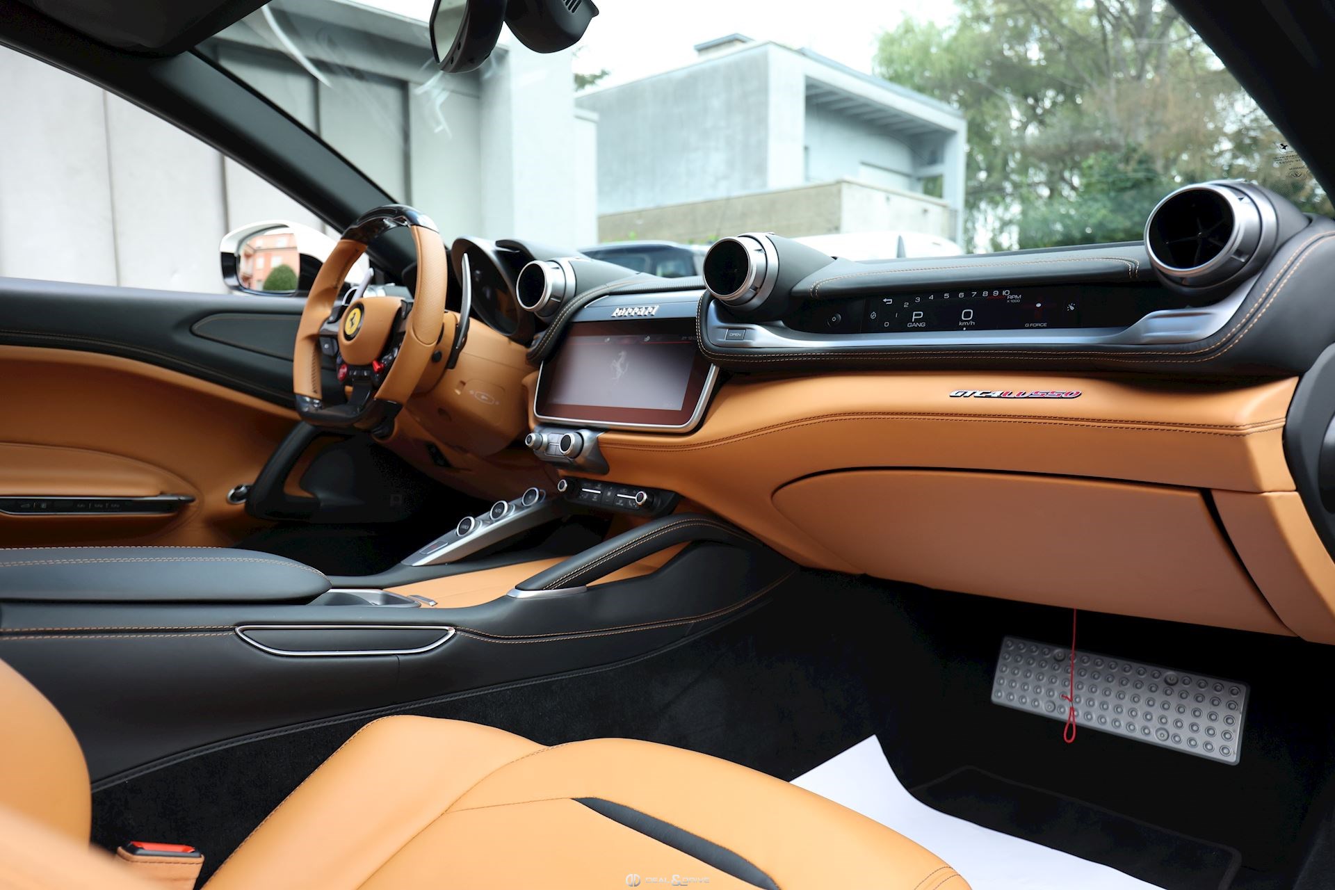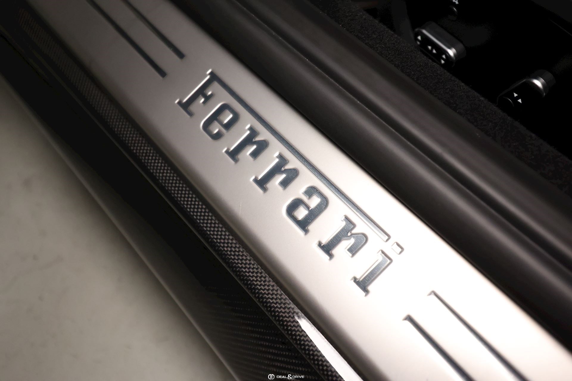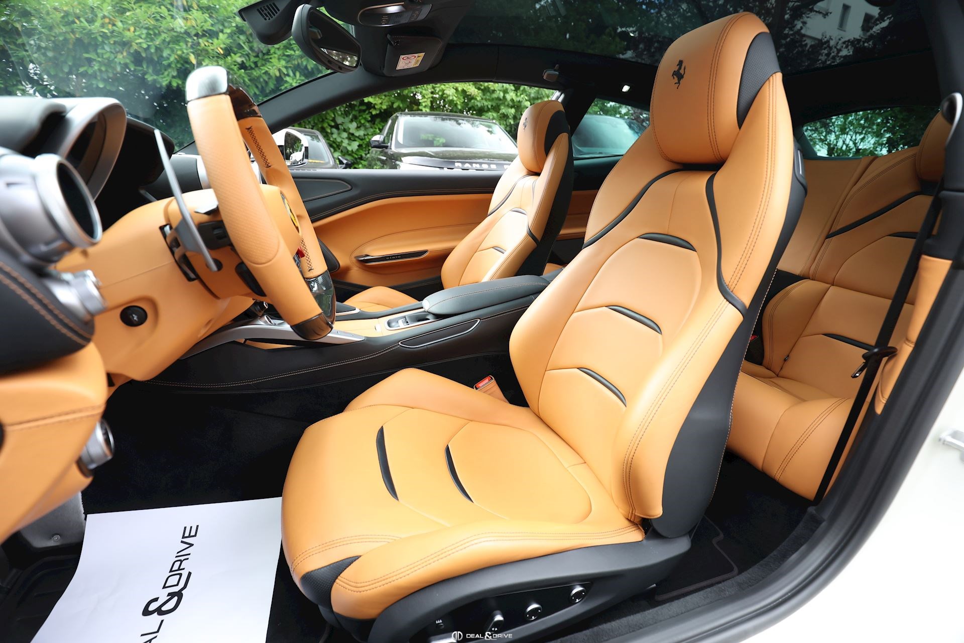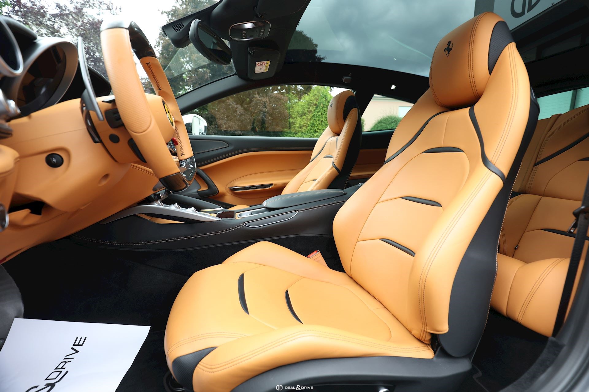 INTÉRIEUR Volant en carbone avec Shift Light LED Volant en cuir, multifonctions Sièges avant électriques Sièges avant chauffants Sièges avant avec fonction mémoire Appui-lombaires électriques Logo Ferrari de couleur noir brodé sur les appuie-têtes Compte tour de couleur jaune Climatisation automatique 2 zones