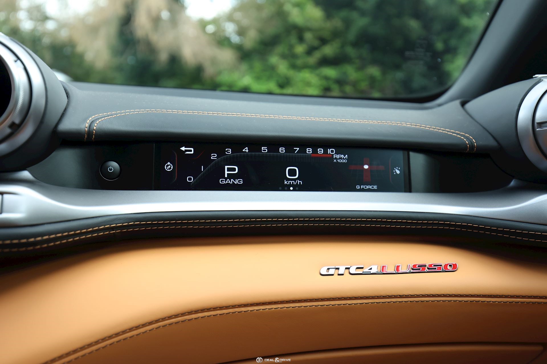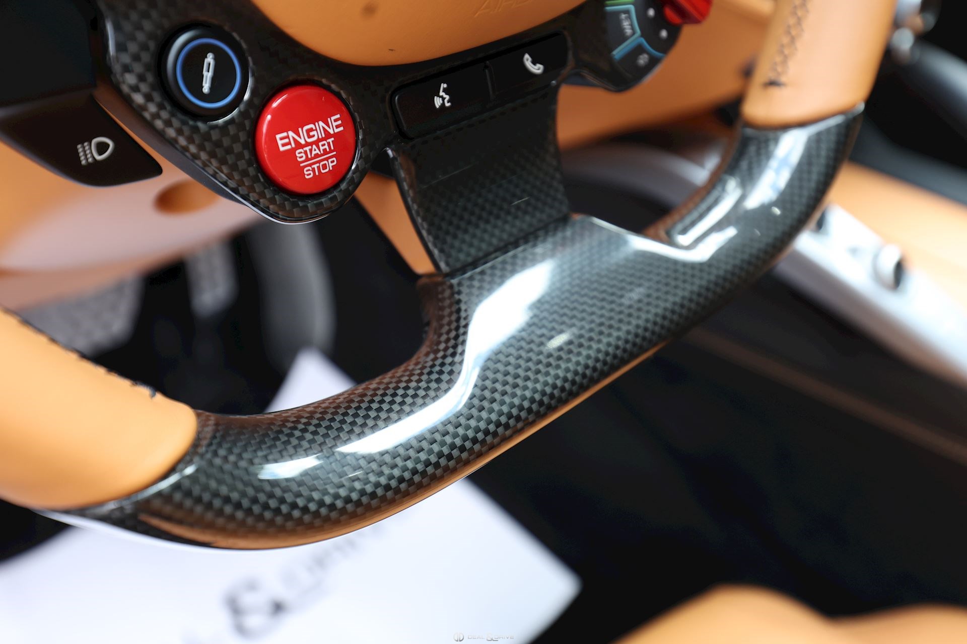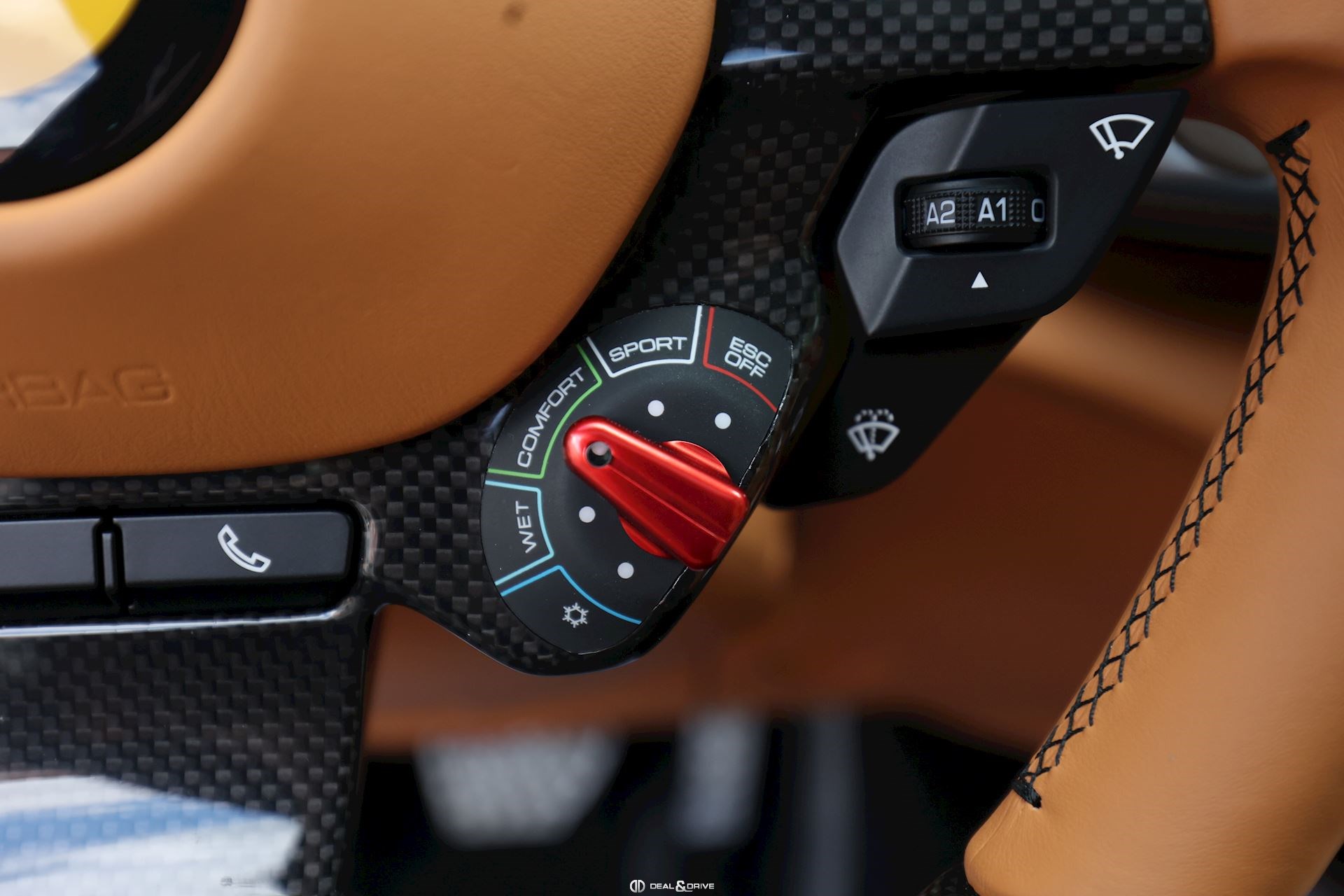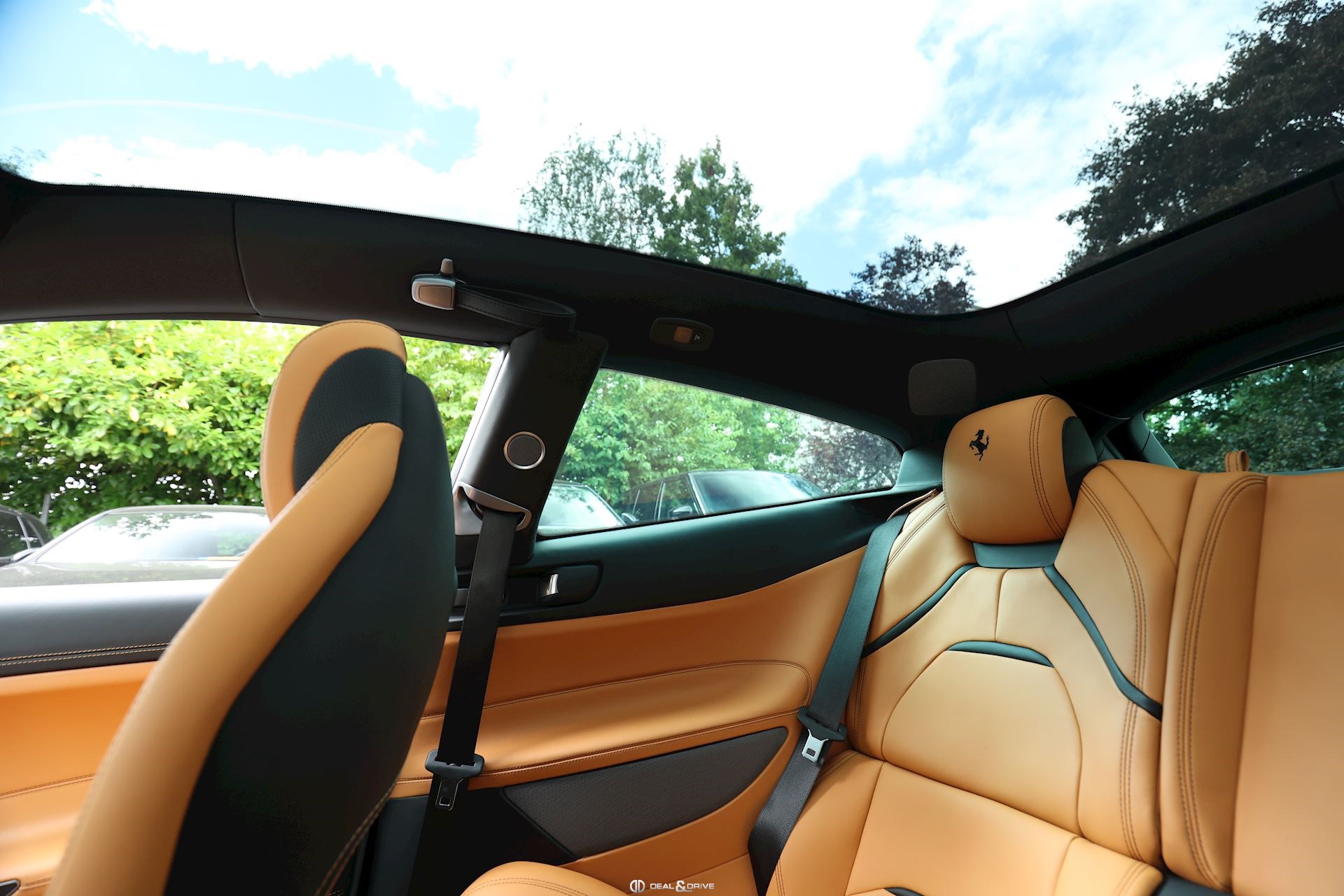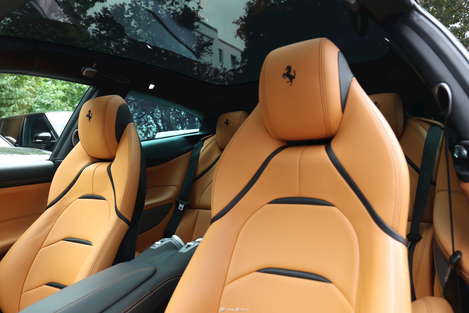 INTÉRIEUR Volant en carbone avec Shift Light LED Volant en cuir, multifonctions Sièges avant électriques Sièges avant chauffants Sièges avant avec fonction mémoire Appui-lombaires électriques Logo Ferrari de couleur noir brodé sur les appuie-têtes Compte tour de couleur jaune Climatisation automatique 2 zones