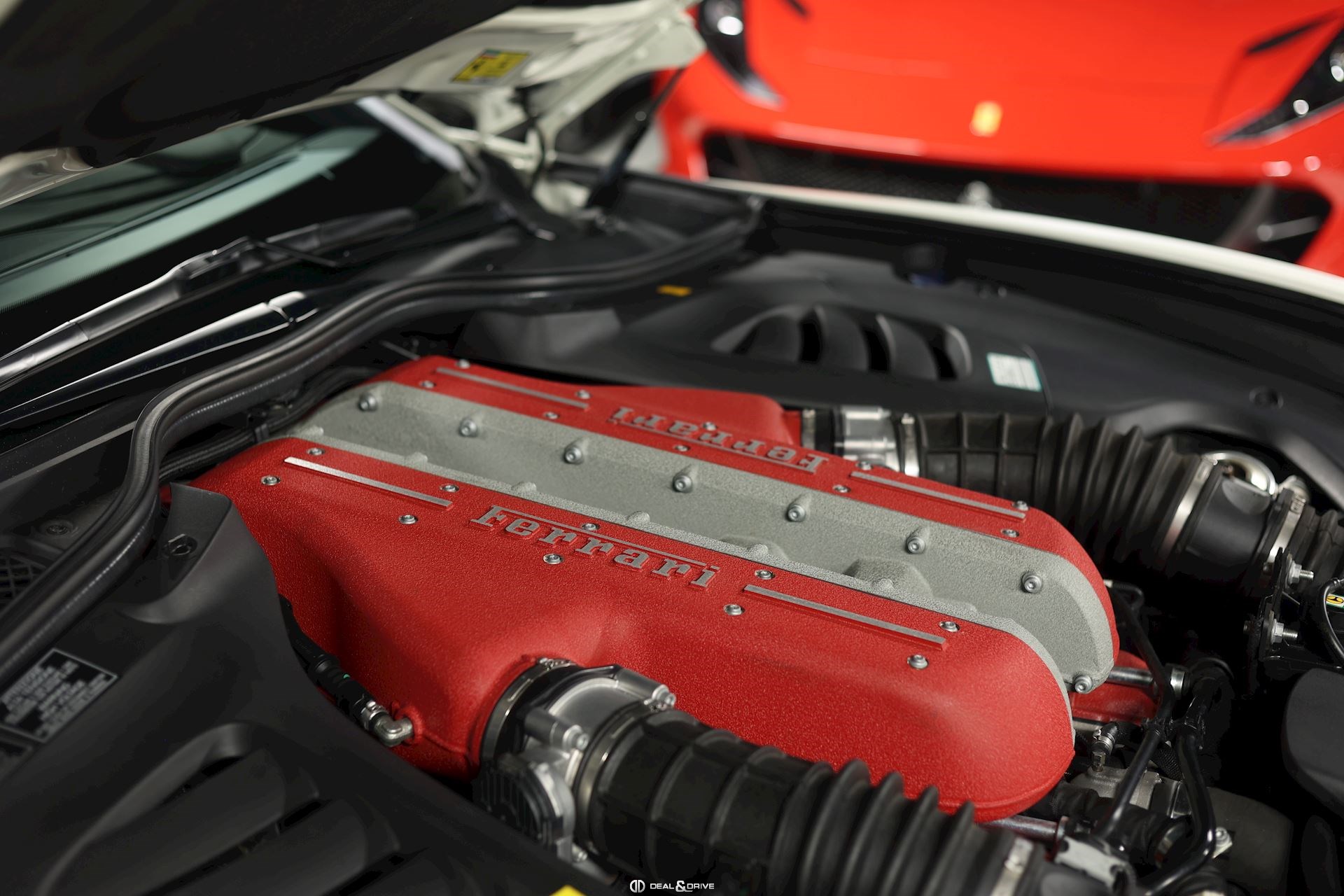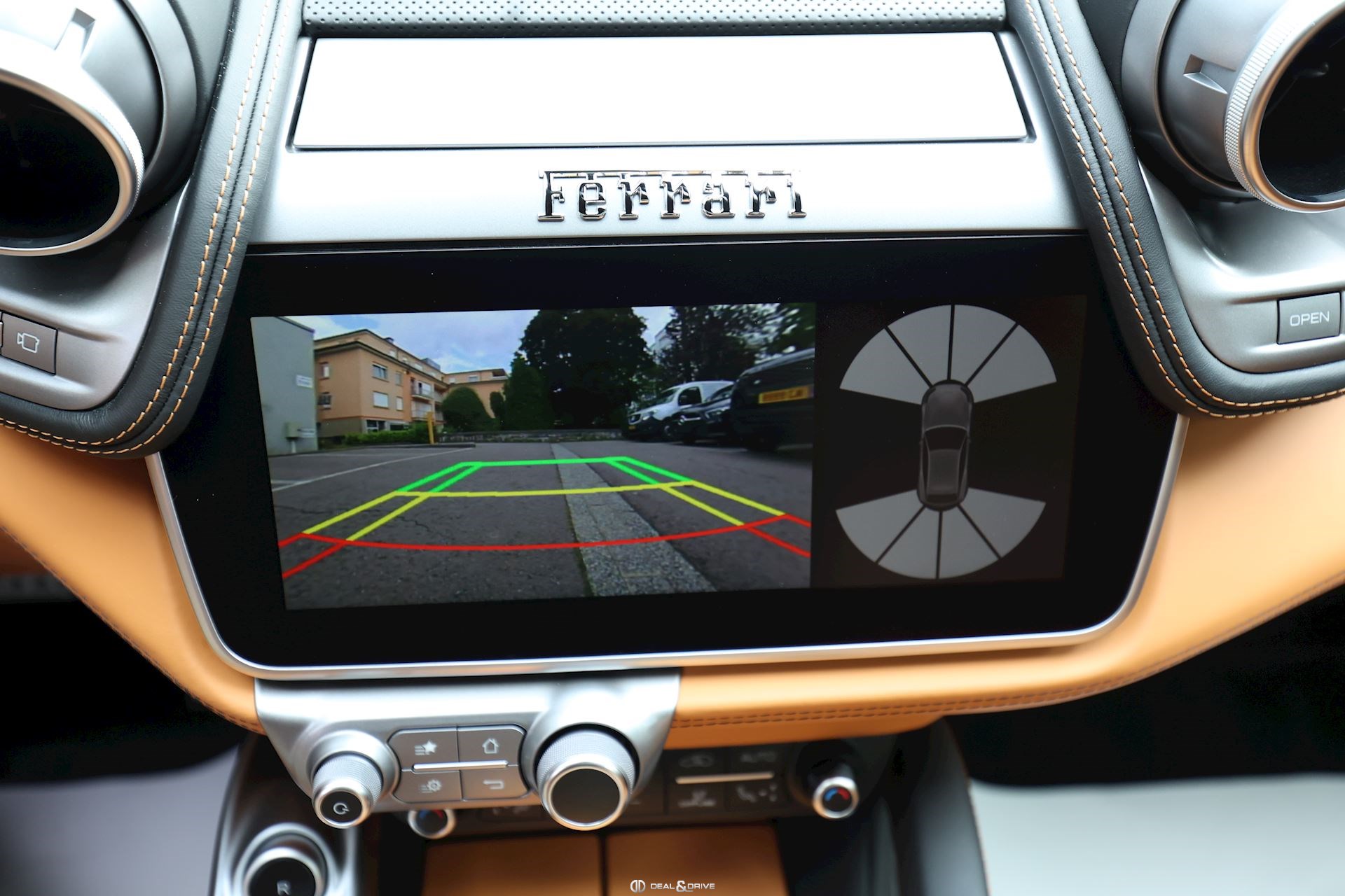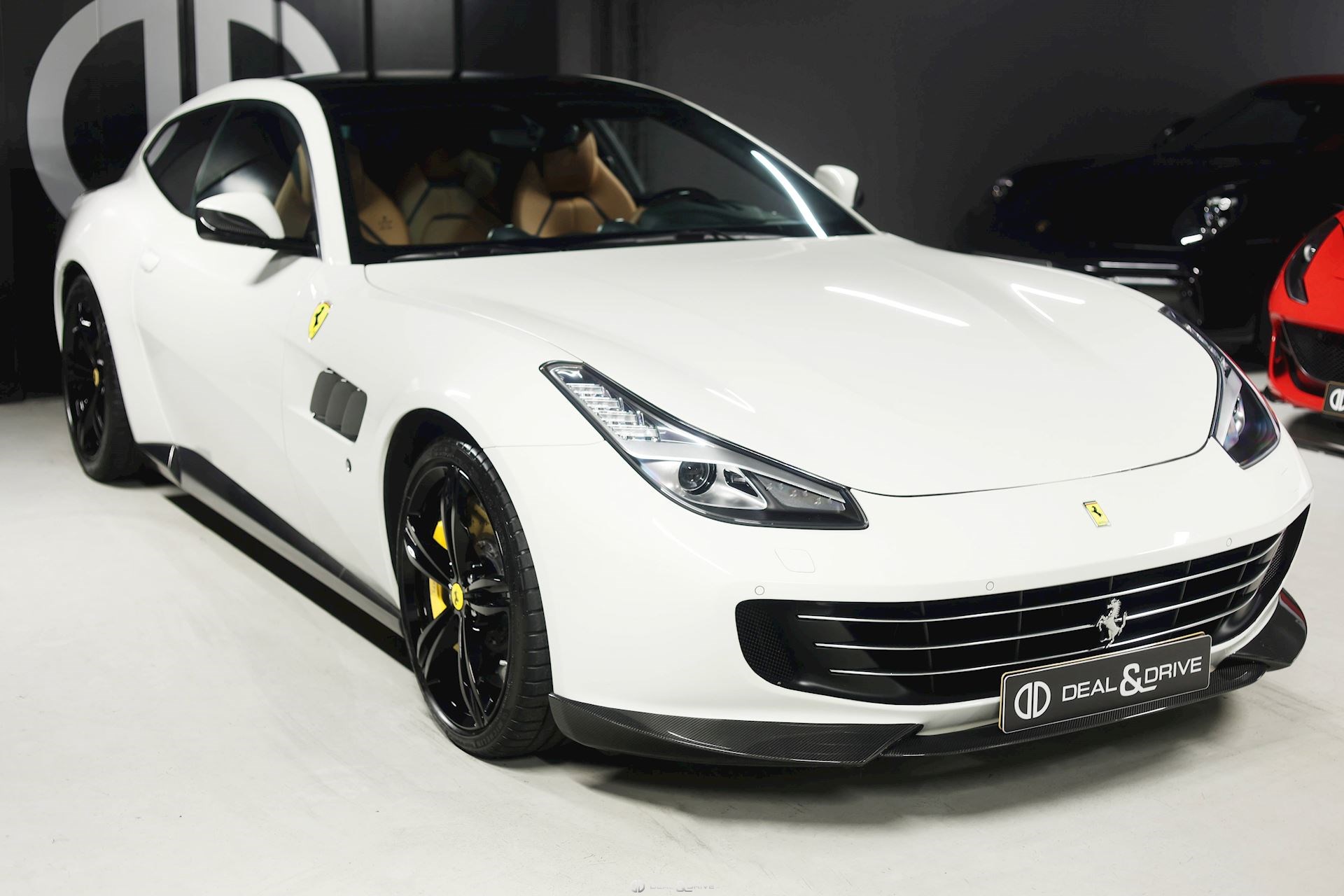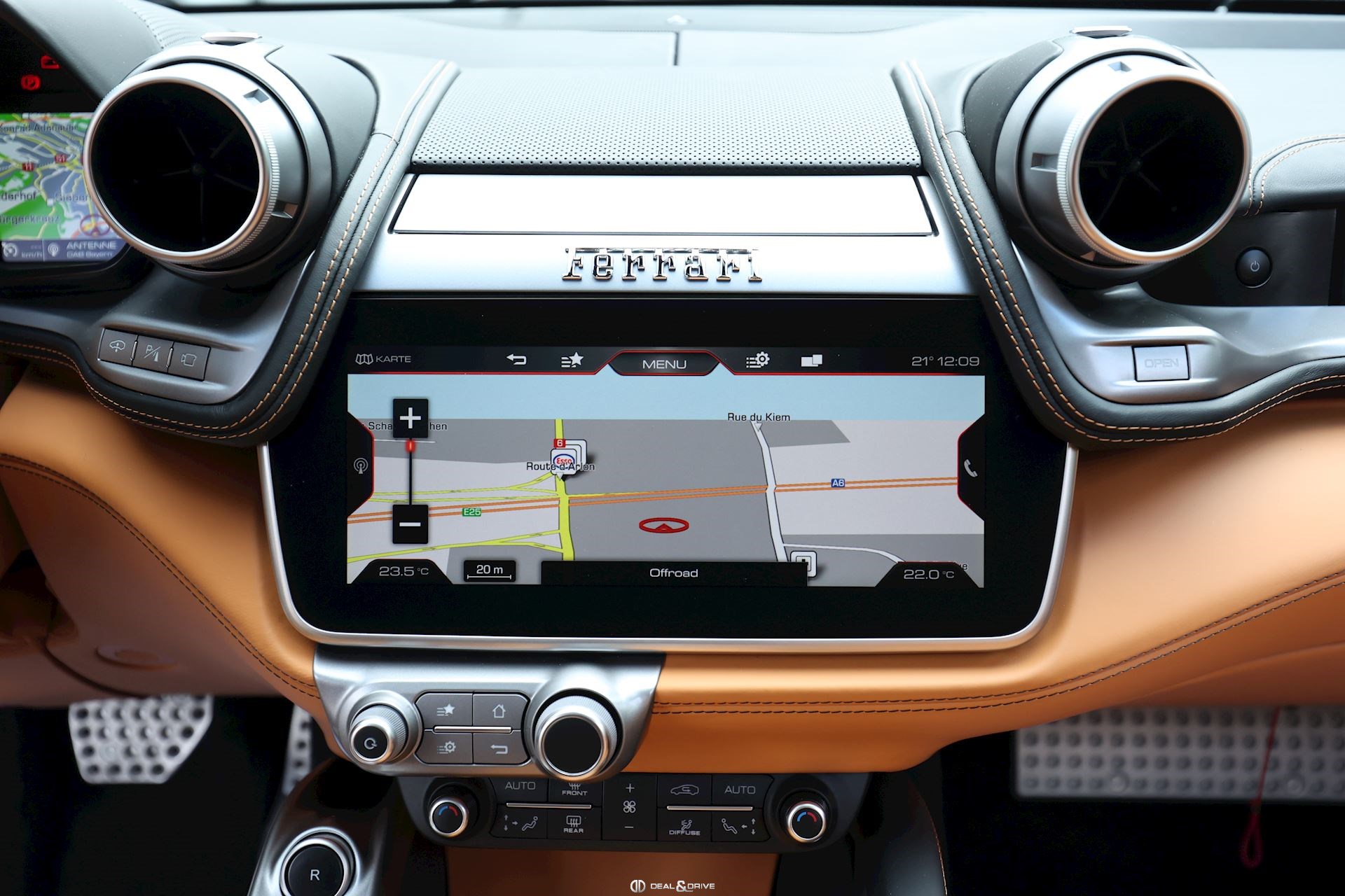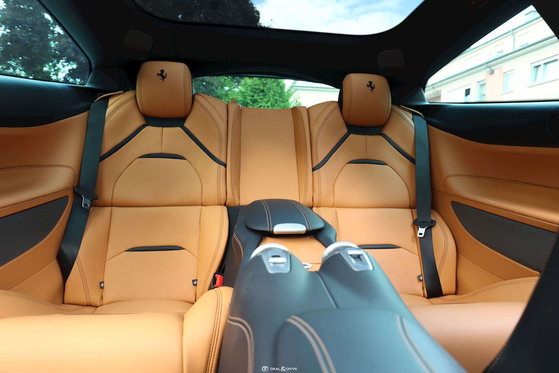 INTÉRIEUR Volant en carbone avec Shift Light LED Volant en cuir, multifonctions Sièges avant électriques Sièges avant chauffants Sièges avant avec fonction mémoire Appui-lombaires électriques Logo Ferrari de couleur noir brodé sur les appuie-têtes Compte tour de couleur jaune Climatisation automatique 2 zones