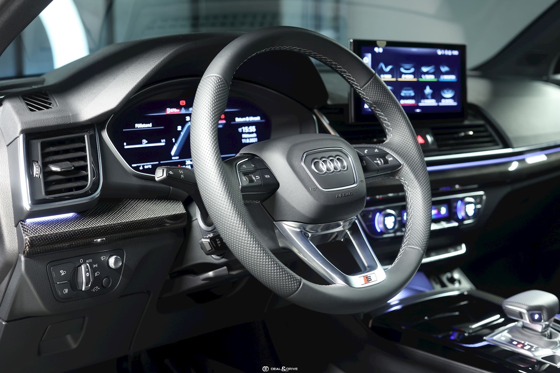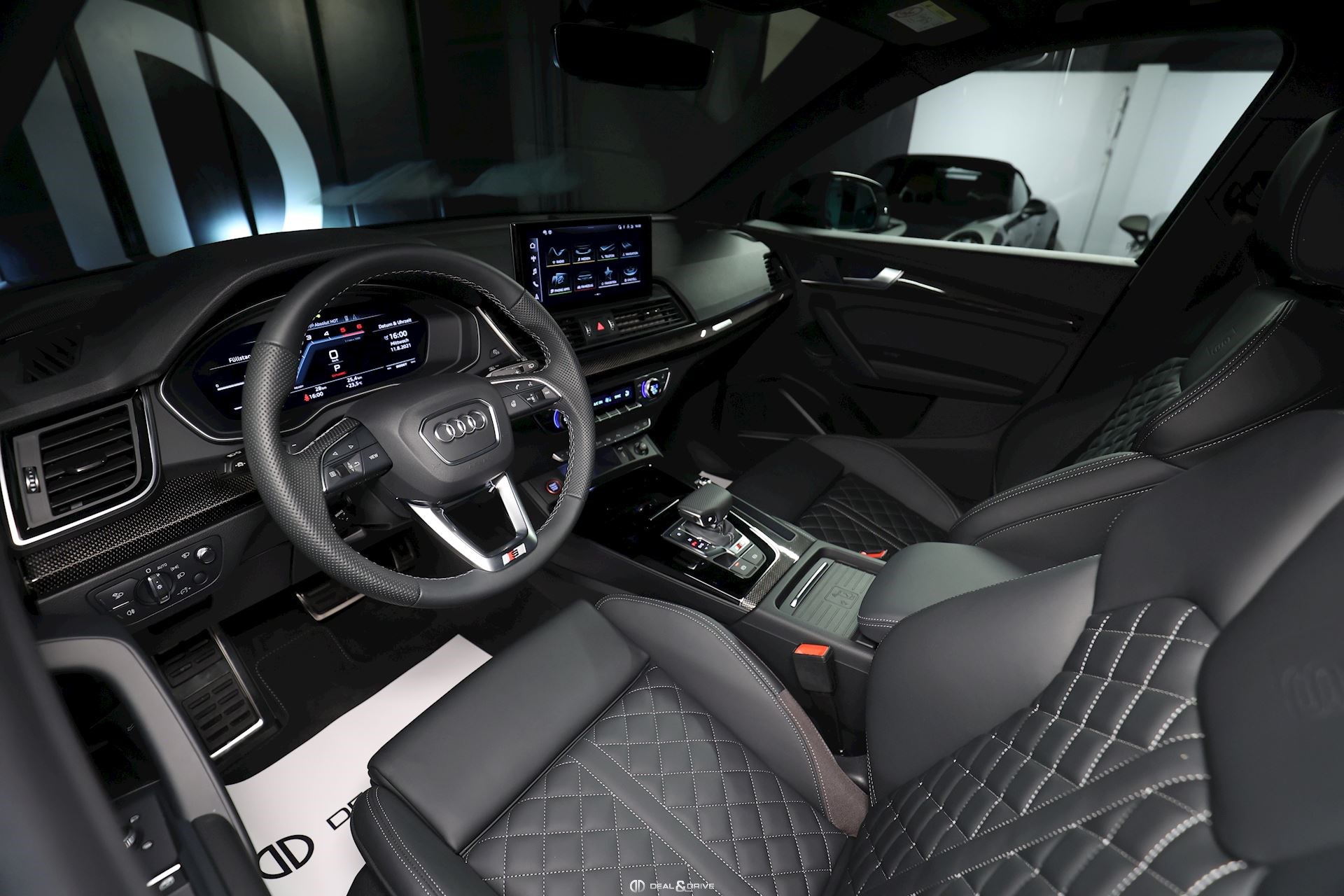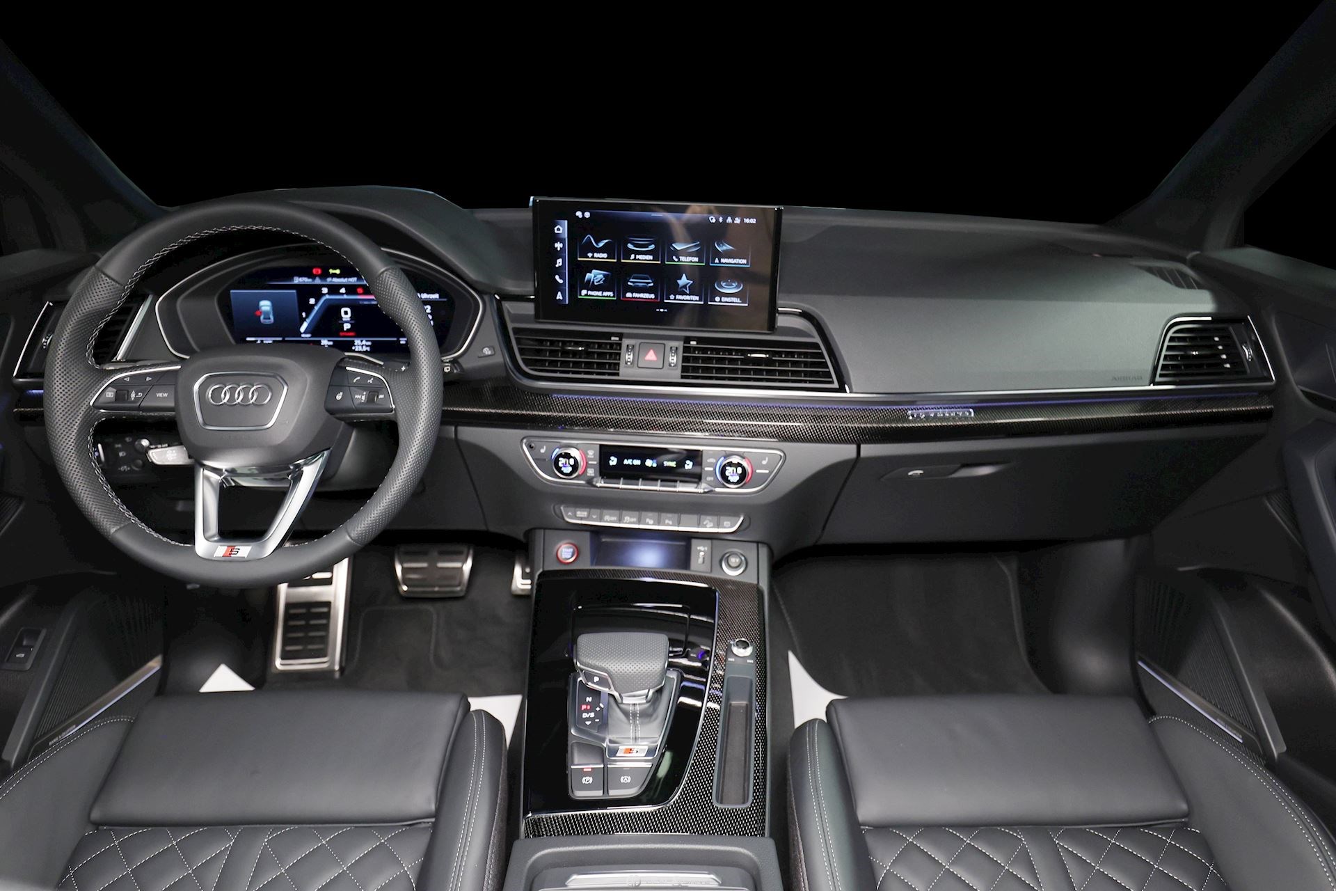 Affichage tête haute Services Audi connect Réception radio digitale DAB Audi Smartphone Interface Climatisation automatique Confort 3 zones Hayon électrique Dispositif d’attelage rétractable Banquette arrière coulissante et rabattable Pare-brise chauffant Projecteurs avant Matrix LED Feux arrières-LED Clignotants dynamiques Rétroviseurs extérieurs noirs Sièges avant avec fonction massage Sièges avant et arrière chauffant Sièges avant réglables électriquement avec fonction mémoire côté conduc-teur Inserts intérieurs en carbone Système audio Bang & Olufsen® Toit ouvrant panoramique Vitrage arrière surteinté Eclairage d’ambiance intérieur Sélecteur de modes de conduite Audi Drive Select Hayon électrique Châssis sport S-Line avec amortissement piloté Chauffage additionnel électrique Garniture de toit en tissu noir Jantes en alliage 21’’ Seuils de portes éclairés Pédalier en inox Limiteur de vitesse Tapis de sol en velours Détecteur de collision avec fonction freinage d'urgence en ville (Audi pre sense City) Volant sport 3 branches avec palettes de changement de rapports
