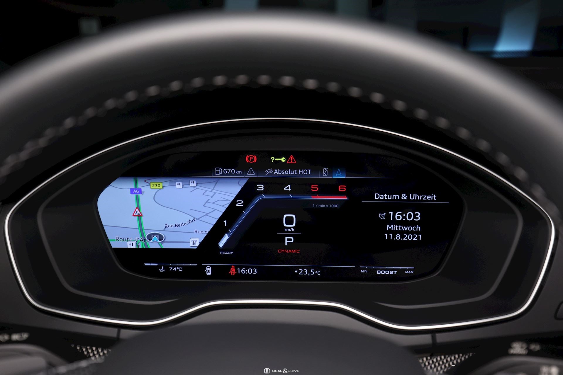 Pack Business Rétroviseurs extérieurs rabattables électriquement avec fonction anti-éblouissement Rétroviseur intérieur anti-éblouissement Rétroviseur extérieur droit avec abaissement lors des marches arrières Feux de route automatiques Connectivité Bluetooth avec reconnaissance vocale (Audi Phone Box) Audi Virtual Cockpit Système de navigation MMI Touch Rideaux pare-soleil pour les vitres latérales arrières