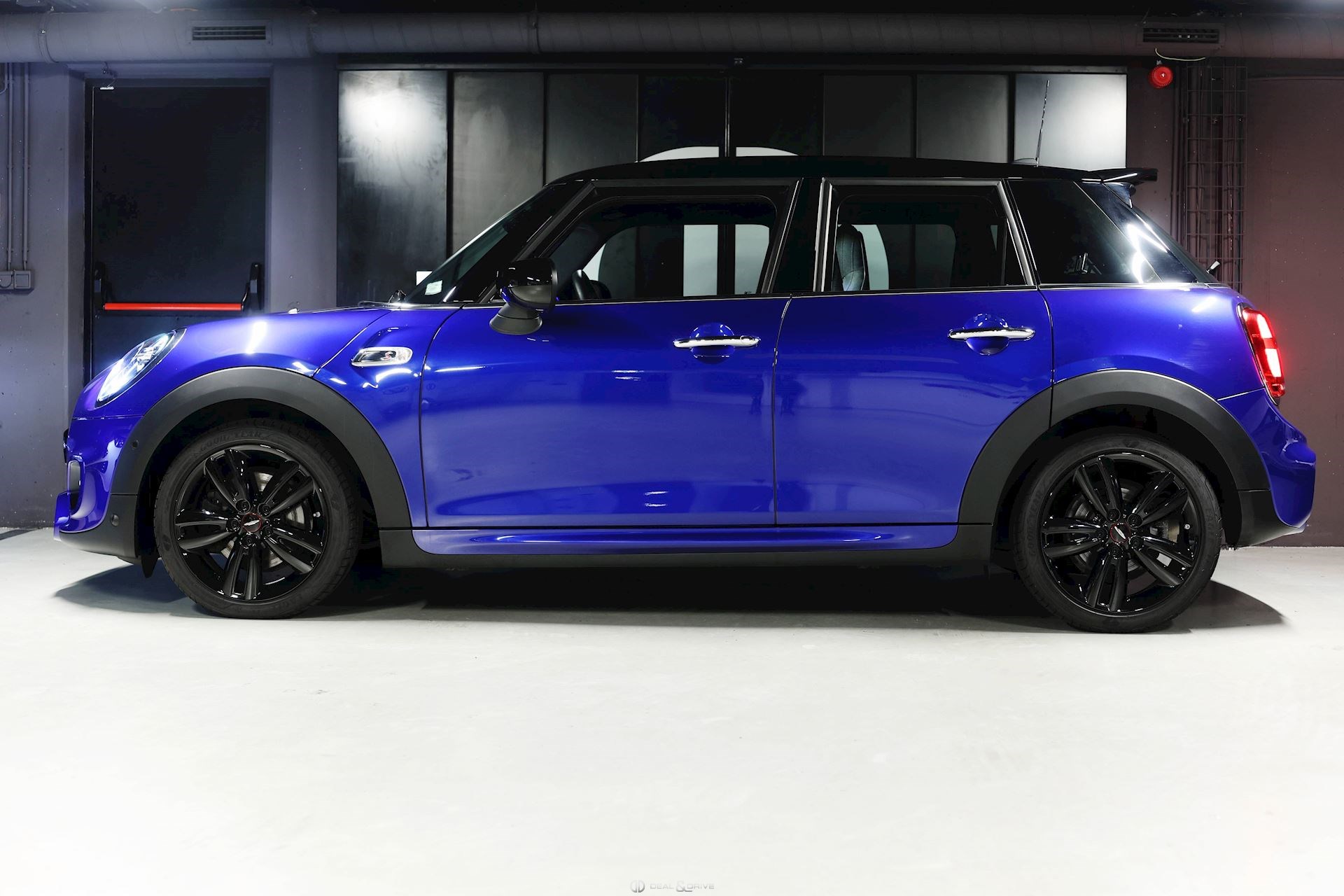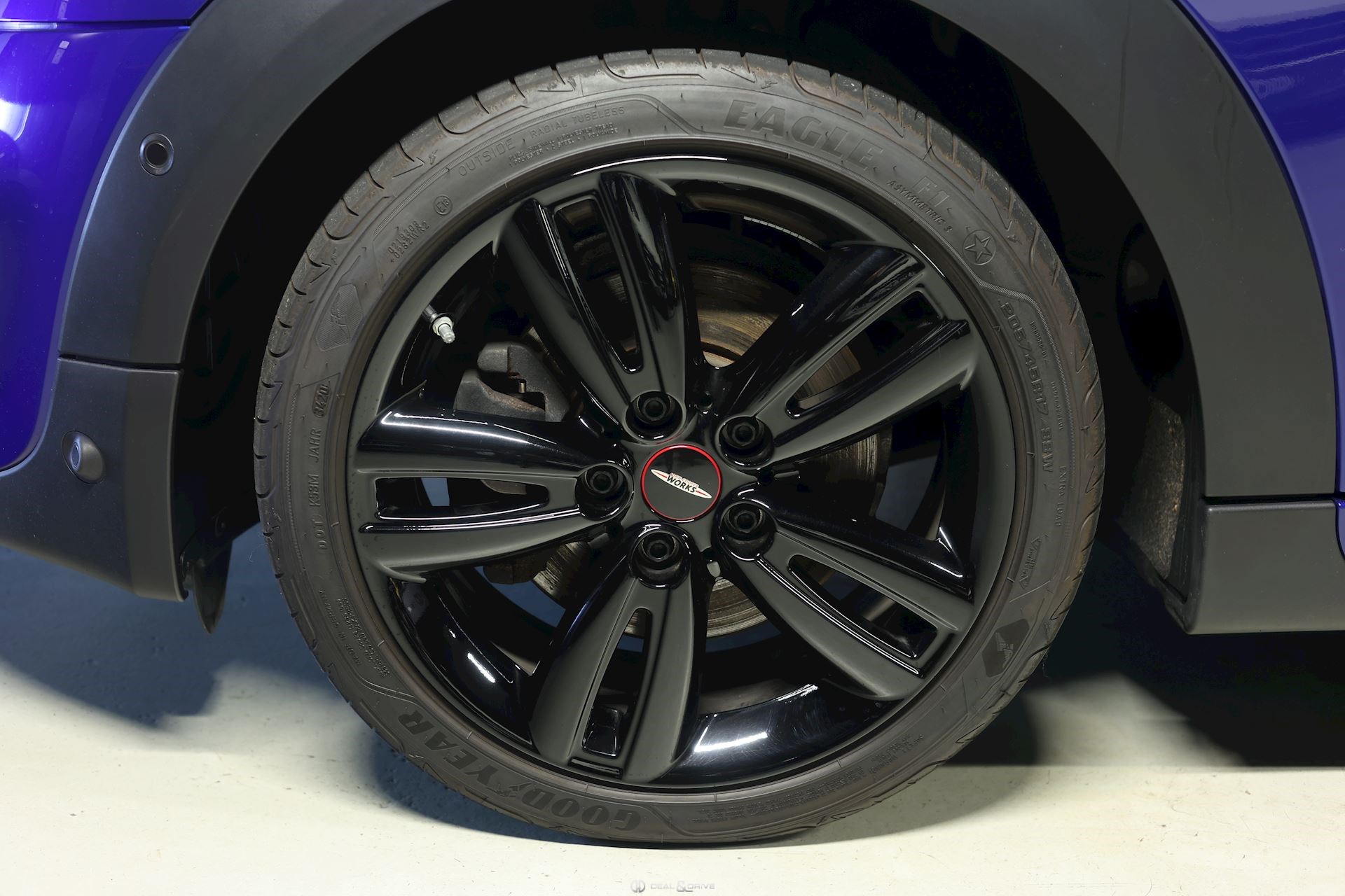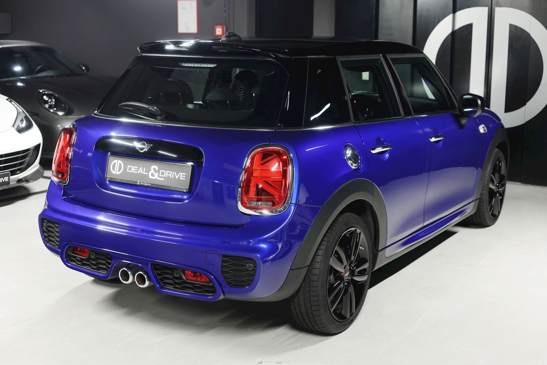 Jantes alliage léger 17’’ John Cooper Works peintes en Noir Bandes décoratives sur le capot, noires Rétroviseurs extérieurs électriques Coques de rétroviseurs peintes en Noir Toit noir