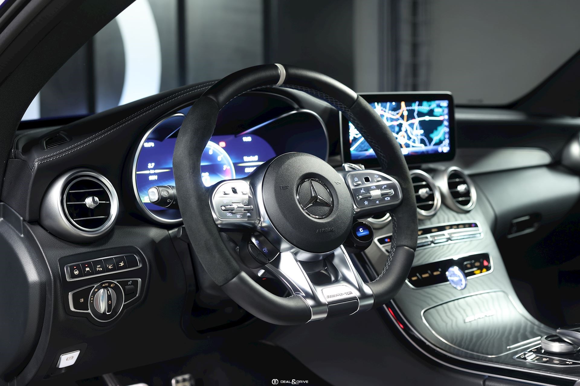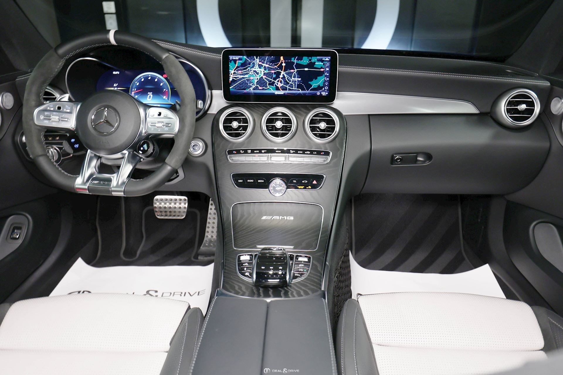 INTÉRIEUR Pack Confort Advanced Sièges avant chauffants Sièges avant électriques Sièges avant avec fonction mémoire Climatisation automatique Thermatic 2 zones Seuils de portes en Aluminium avec « AMG » éclairés Volant AMG Performance en cuir Nappa et Alcantara, multifonctions Intérieur bois frêne noir et Aluminium Appui-lombaires électriques Horloge IWC Plafonnier noir Tapis de sol AMG