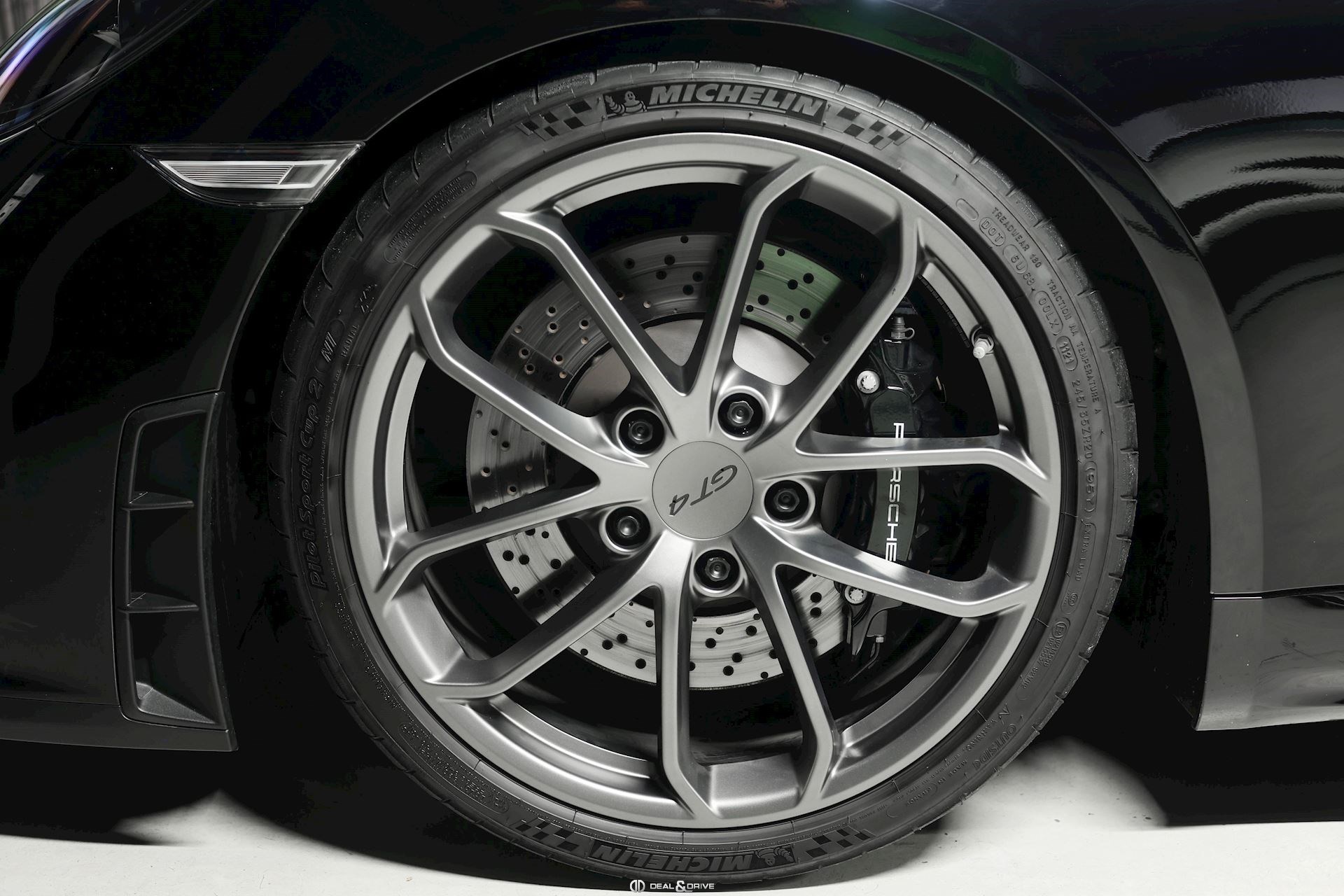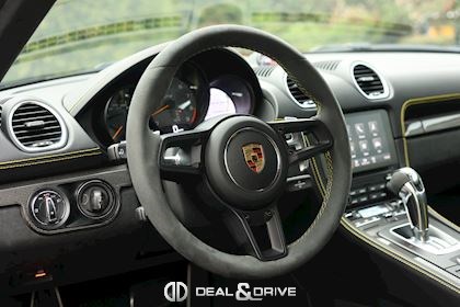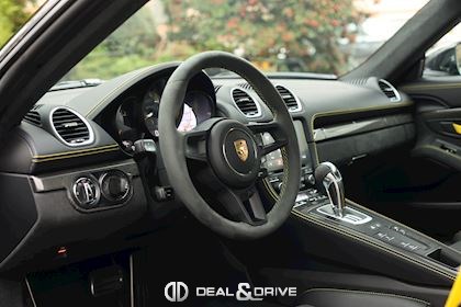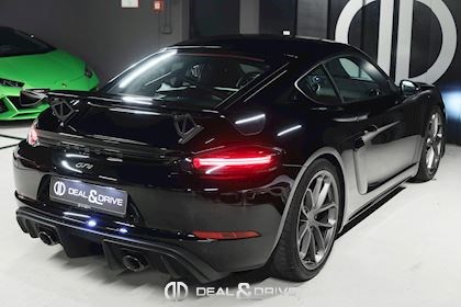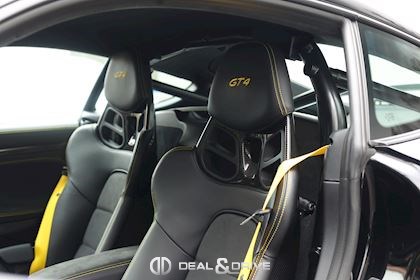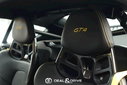 Equipements : EXTÉRIEUR Pack Sport Chrono Pack Clubsport Jantes 718 Cayman GT4 20’’ peintes en Platine satiné Etriers de frein, peints en Noir brillant Logo « PORSCHE » peint en Noir satiné Logo « GT4 » peint en Noir satiné Echappement Sport Rétroviseurs extérieurs électriques