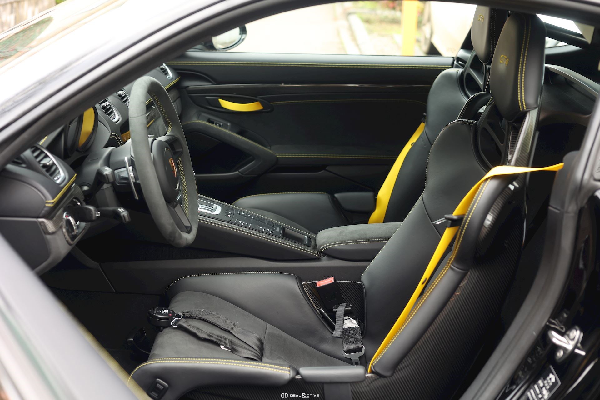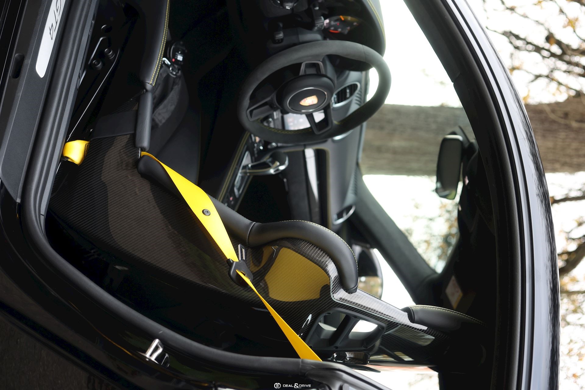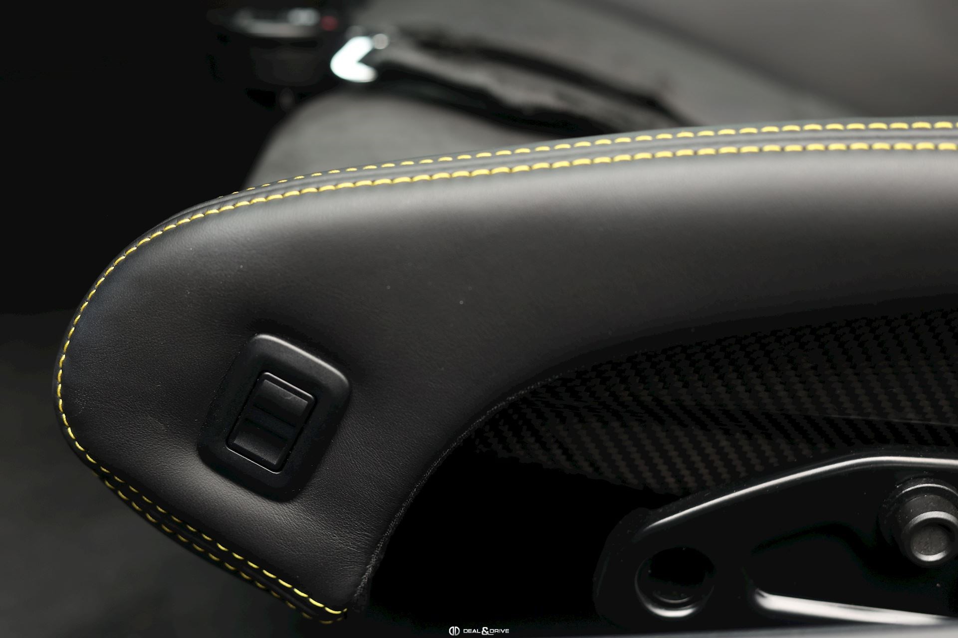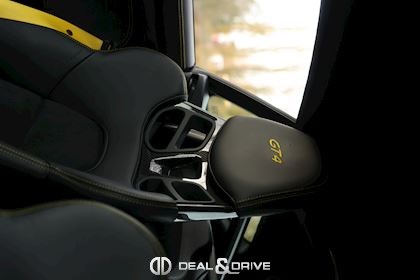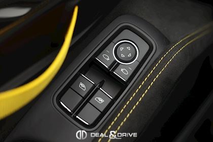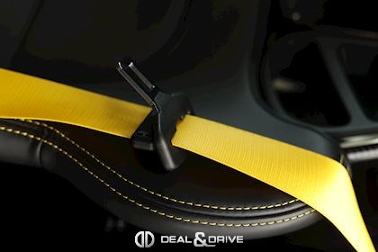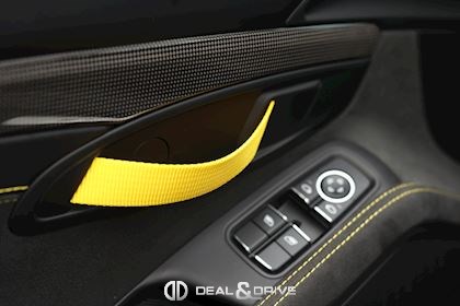 INTÉRIEUR Pack Intérieur Carbone Volant en Race-Tex avec surpiqûres jaunes Intérieur Race-Tex avec coutures décoratives en Jaune Rétroviseurs intérieur et extérieurs anti-éblouissement avec capteur de pluie intégré Coutures décoratives en couleur contrastante Ceintures de sécurité Jaune Racing Sièges baquets intégraux Climatisation automatique 2 zones