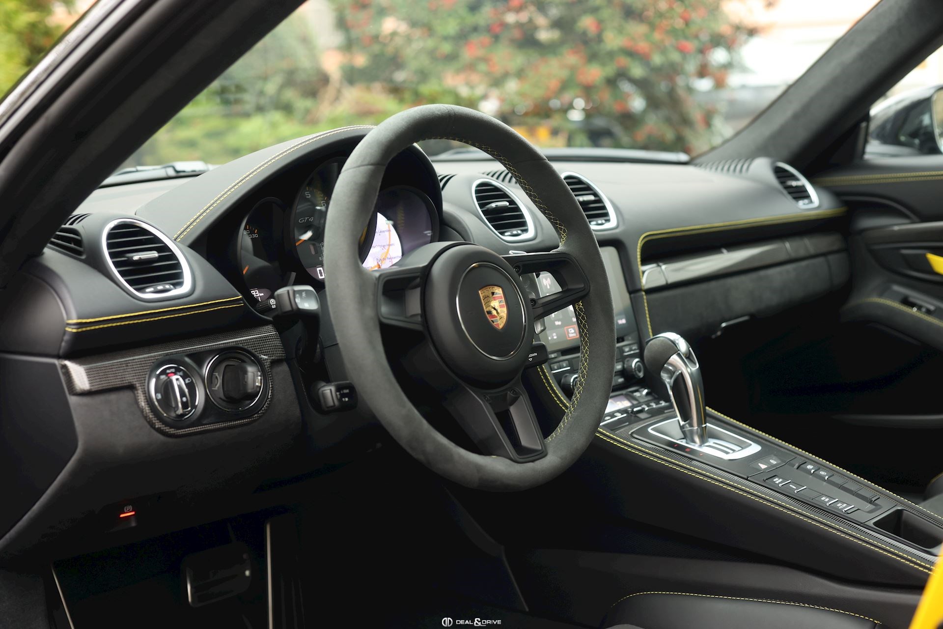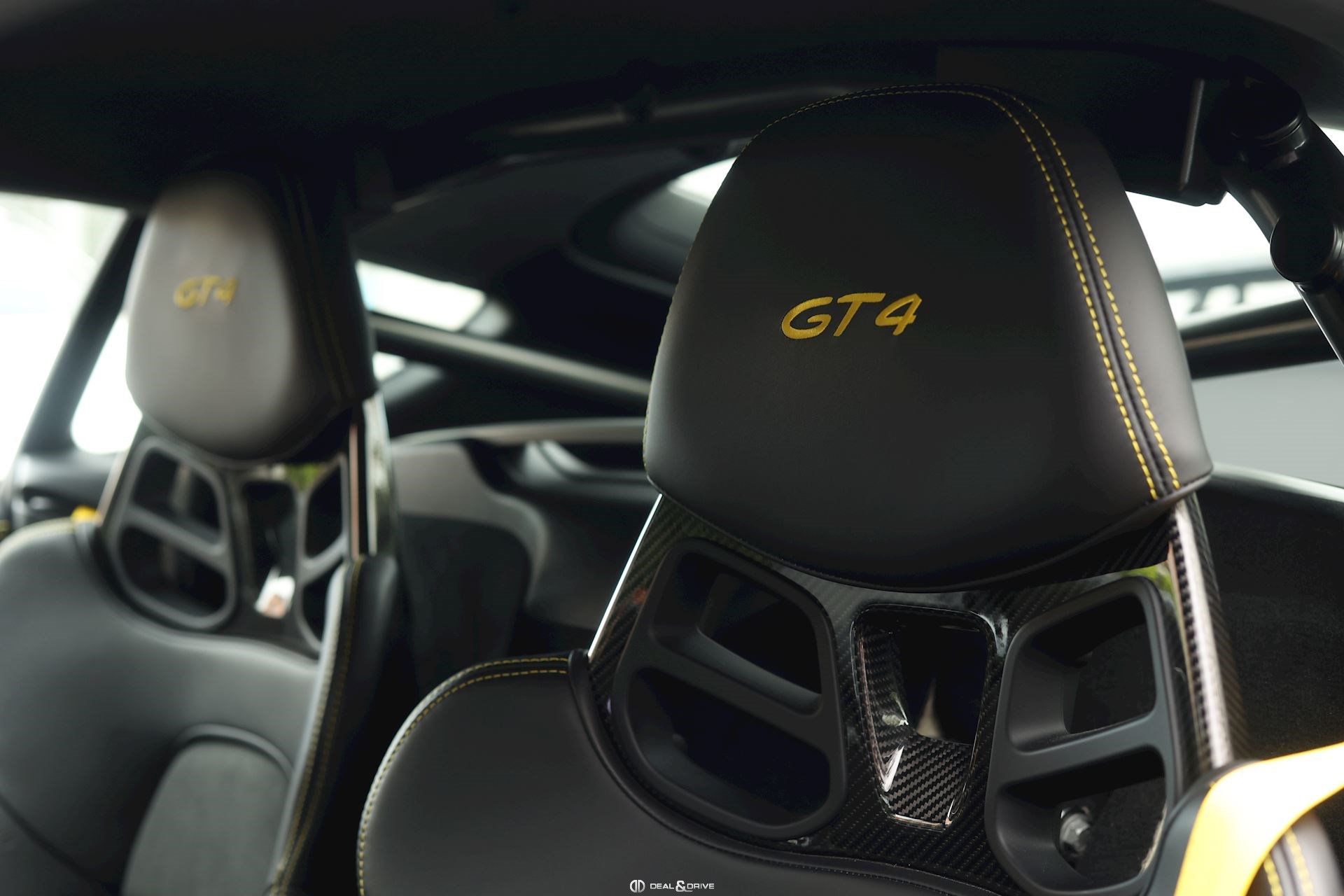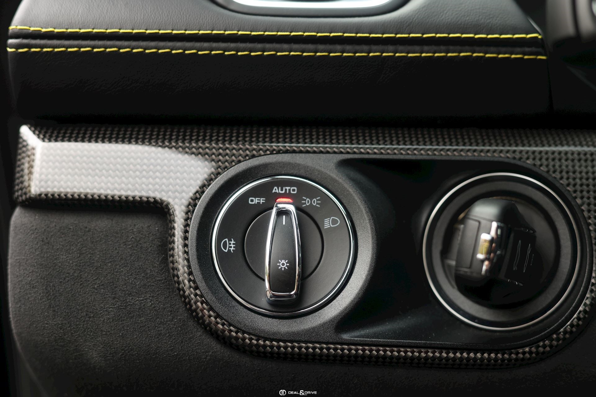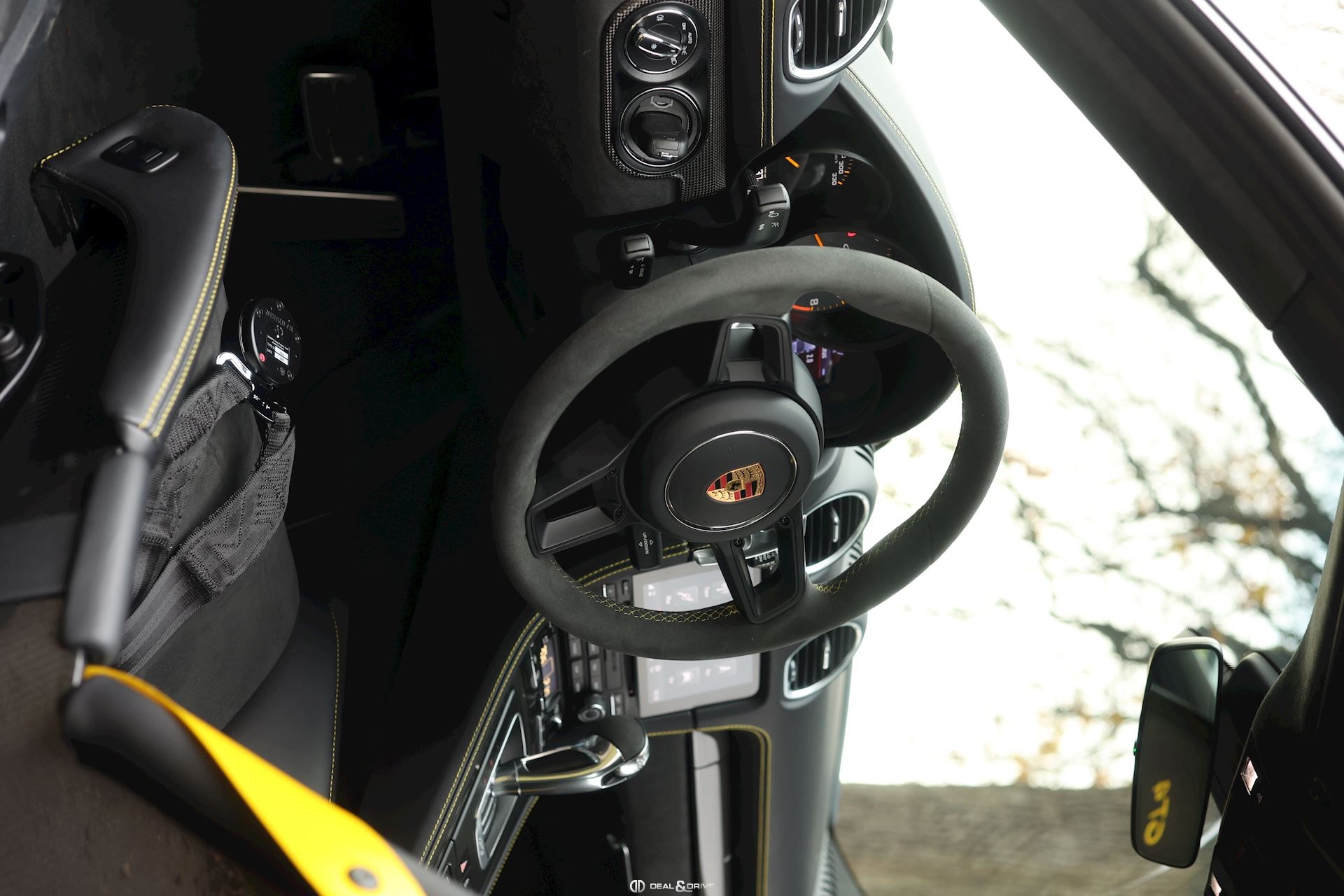 INTÉRIEUR Pack Intérieur Carbone Volant en Race-Tex avec surpiqûres jaunes Intérieur Race-Tex avec coutures décoratives en Jaune Rétroviseurs intérieur et extérieurs anti-éblouissement avec capteur de pluie intégré Coutures décoratives en couleur contrastante Ceintures de sécurité Jaune Racing Sièges baquets intégraux Climatisation automatique 2 zones