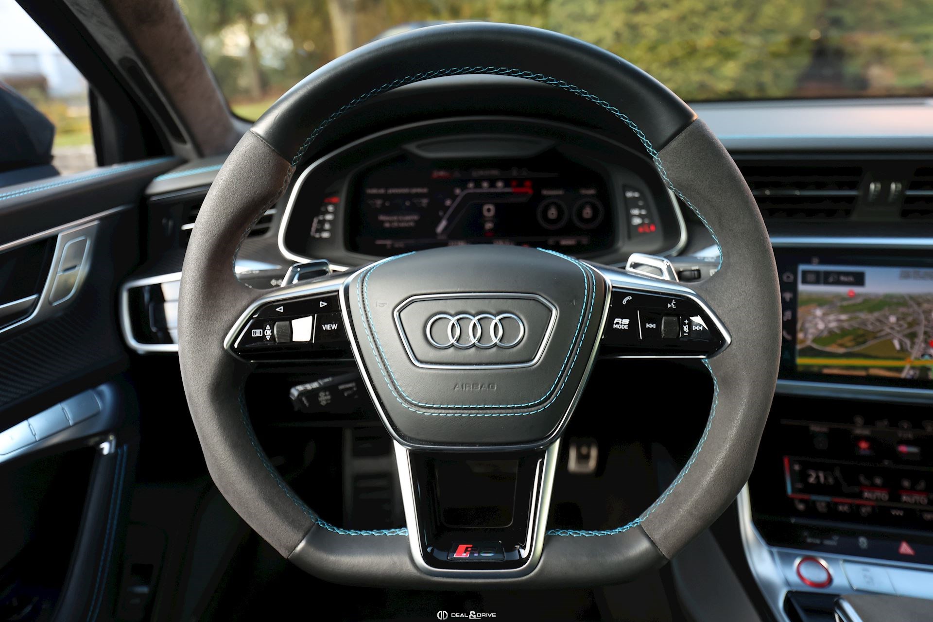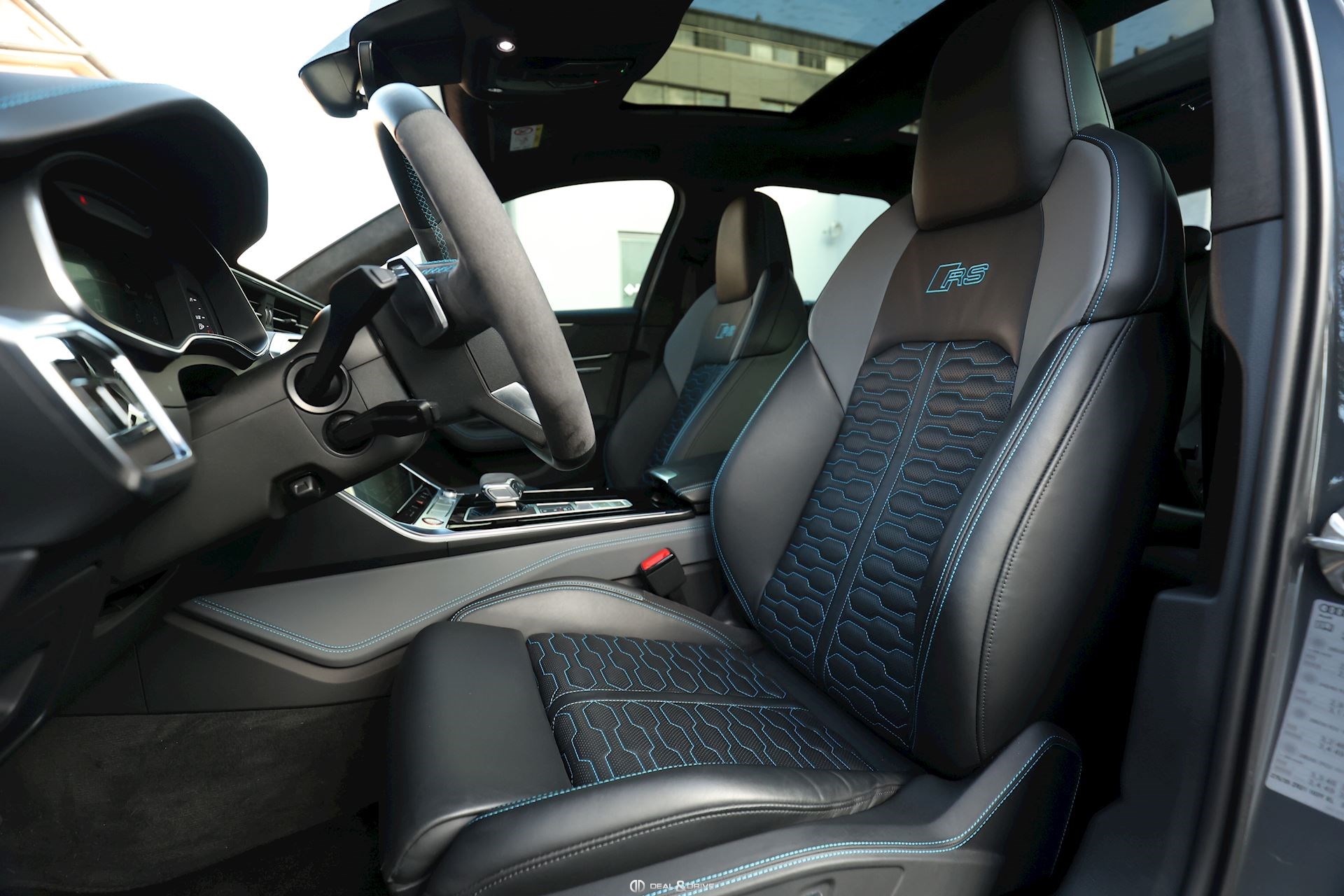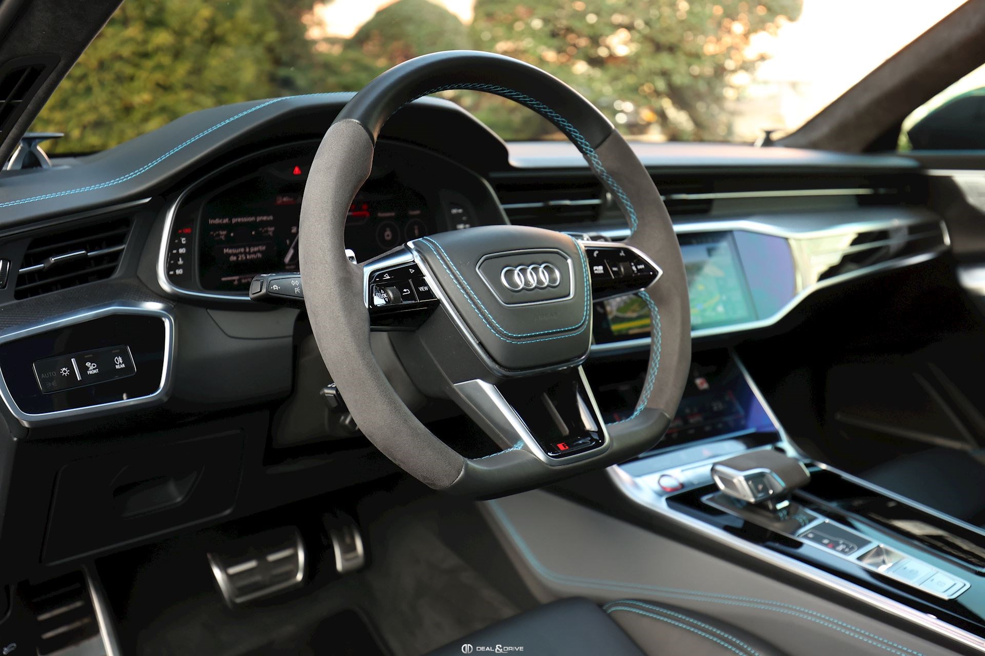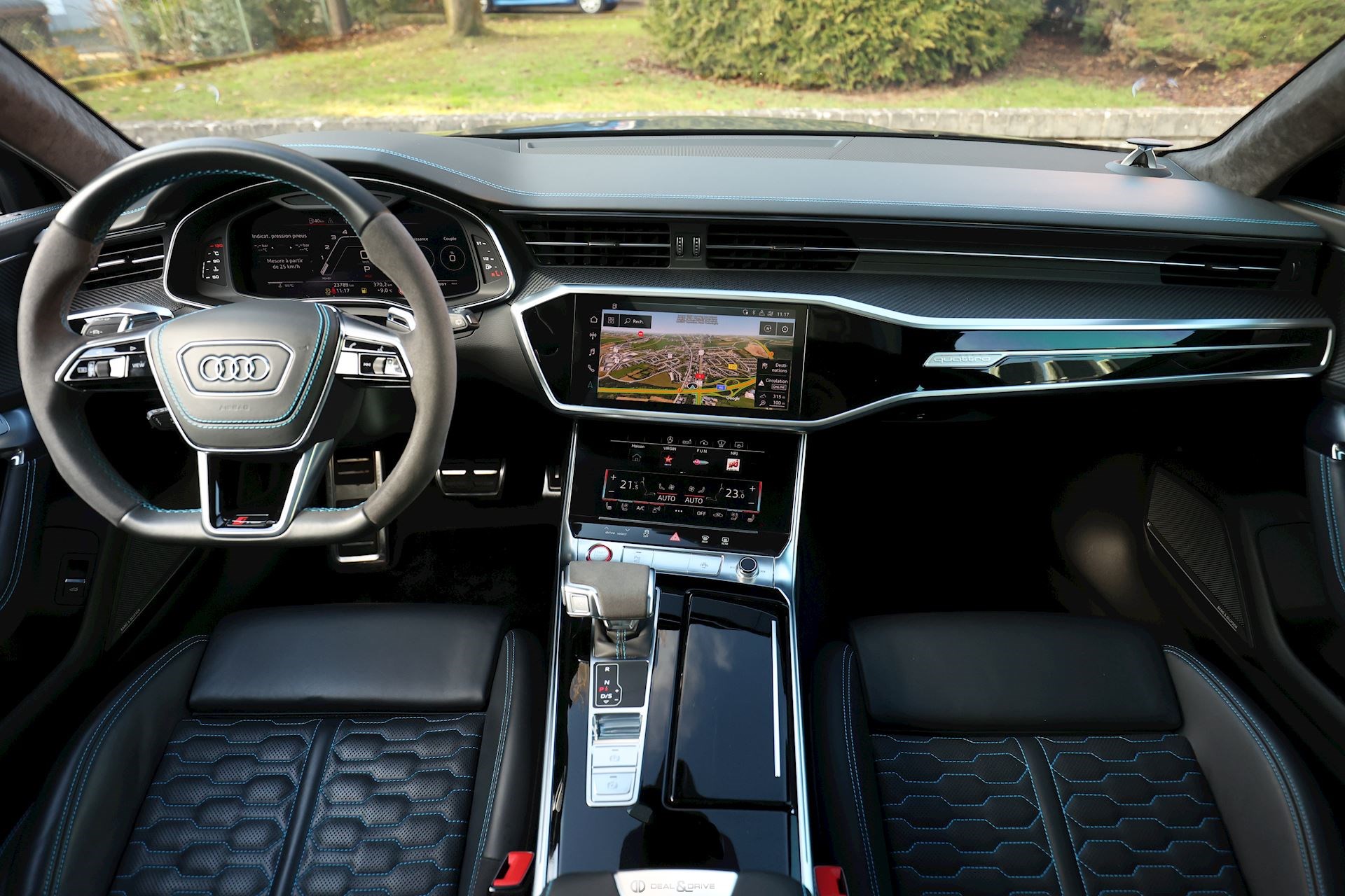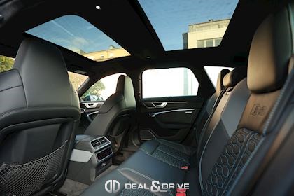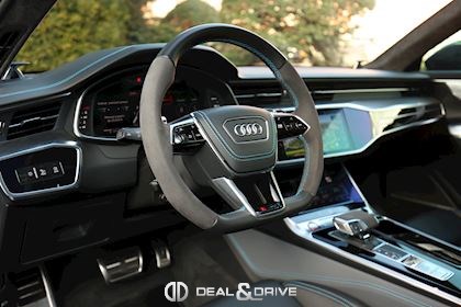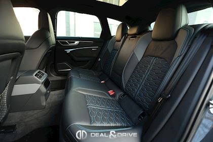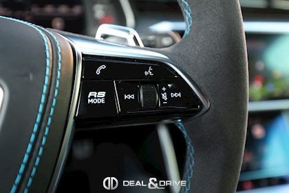 INTÉRIEUR Intérieur en cuir Valcona Audi exclusive Surpiqûres en bleu Sièges avant Sport RS en cuir Valcona perforé Sièges avant ventilés Sièges avant chauffants Sièges arrière chauffants Tapis de sol avec joints en cuir Audi Exclusive Garnissage de porte en Alcantara Finition intérieure en carbone Plafonnier en Alcantara noir Audi exclusive Monogramme RS brodé dans les appui-têtes Ionisateur d'air Air-Quality-System Seuils de portes en Aluminium Appuie-lombaires avant électriques Accoudoir central avant Rideaux pare-soleil pour les vitres arrière Rétroviseur Intérieur avec fonction anti-éblouissement Sièges avant électriques Sièges avant avec fonction mémoire Supports Isofix pour siège enfant sur Siège passager Accoudoir central avant Climatisation automatique 4 zones Volant réglable électrique Levier de sélection en cuir perforé Volant Sport en cuir multifonctions Couvercle d'airbag en cuir Audi exclusive Système d’ouverture de porte de garage Système de contrôle de la pression des pneus