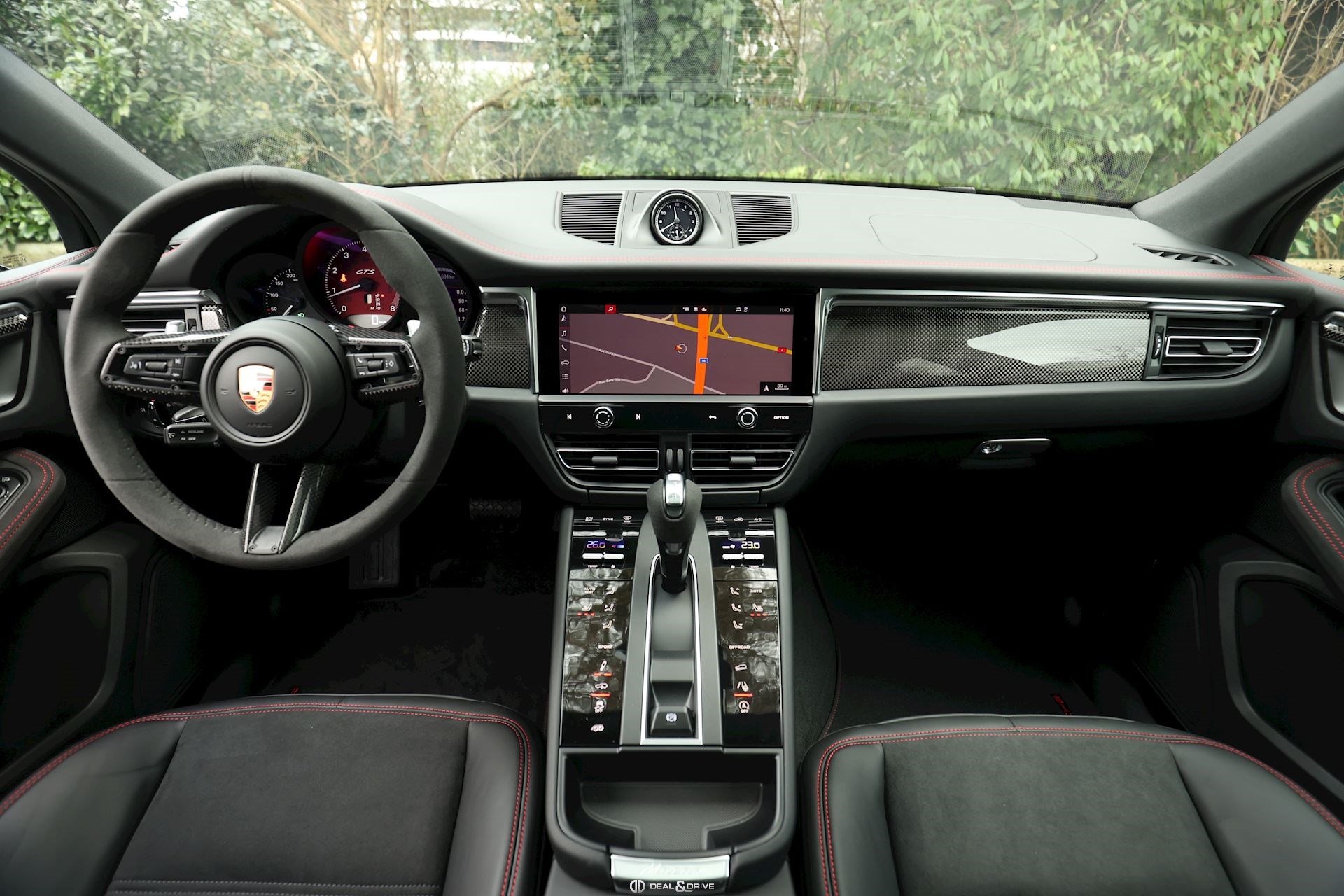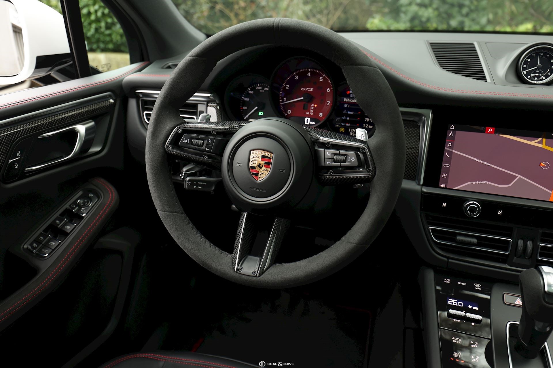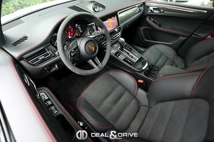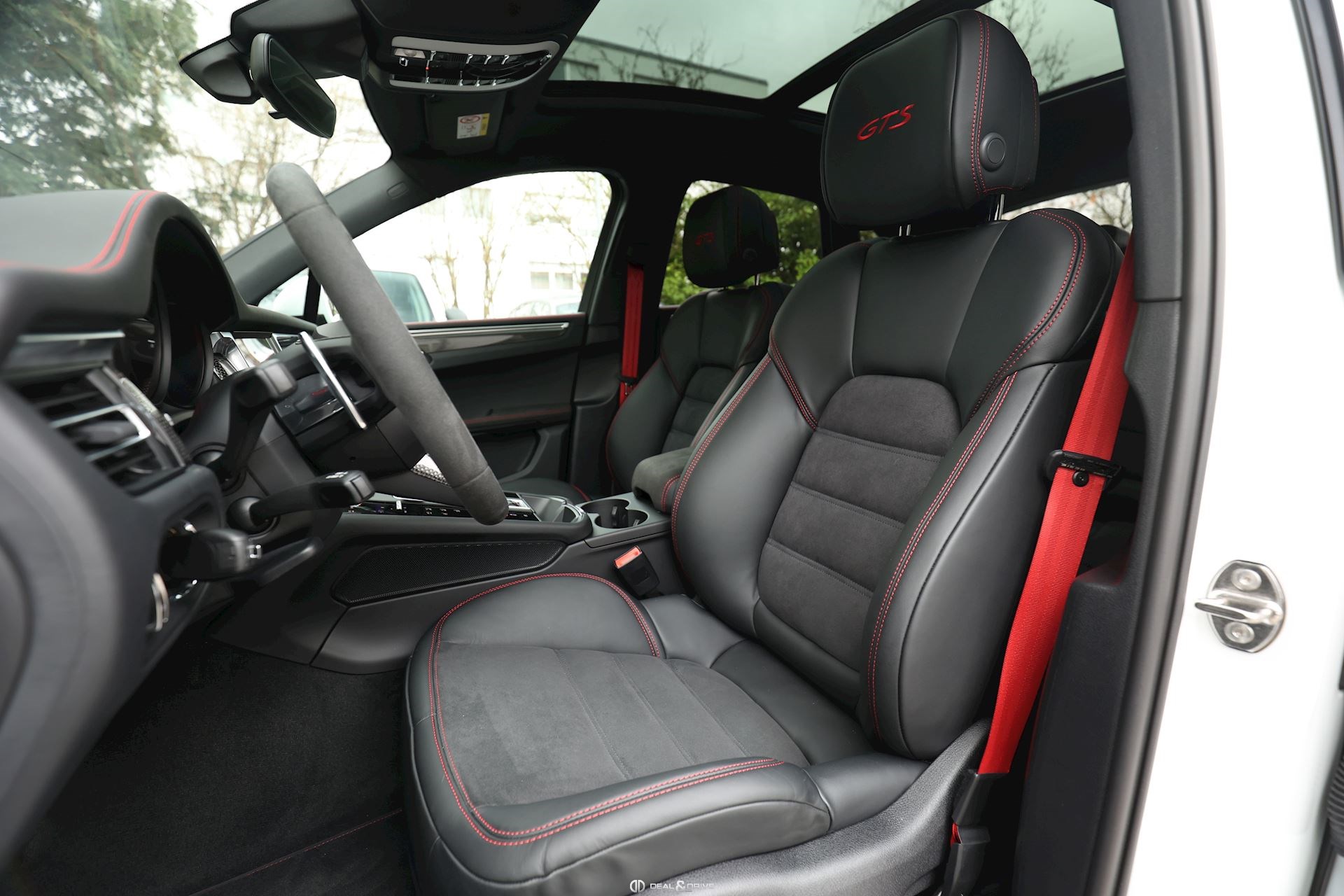 INTÉRIEUR Pack intérieur carbone Pack intérieur en Race-Tex Intérieur GTS Rouge Carmin Sièges avant chauffants Climatisation automatique 3 zones Volant en Race-Tex et carbone multifonctions Volant chauffant Sièges avant électriques réglables en 8 positions Fonds de compteurs en Rouge Carmin Plafonnier noir Seuils de portes en Aluminium foncé avec inscription « MACAN GTS »
