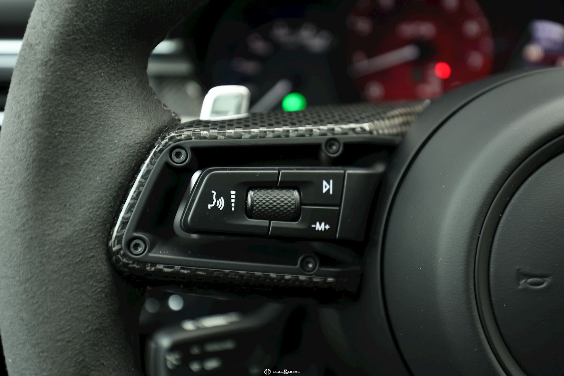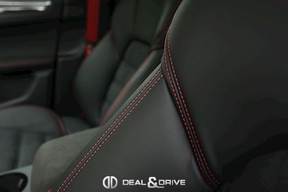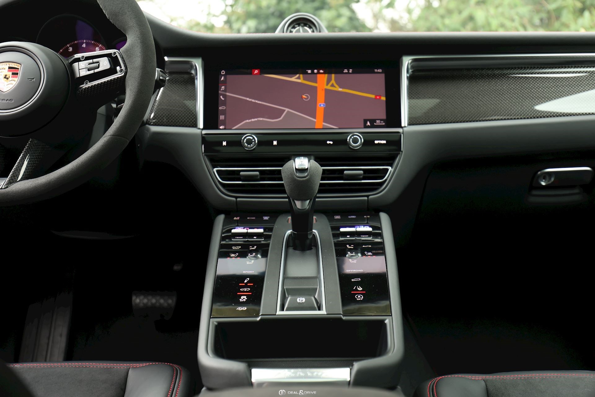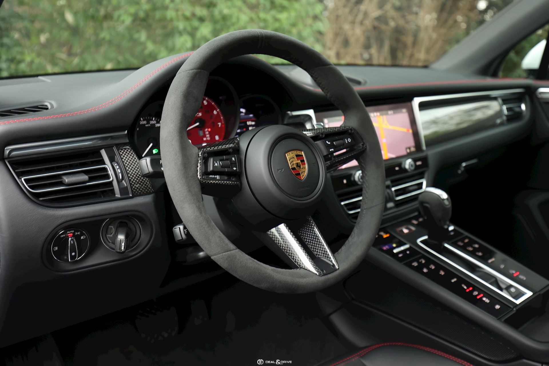 INTÉRIEUR Pack intérieur carbone Pack intérieur en Race-Tex Intérieur GTS Rouge Carmin Sièges avant chauffants Climatisation automatique 3 zones Volant en Race-Tex et carbone multifonctions Volant chauffant Sièges avant électriques réglables en 8 positions Fonds de compteurs en Rouge Carmin Plafonnier noir Seuils de portes en Aluminium foncé avec inscription « MACAN GTS »