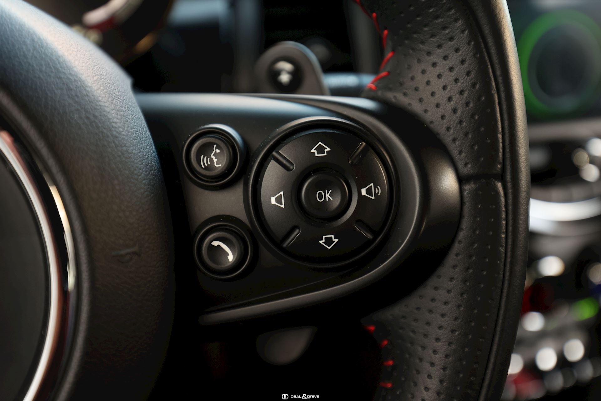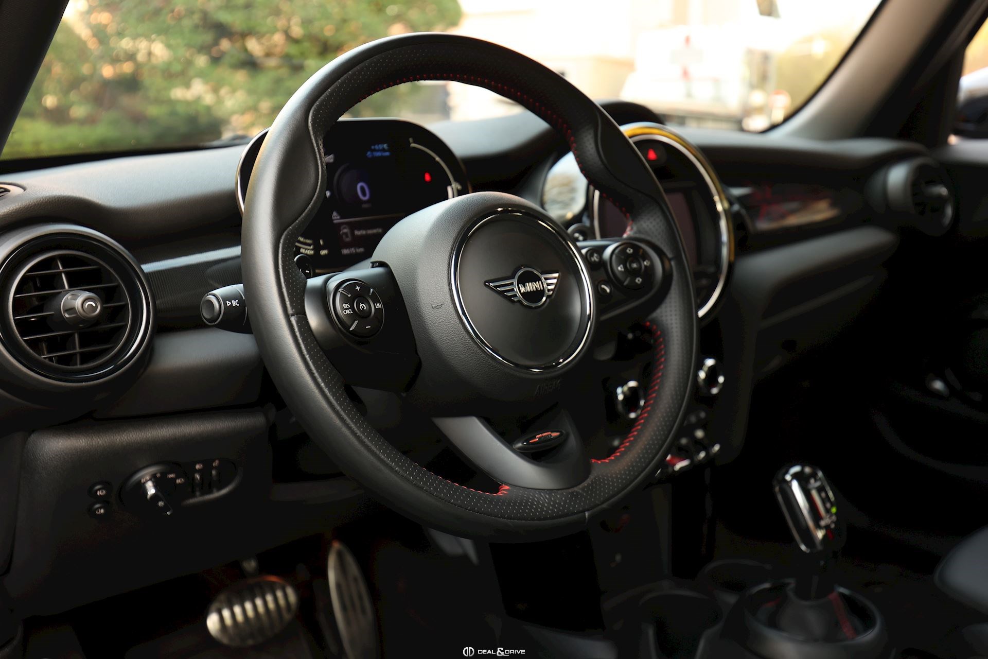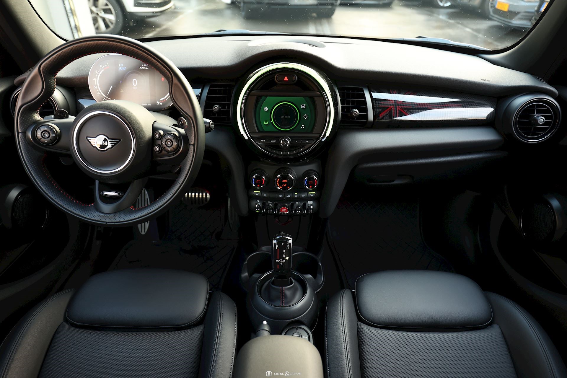 INTÉRIEUR Sièges avant chauffants Climatisation automatique 2 zones Volant sport John Cooper Works en cuir multifonctions avec palettes au volant Plafonnier noir Sellerie cuir Supports Isofix sur le siège passager Seuils de portes avec inscription John Cooper Works