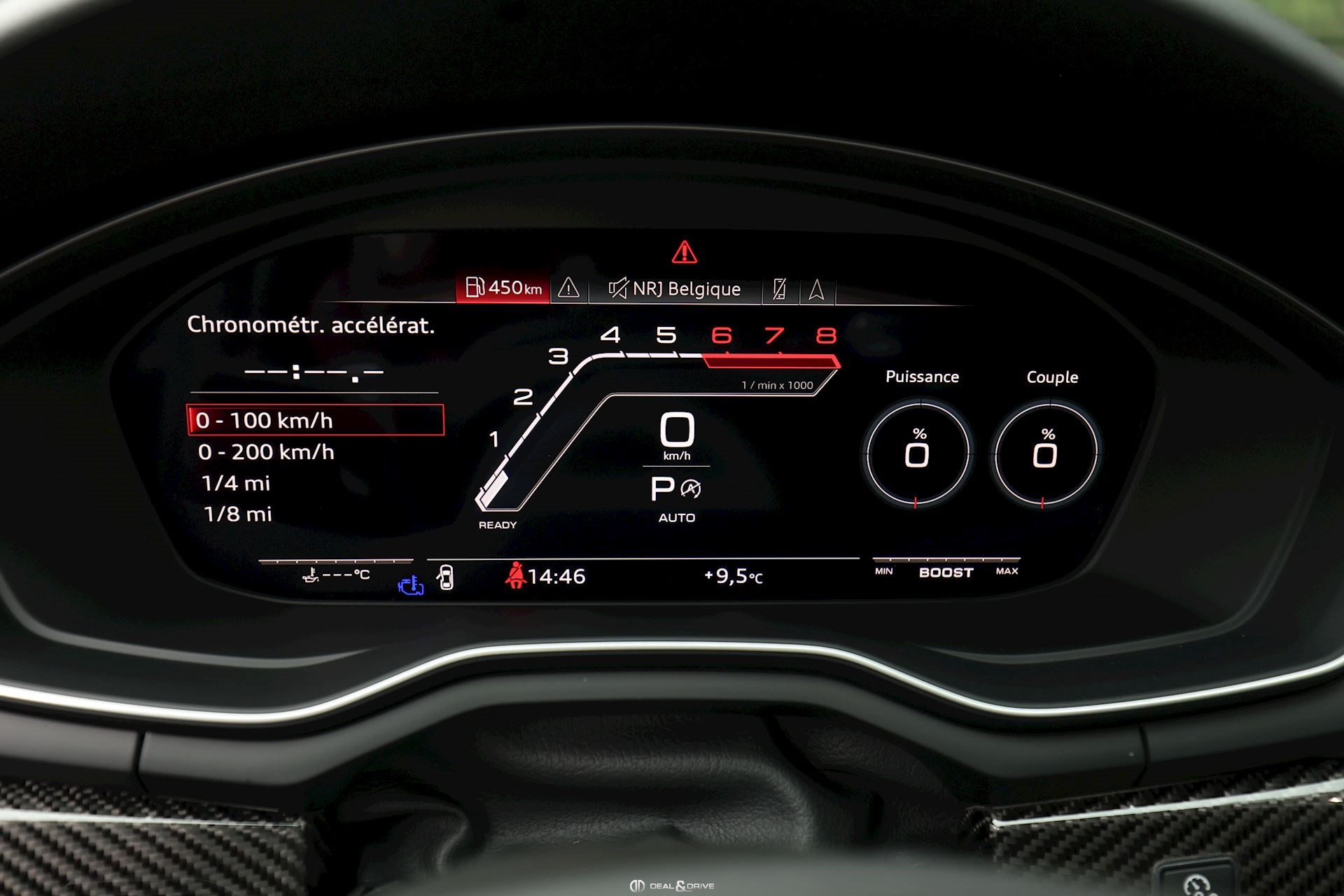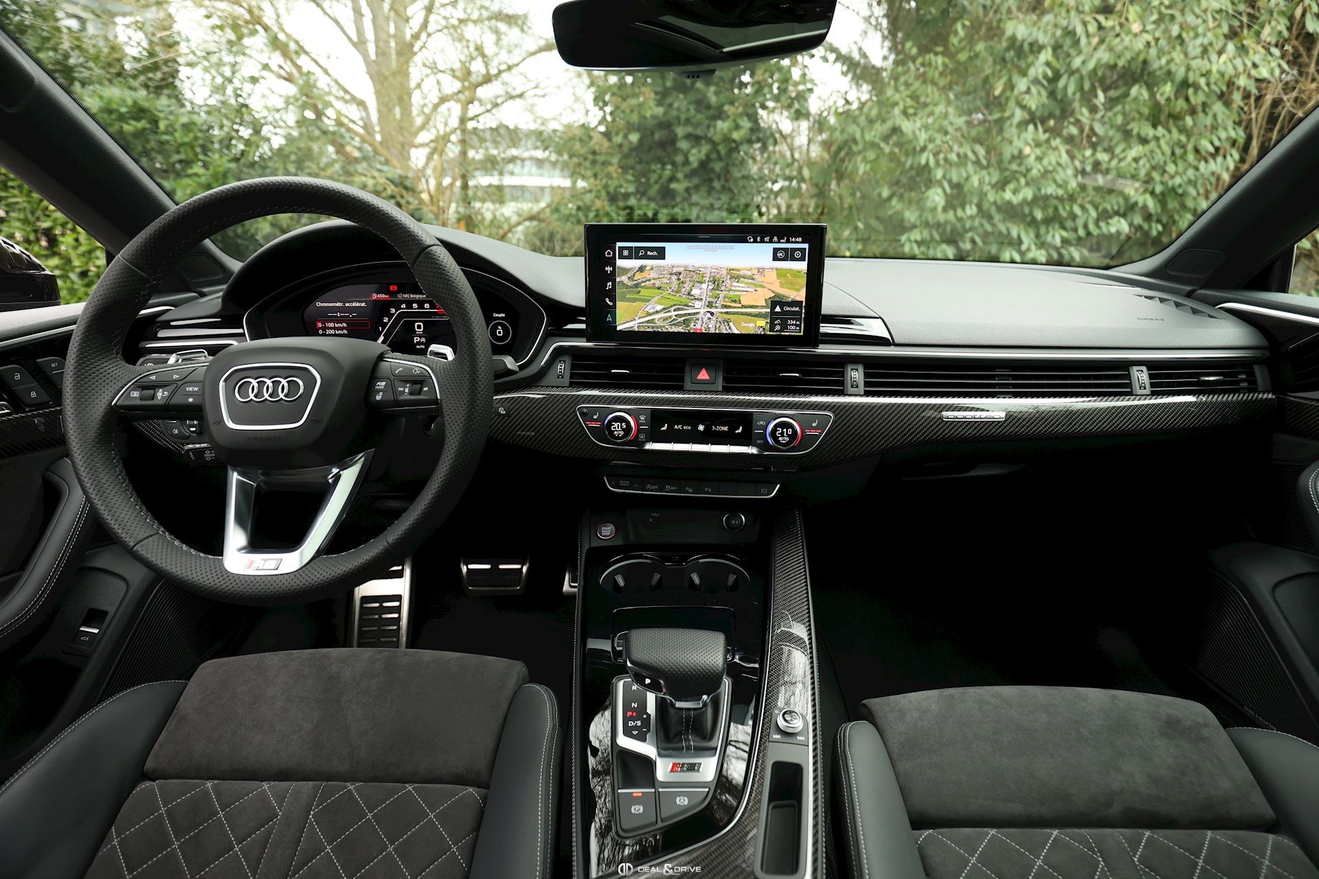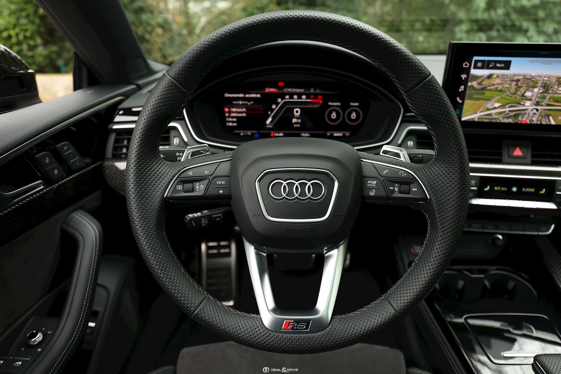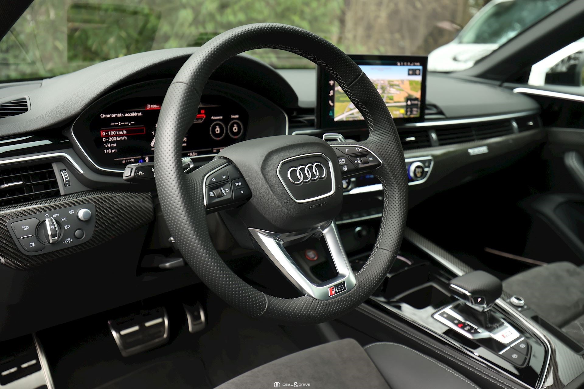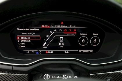 AUDIO ET COMMUNICATION Système audio Bang & Olufsen Audi Virtual Cockpit Plus avec Design RS Radio numérique DAB Pack Infotainment Audi Connect Multi-Media-Interface MMI Navigation Plus avec MMI Touch Audi Phone Box Interface Bluetooth Système de commande vocale Chargeur à induction pour Smartphone