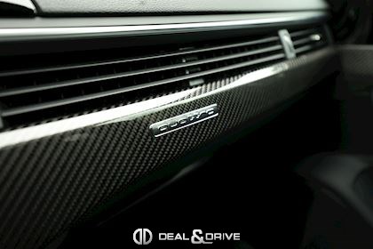 INTÉRIEUR Inserts en Carbone brillant Sellerie en cuir et Alcantara Volant Sport en cuir multifonctions Volant chauffant Sièges avant avec fonction massage Appuie-lombaires électriques Plafonnier Noir Tapis de sol Garnissage de portes en Alcantara Climatisation automatique Confort 3 zones Accoudoir central avant Seuils de porte en Aluminium, éclairés