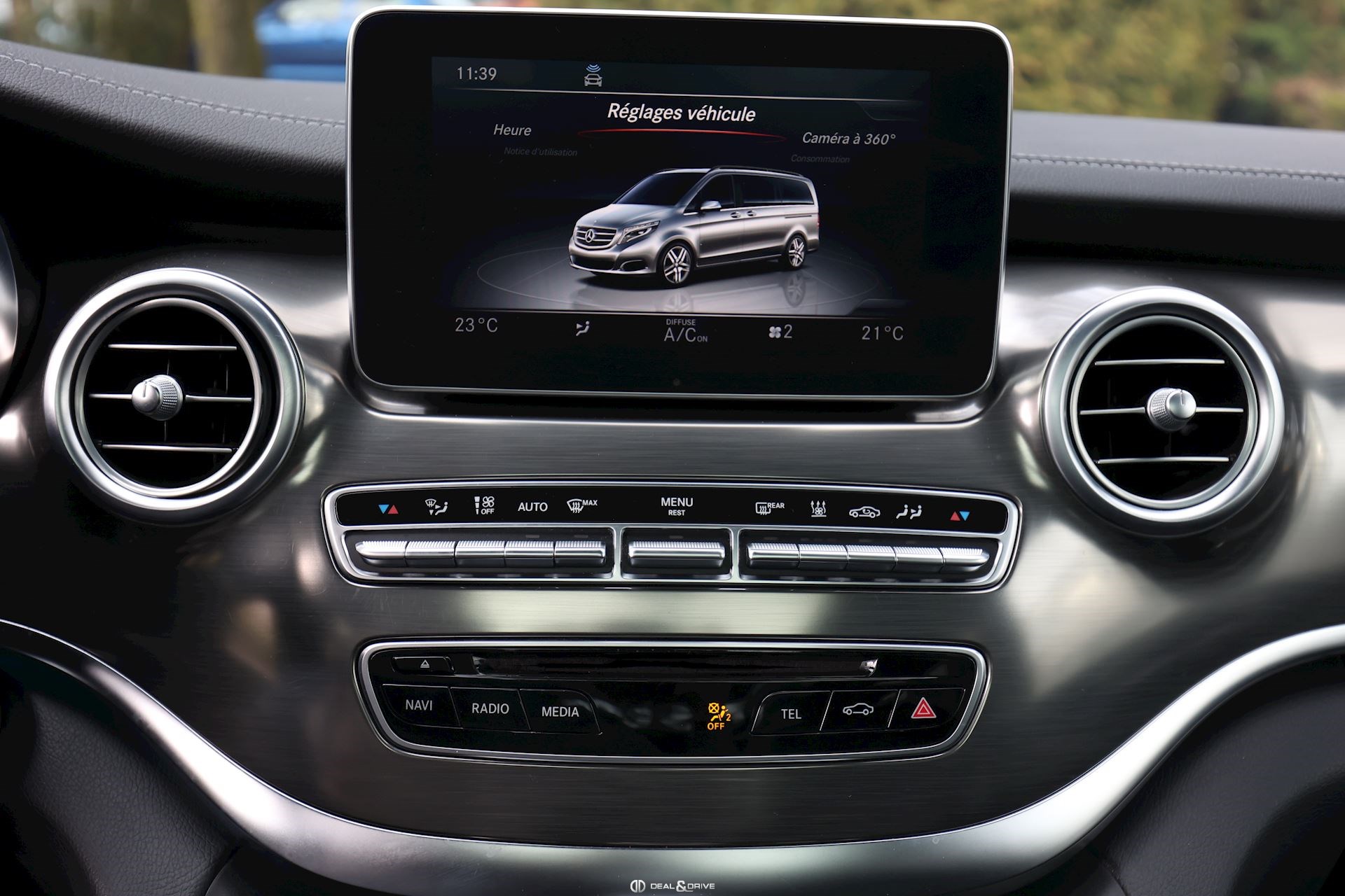 Boîte à gant avec fonction réfrigérante Porte gobelet avec fonction chauffante et réfrigérante Intérieur en Aluminium Brossé Climatisation automatique 3 zones Volant en cuir multifonctions Plafonnier Dinamica noir