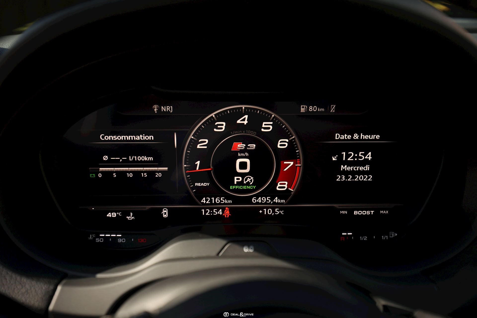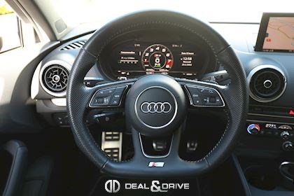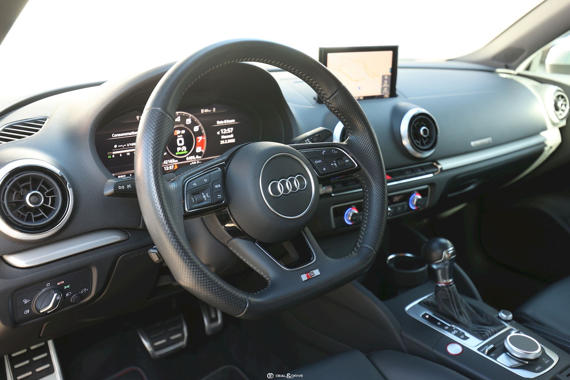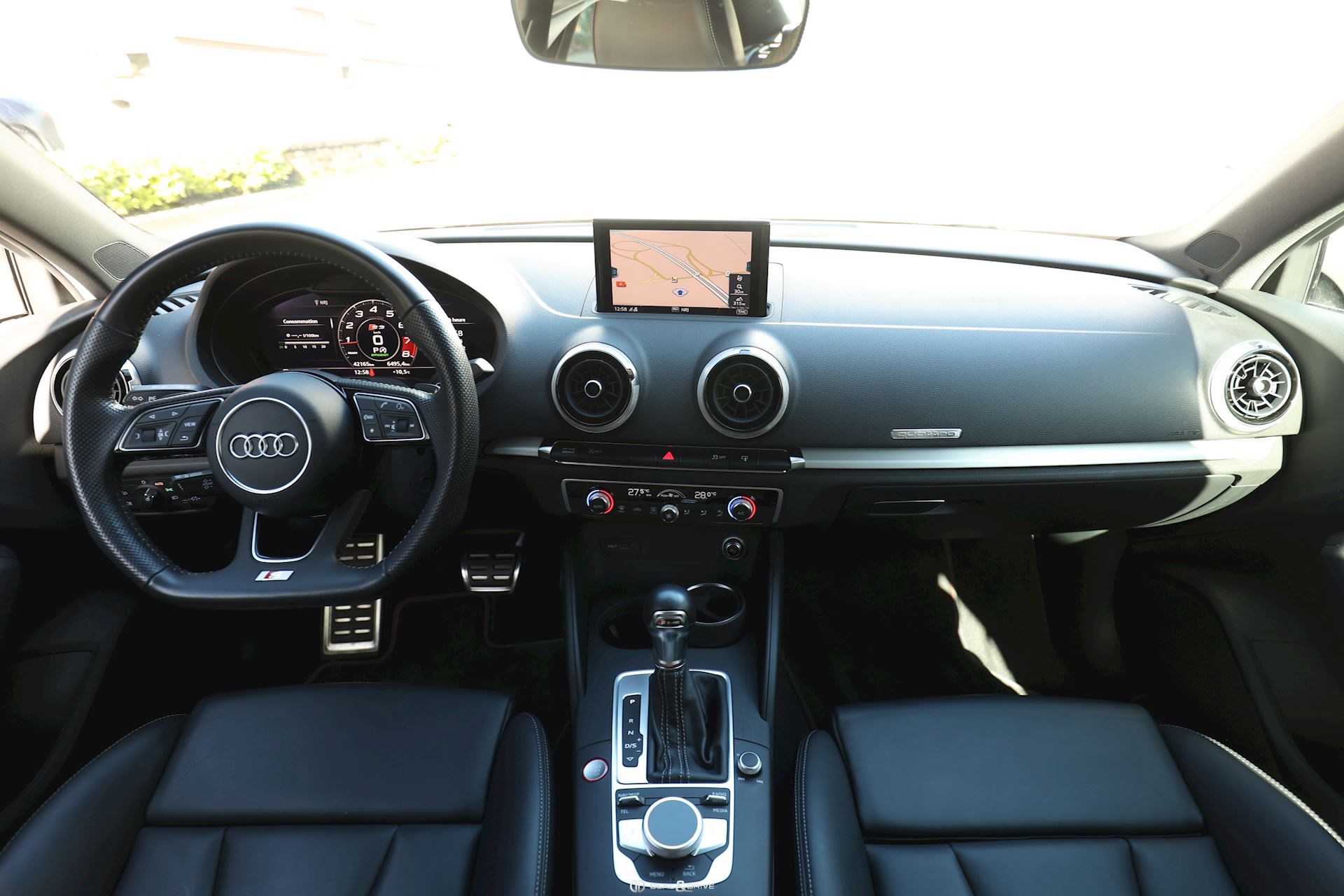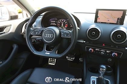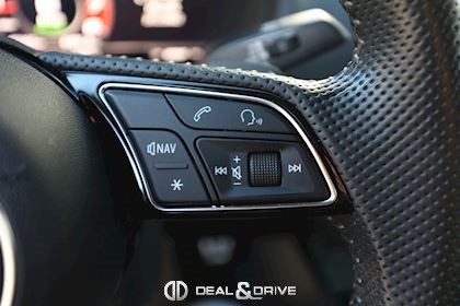INTÉRIEUR Volant en cuir multifonctions Sellerie en cuir Nappa S-Line Climatisation automatique Confort 2 zones Intérieur finition Aluminium Plafonnier en tissu noir Seuils de portes en Aluminium avec logo éclairé