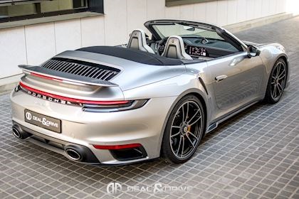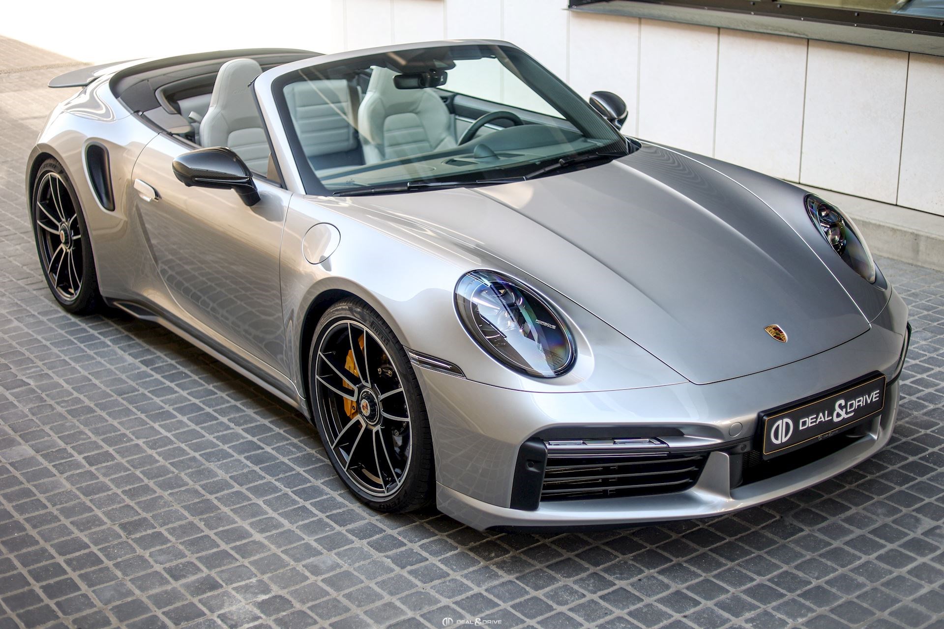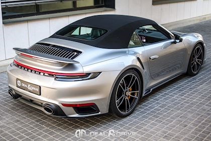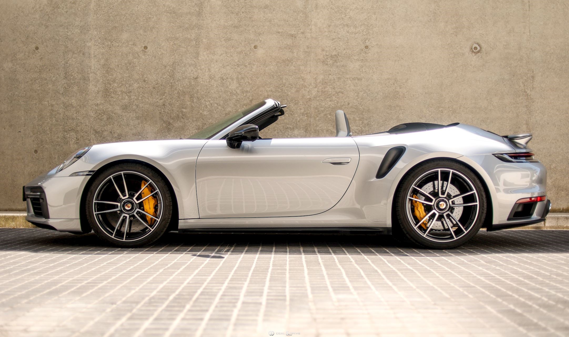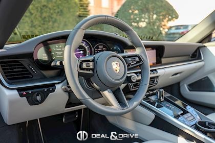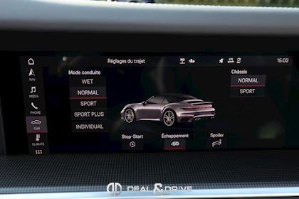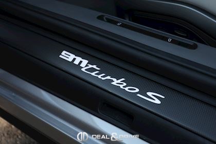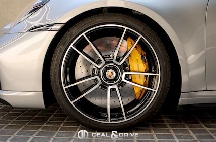 EXTÉRIEUR Capote en couleur Noir Etriers de frein, peints en jaune Jantes alliage léger 20’’ / 21’’ 911 Turbo S Caches moyeux Porsche en couleur Coques des rétroviseurs extérieurs en carbone Rétroviseurs extérieurs électriques et rabattables Système d’échappement Sport Monogramme 911 Turbo S
