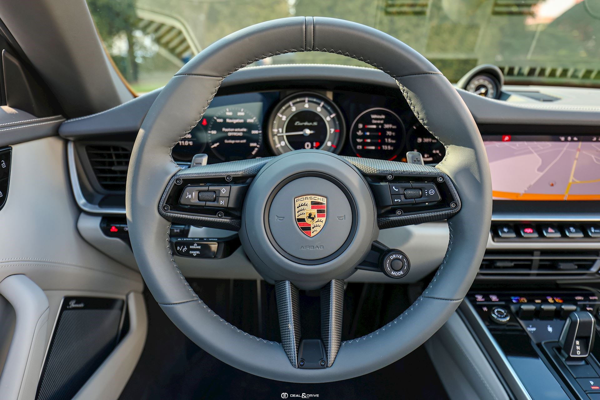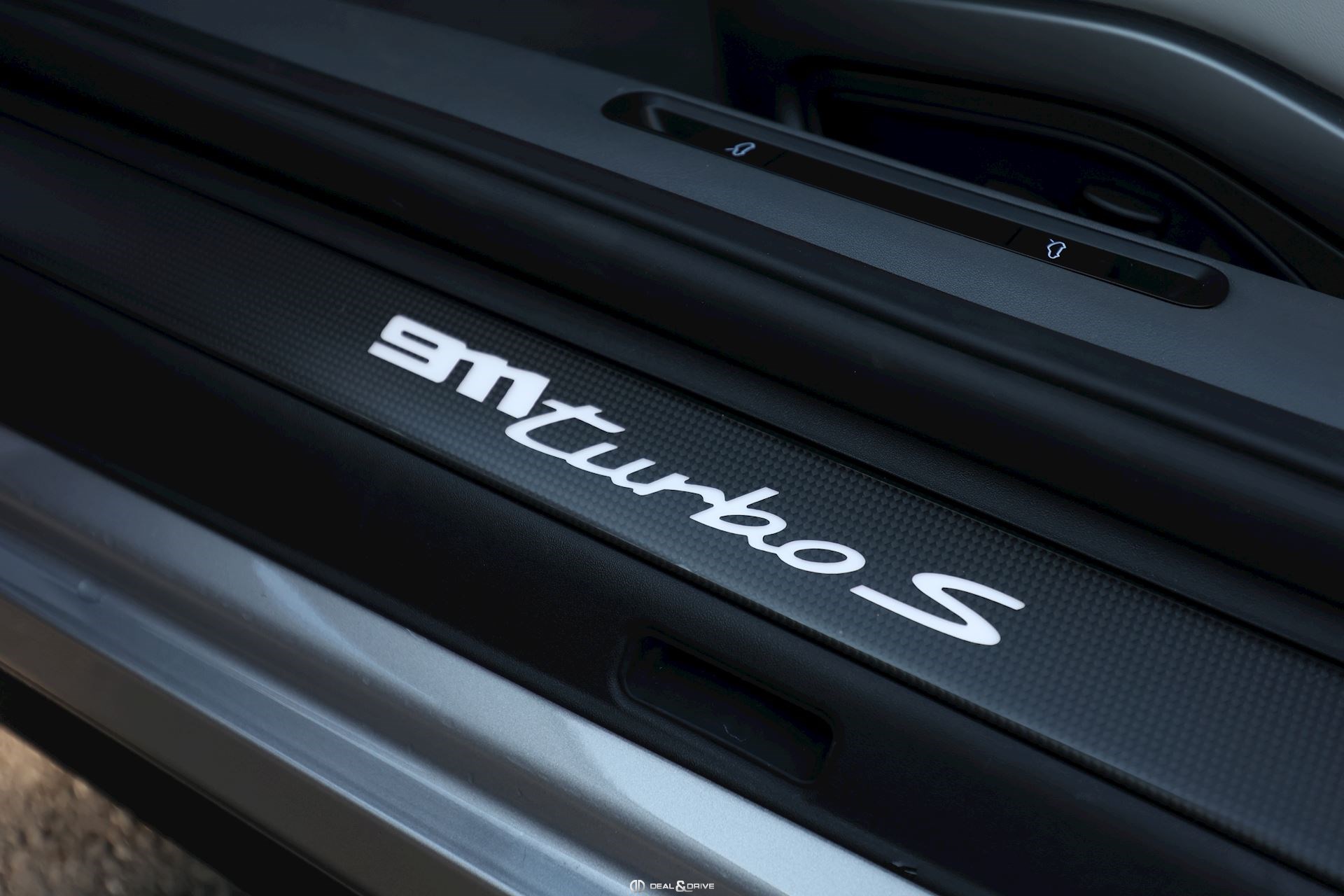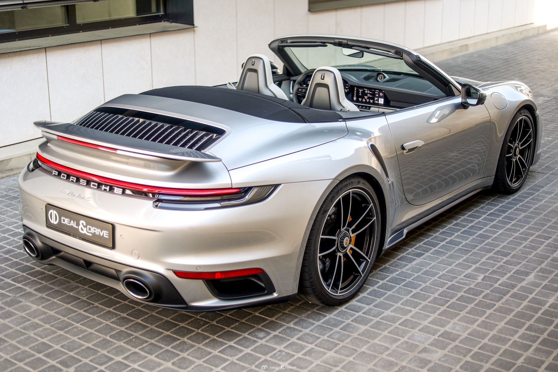 EXTÉRIEUR Capote en couleur Noir Etriers de frein, peints en jaune Jantes alliage léger 20’’ / 21’’ 911 Turbo S Caches moyeux Porsche en couleur Coques des rétroviseurs extérieurs en carbone Rétroviseurs extérieurs électriques et rabattables Système d’échappement Sport Monogramme 911 Turbo S