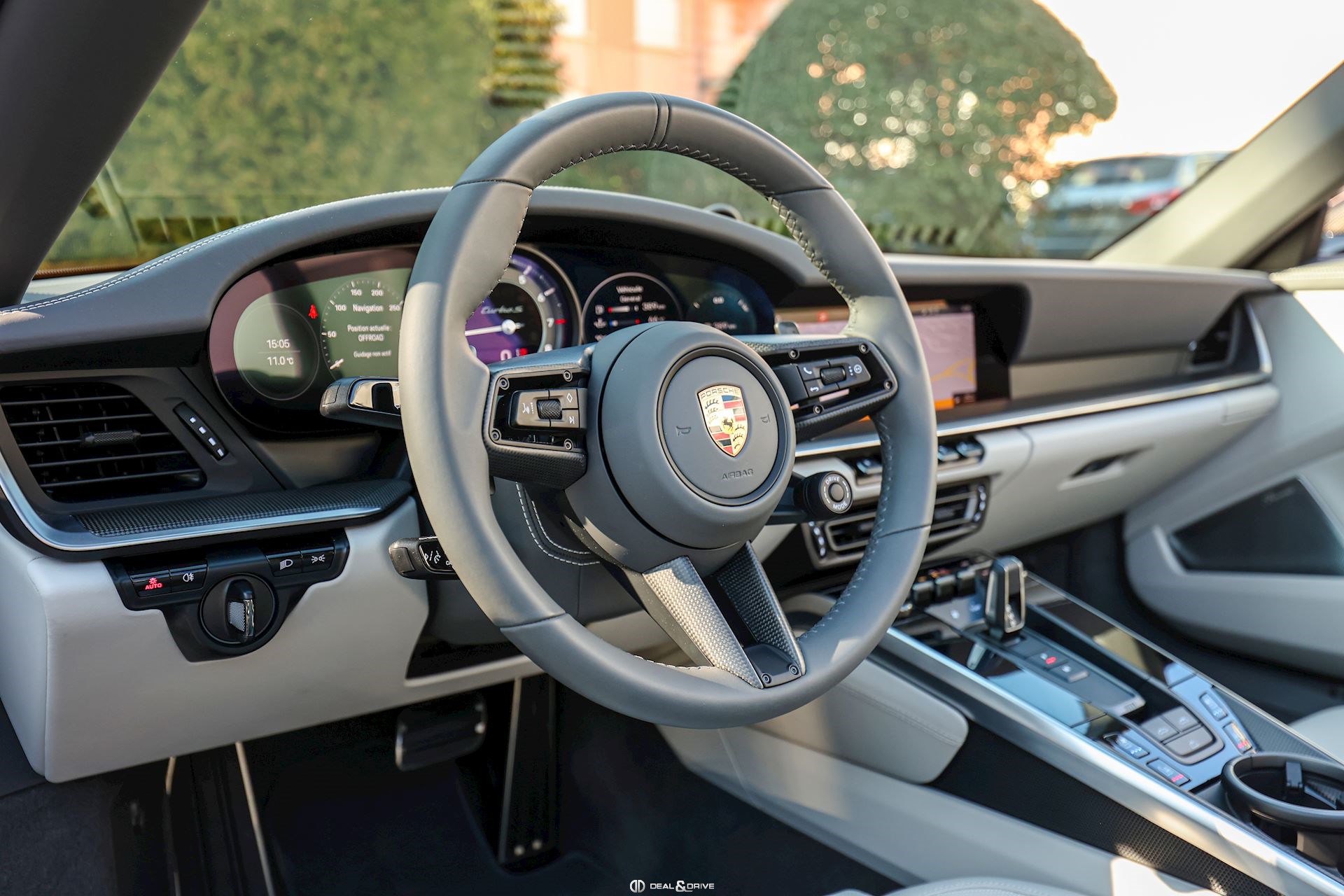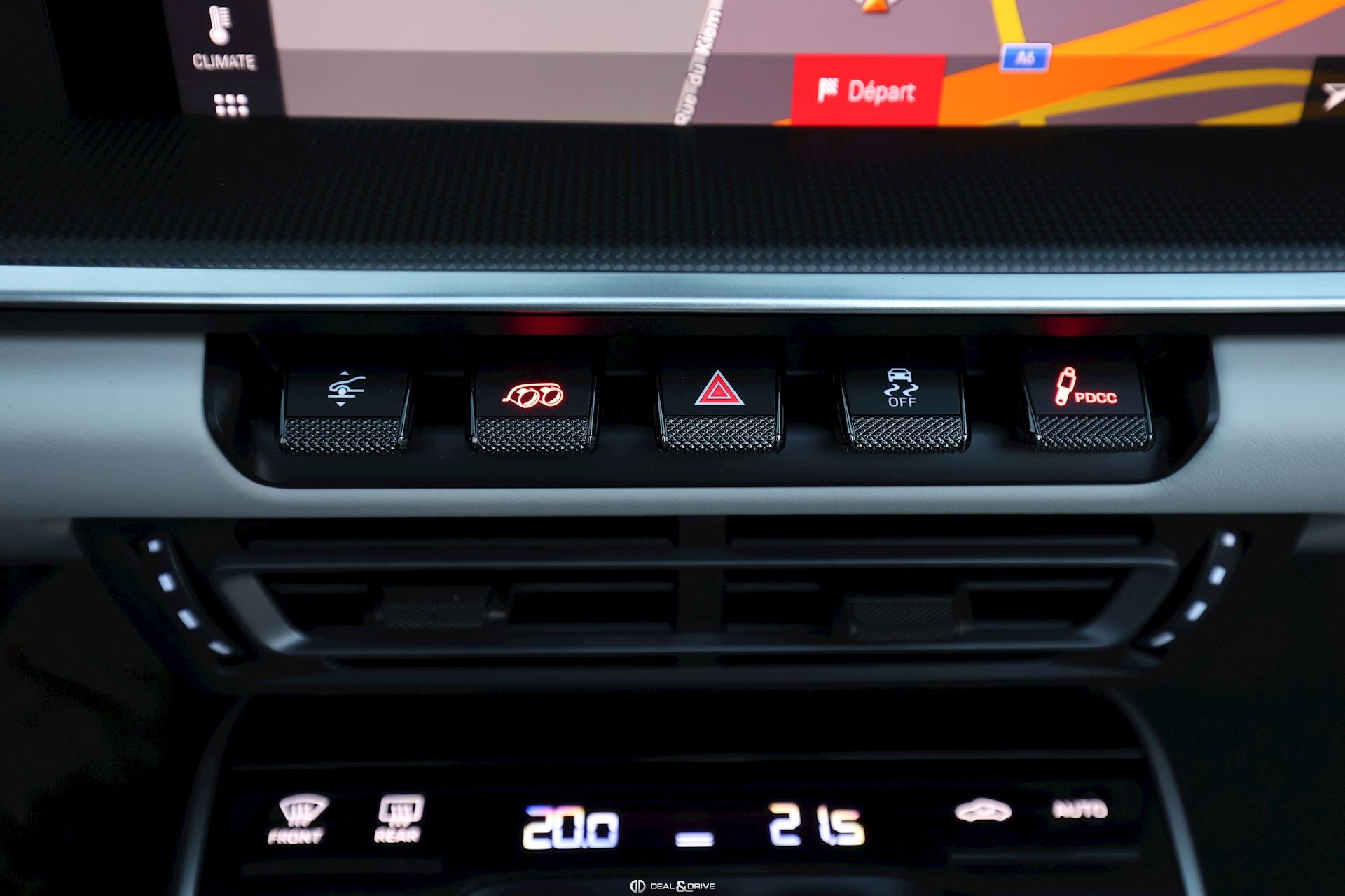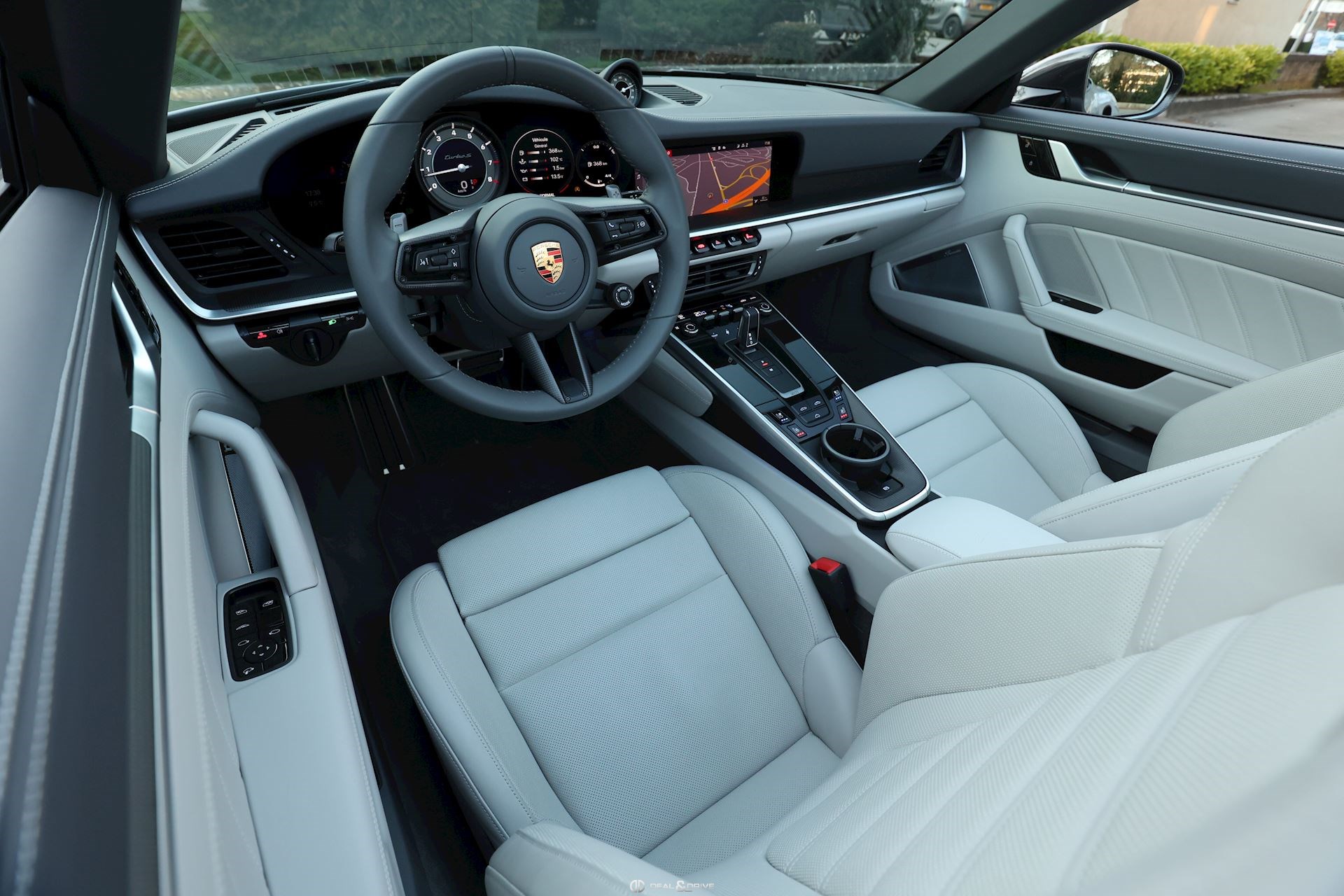 INTÉRIEUR Sièges avant Sport 18 voies Sièges avant avec fonction mémoire Sièges avant chauffants Sièges avant ventilés Volant GT Sport en cuir, multifonctions Accoudoir central avant avec monogramme Porsche Habillage de colonne de direction en cuir Seuils de portes en carbone avec monogrammes éclairés Tapis de sol Ionisateur d'air Climatisation automatique 2 zones