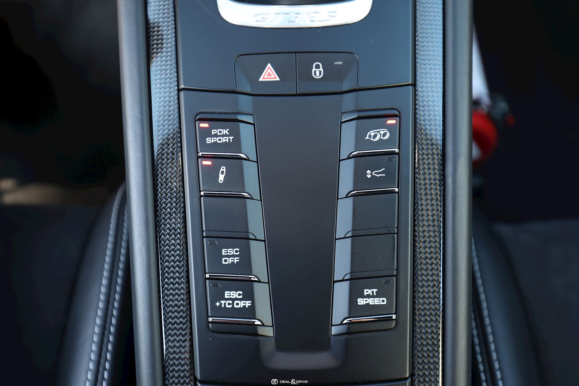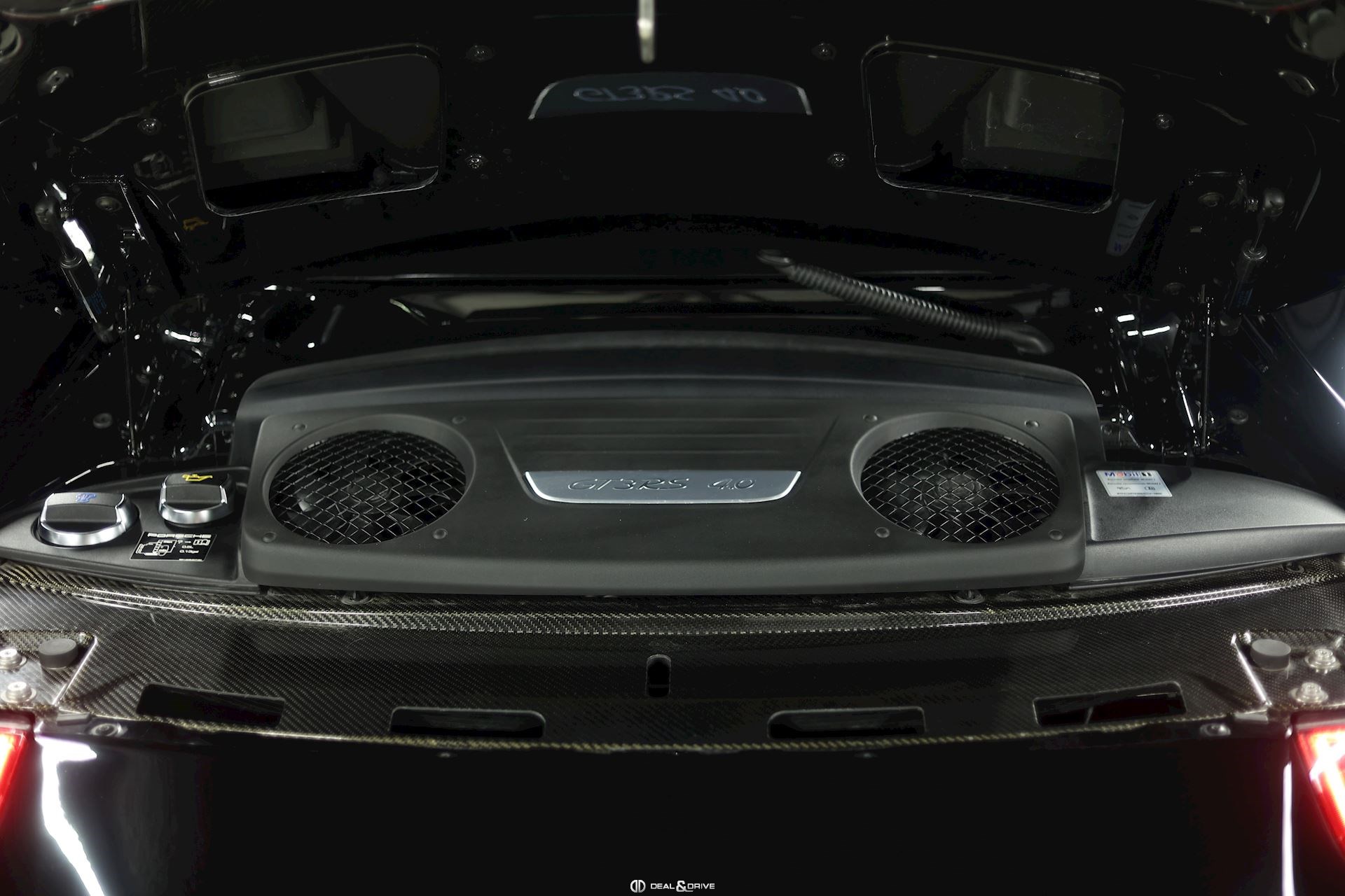 Boîte de vitesses 7 rapports automatique à double embrayage (PDK) Harnais de sécurité à 6 points côté passager Ceintures de sécurité noire Colonne de direction réglable Console centrale avec finition Carbone Contrôle pression pneumatiques Dispositif de freinage céramique (Porsche Ceramic Composite Brake, PCCB) Interface universelle Audio Jantes alliage léger noire, satiné brillant peint Cache lave-phares peint Lift-system Pack sport chrono Pare-brise avec bandeau pare-soleil supérieur Porsche Active Suspension Management (PASM) Porsche Communications Management (PCM) comprenant DVD - Module de navigation (étendu) Porsche Torque Vectoring Plus (PTV Plus) Eclairage principal LED, noir, Porsche Dynamic Light Système Plus (PDLS+) Seuils de porte en carbone Réservoir à carburant 90 litres Rétroviseur extérieur partie inférieure peint (Sport Design) Sound-Package Plus Support à boissons Tapis de sol Porsche