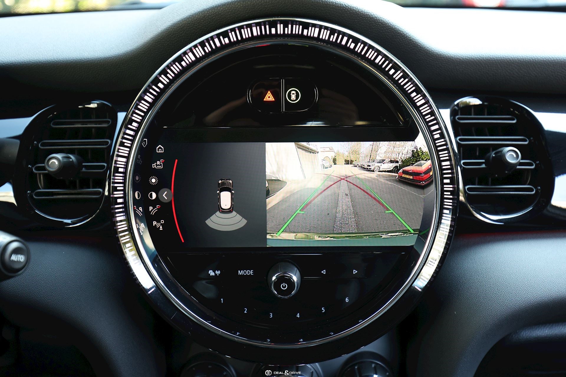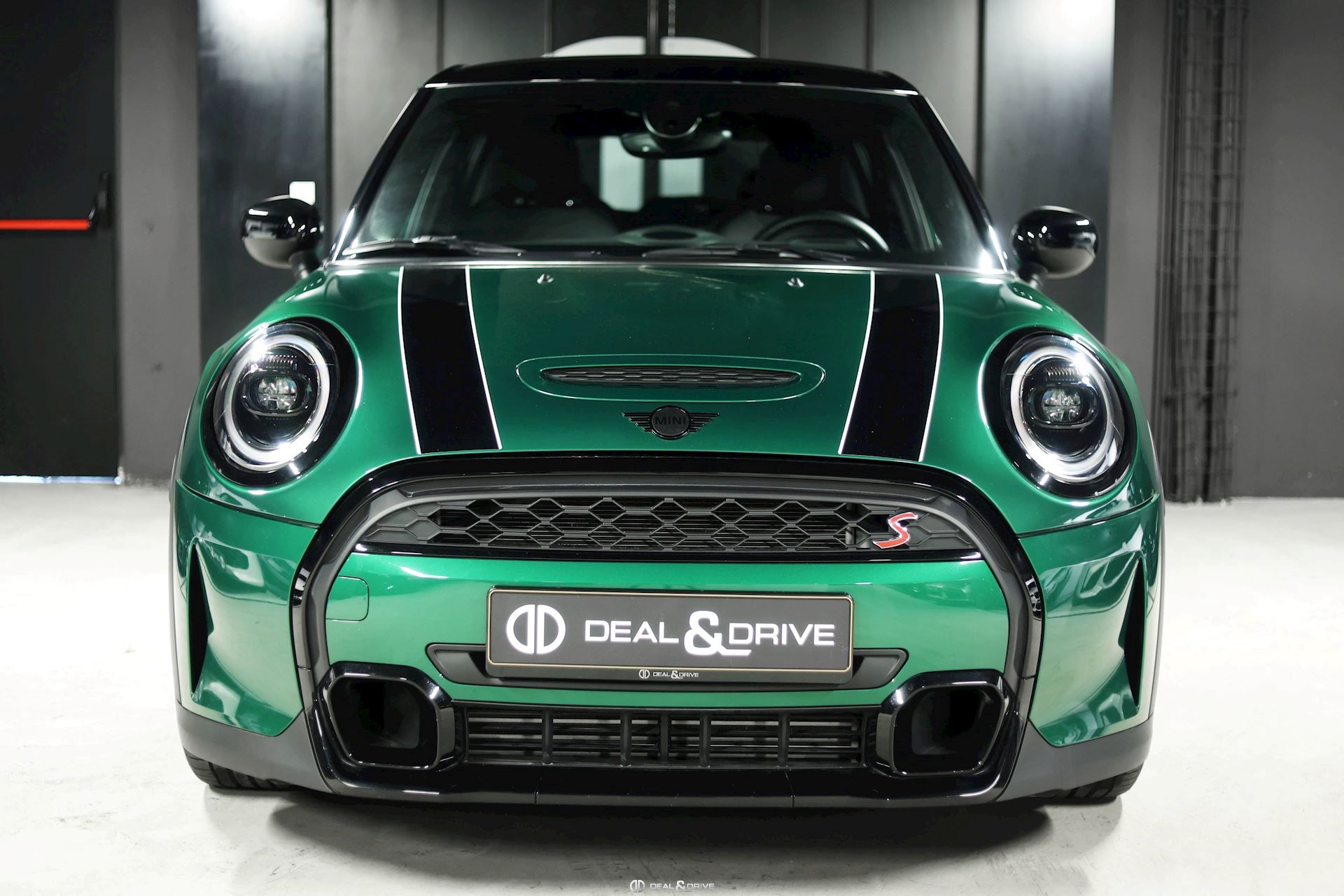 Pack Piano Black extérieur Toit noir Coques de rétroviseur en noir Bandes décoratives sur le capot en noir Poignées de portes en noir Contours des feux en noir Logos Mini noirs Jantes alliage léger 17’’ Vitrage arrière surteinté