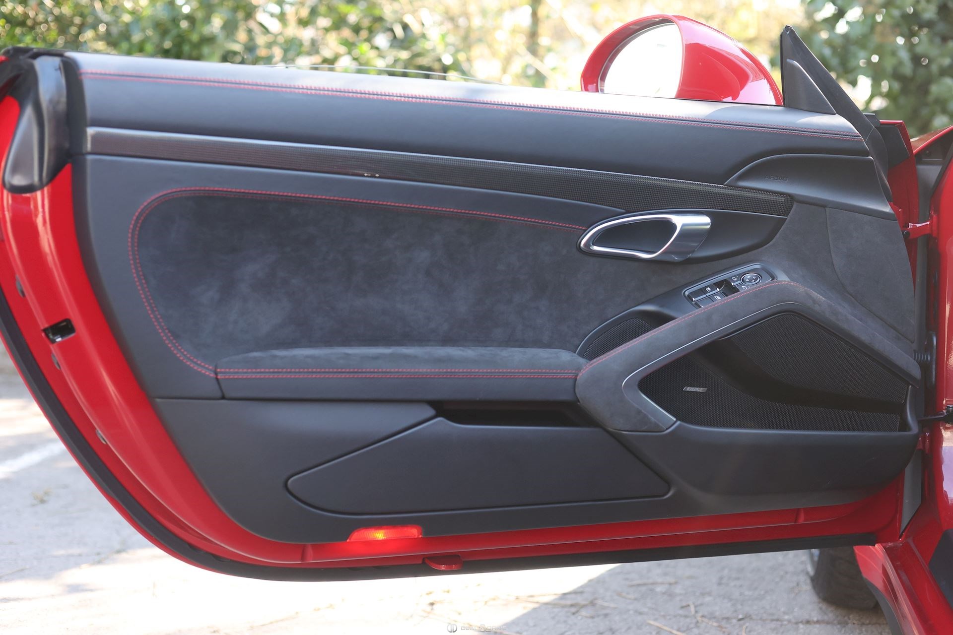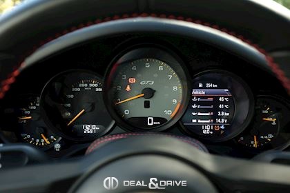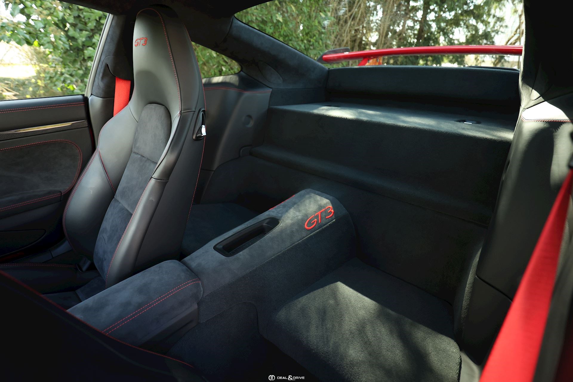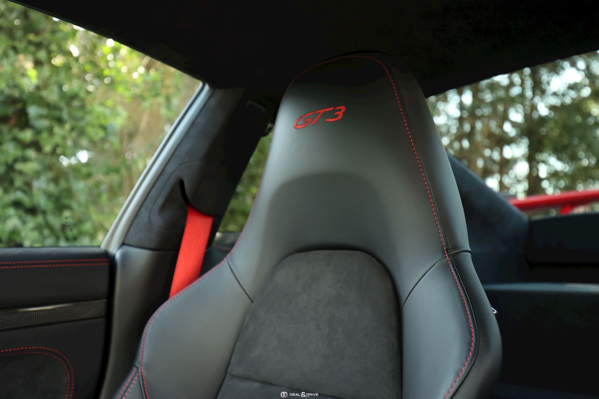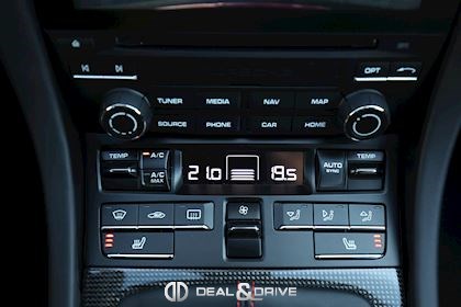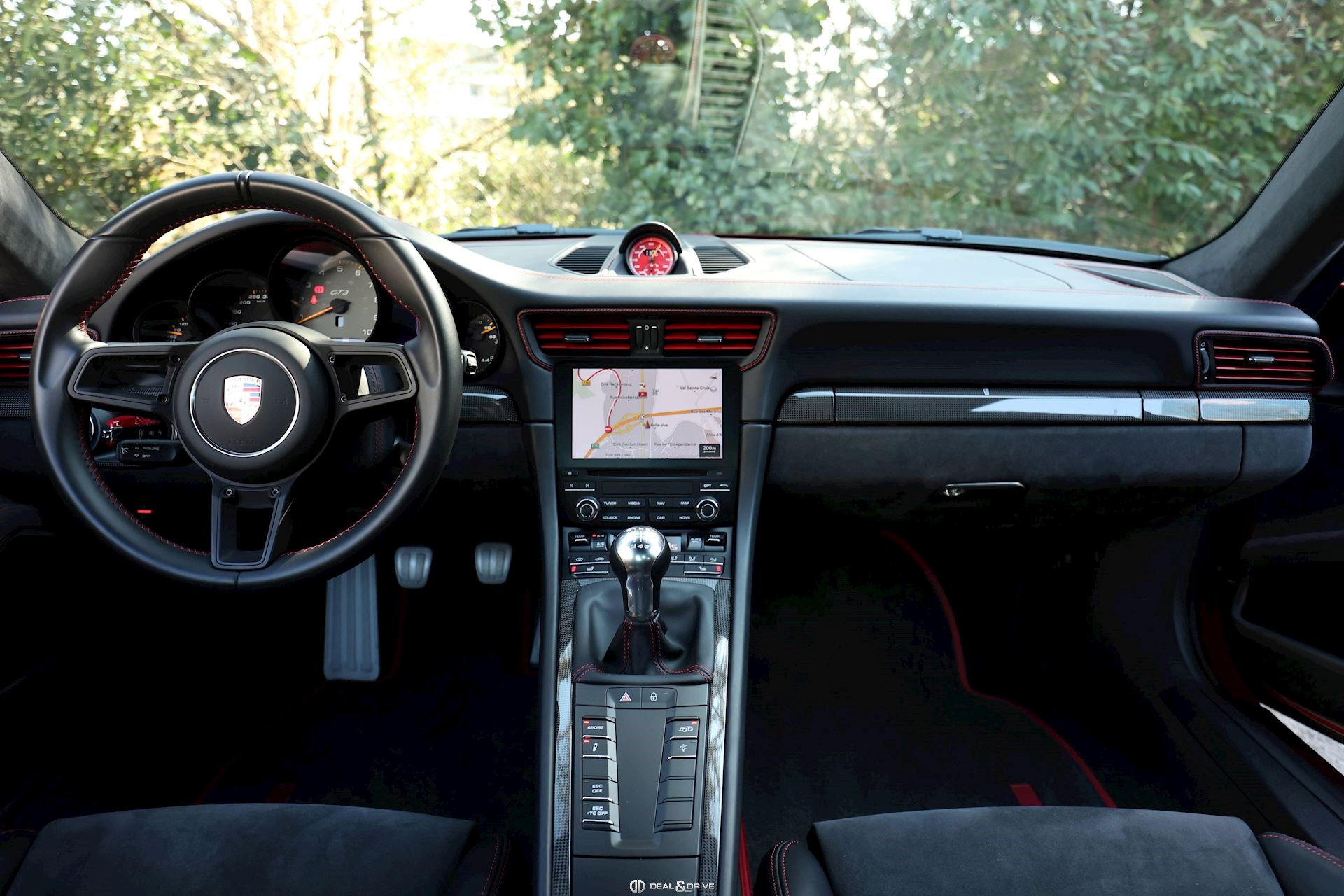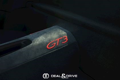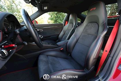 Pack Intérieur carbone Pack coutures décoratives en rouge Pack additionnel intérieur de panneaux de porte en cuir et Alcantara Pack additionnel cuir Baguettes des seuils de porte personnalisées en carbone, illuminées Colonne de direction en cuir Inscription ‘’GT3’’ brodée dans les appuie-têtes en rouge Volant en cuir avec surpiqûres rouges Ceintures de sécurité en couleur Rouge Indien Sortie des ceintures de sécurité en Alcantara Lamelles des buses d’aération peintes en rouge Tapis de sol Porsche personnalisés gansés de cuir rouge Filet de rangement Sellerie cuir et Alcantara Sièges Sport adaptatif Plus Sièges électriques 18 voies Sièges chauffants Dossier des sièges Sport Plus en cuir Tunnel central avant en cuir Accoudoir central en Alcantara avec logo Porsche Climatisation automatique 2 zones Clefs du véhicule peintes en couleur carrosserie Plafonnier en Alcantara noir Pare-soleil en Alcantara Pédalier en Aluminium