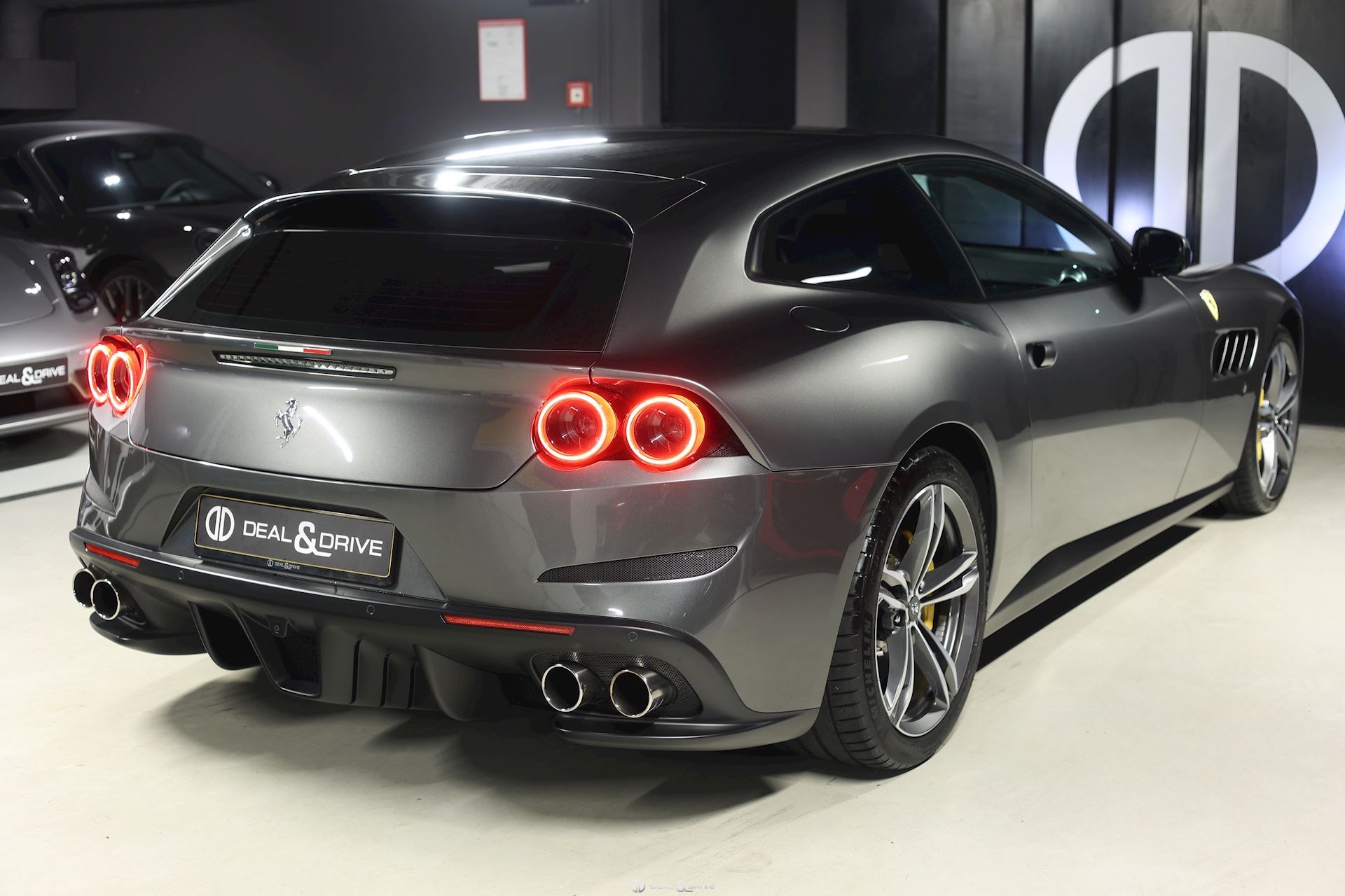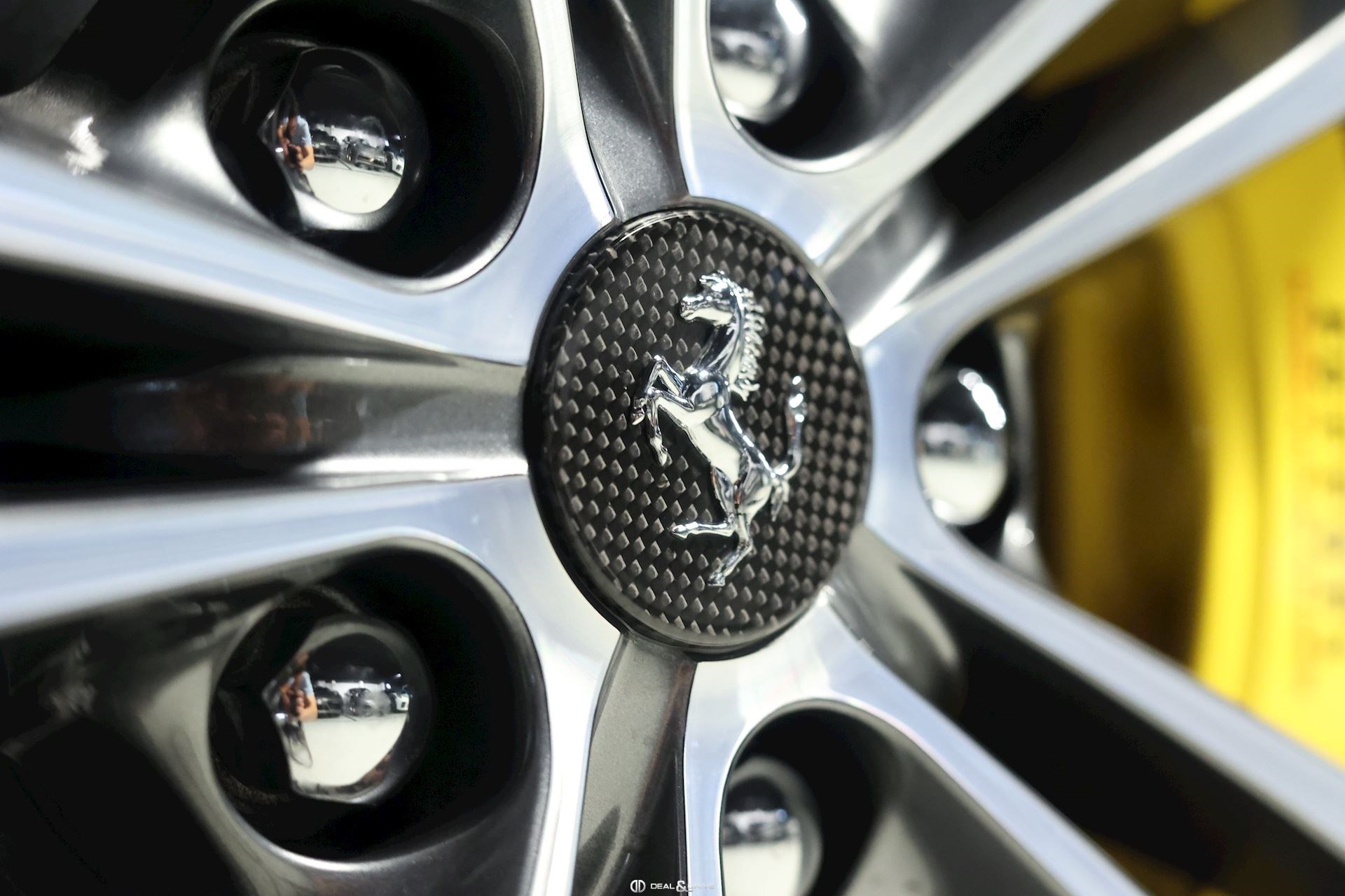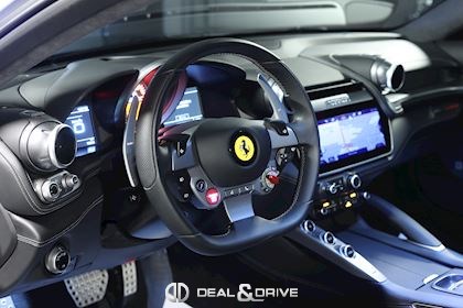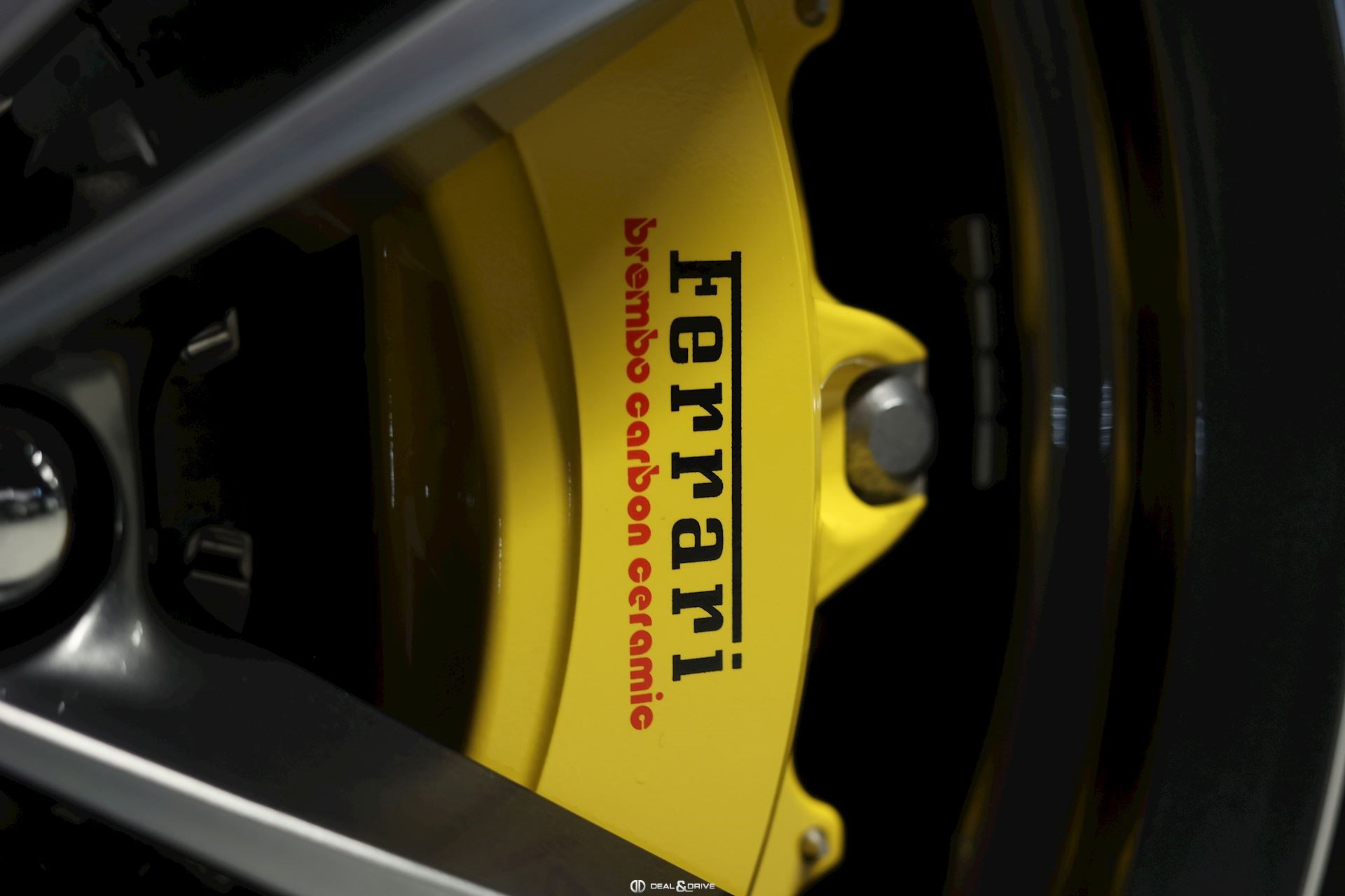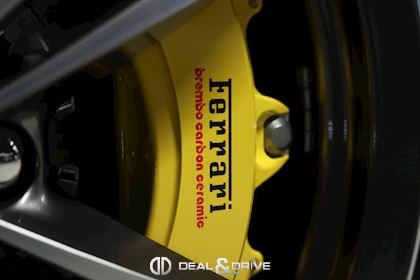 Equipements : EXTÉRIEUR CALY Etriers de freins jaunes CFG1 Calandre finition chromée CUPC Caches moyeux en carbone LOGO Emblème « Scuderia Ferrari » sur les ailes avant RSFD Jantes en alliage 20’’ finition diamant Freins carbone céramique Hayon électrique Rétroviseurs extérieurs électriques et rabattables Rétroviseurs extérieurs à mémoire et avec fonction anti-éblouissement
