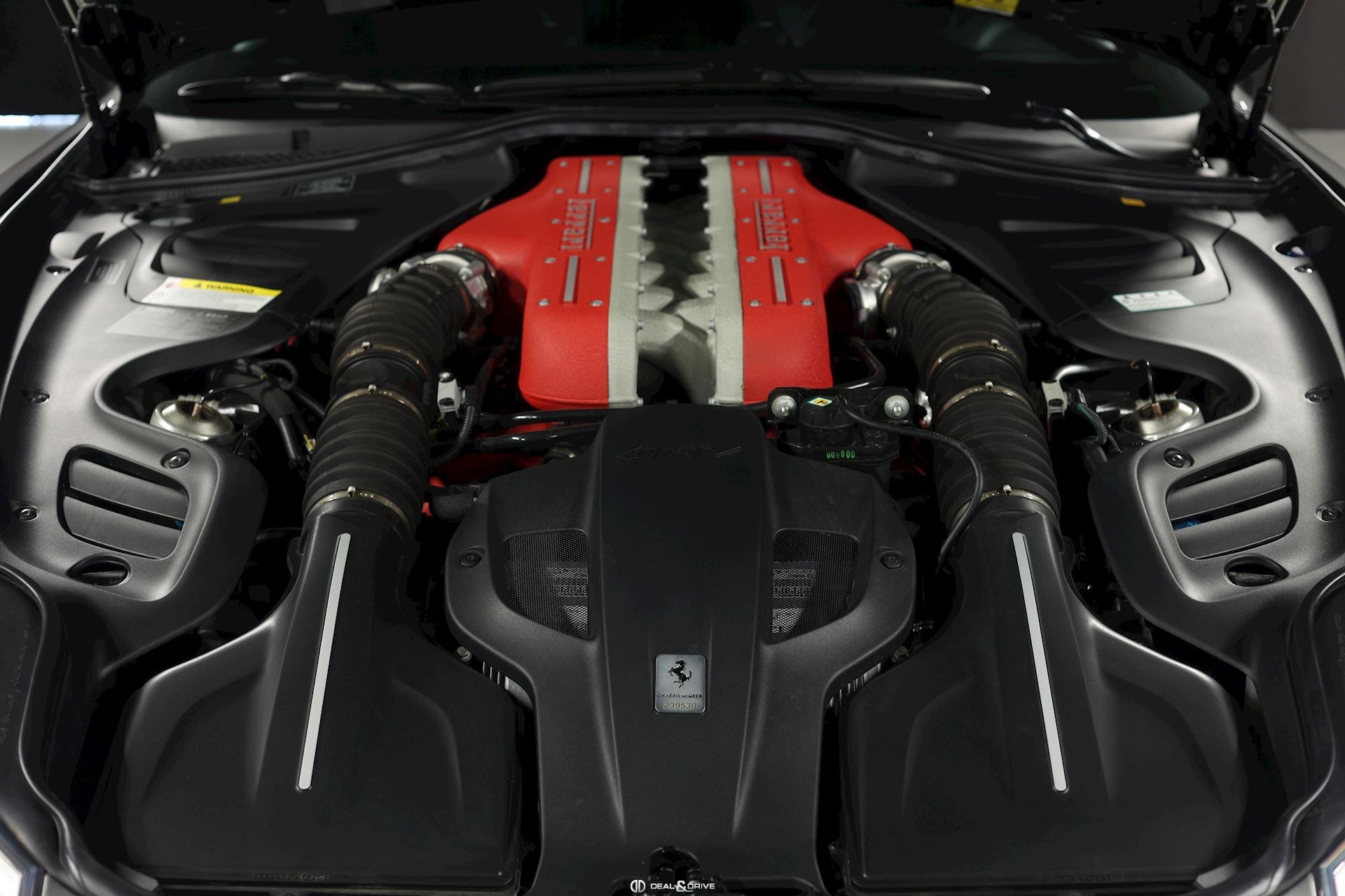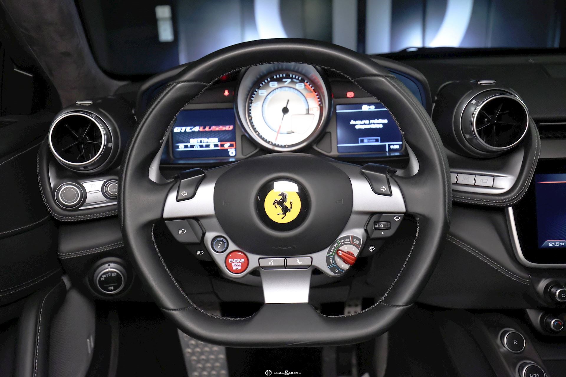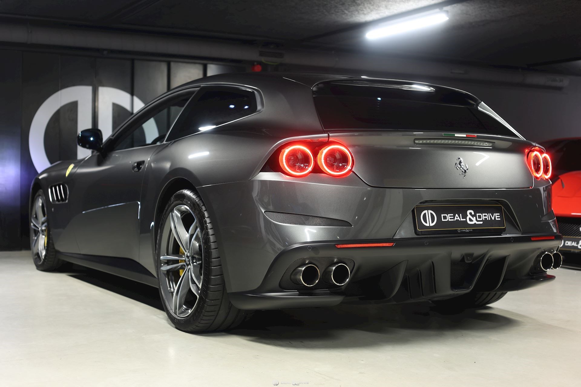 Equipements : EXTÉRIEUR CALY Etriers de freins jaunes CFG1 Calandre finition chromée CUPC Caches moyeux en carbone LOGO Emblème « Scuderia Ferrari » sur les ailes avant RSFD Jantes en alliage 20’’ finition diamant Freins carbone céramique Hayon électrique Rétroviseurs extérieurs électriques et rabattables Rétroviseurs extérieurs à mémoire et avec fonction anti-éblouissement