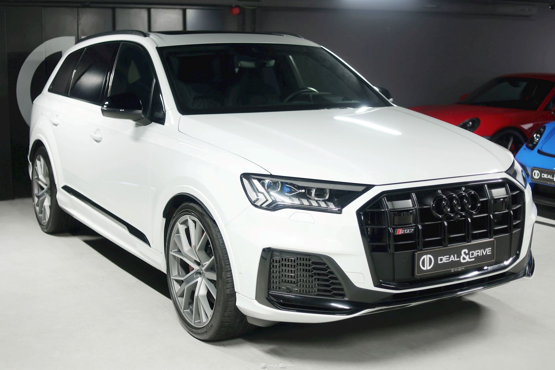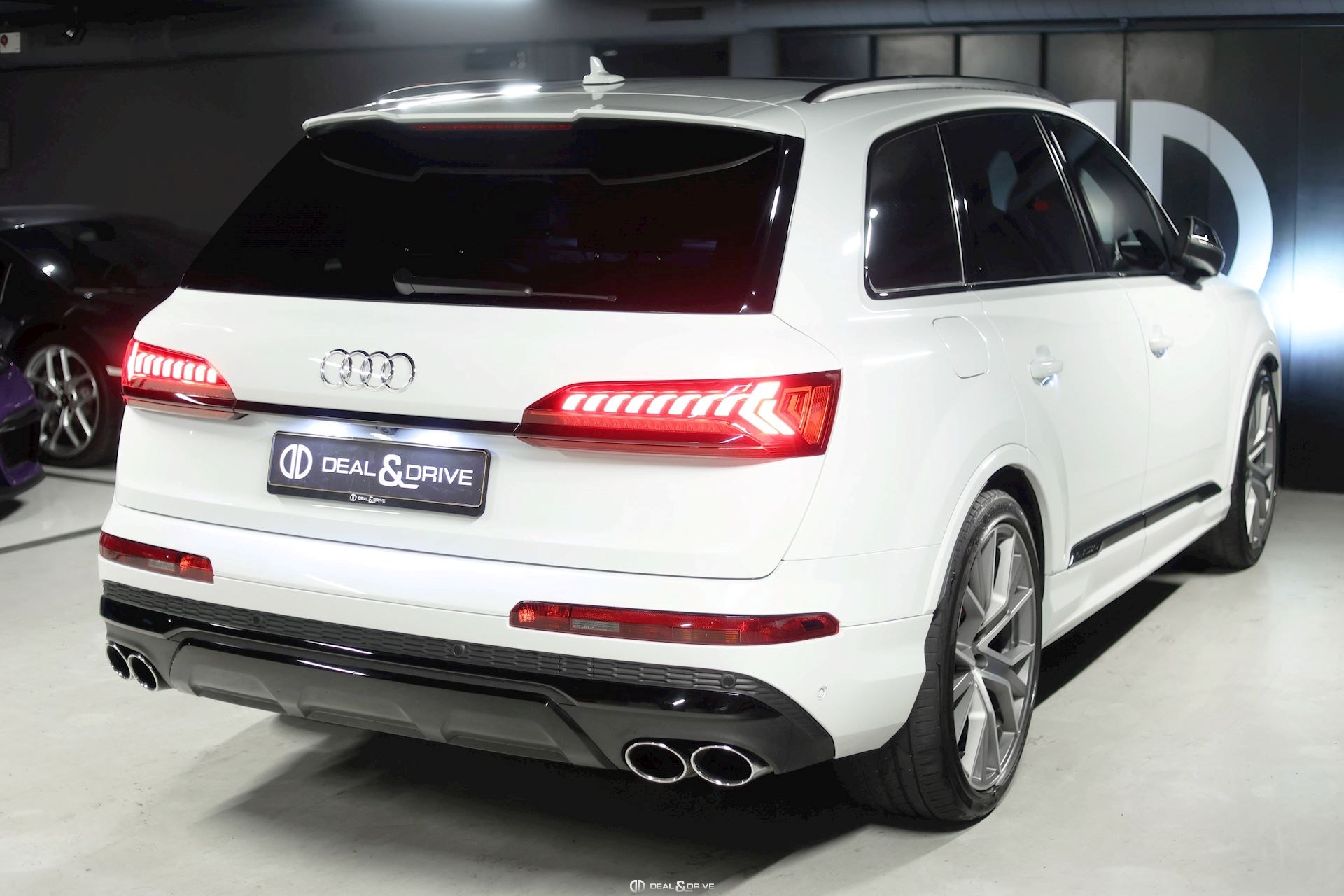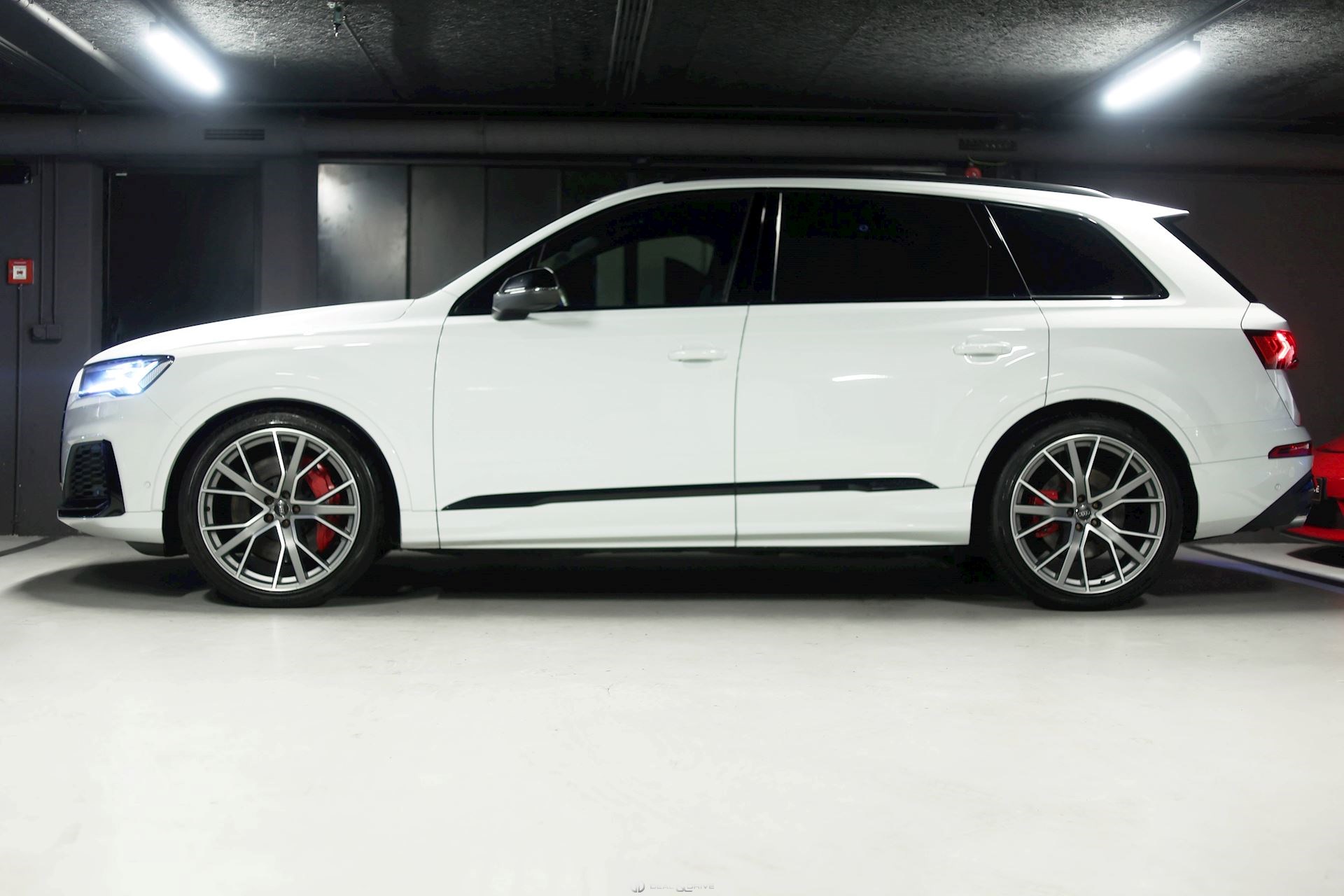 EXTÉRIEUR Hayon électrique Attelage rétractable électriquement Etriers de frein, peints en rouge Jantes alliage léger 22’’ Lave-phares Vitrage arrière surteinté Rétroviseurs extérieurs électriques, rabattables et chauffants Toit ouvrant panoramique
