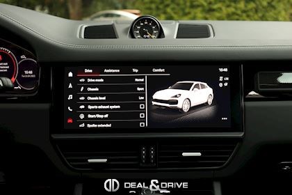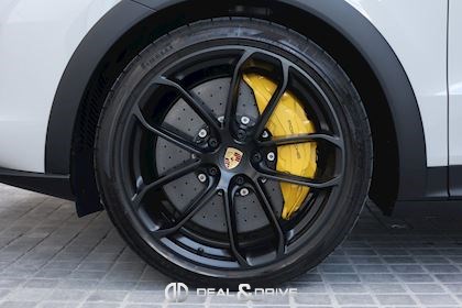 Equipements : EXTÉRIEUR Désignation du modèle peint en Noir brillant Logo Porsche peint en Noir satiné Bouchon de réservoir en Aluminium Jantes 22’’ GT Design en Noir satiné Vitrage arrière surteinté Entourage des vitres latérales en Noir brillant Partie supérieure des rétroviseurs SportDesign en Carbone Toit en carbone structuré Système d'échappement sport avec double sorties centrales en titane Porsche Ceramic Composite Brake PCCB Étriers de frein en Jaune Rétroviseurs extérieurs électriques et rabattables Hayon électrique Diffuseur arrière en carbone