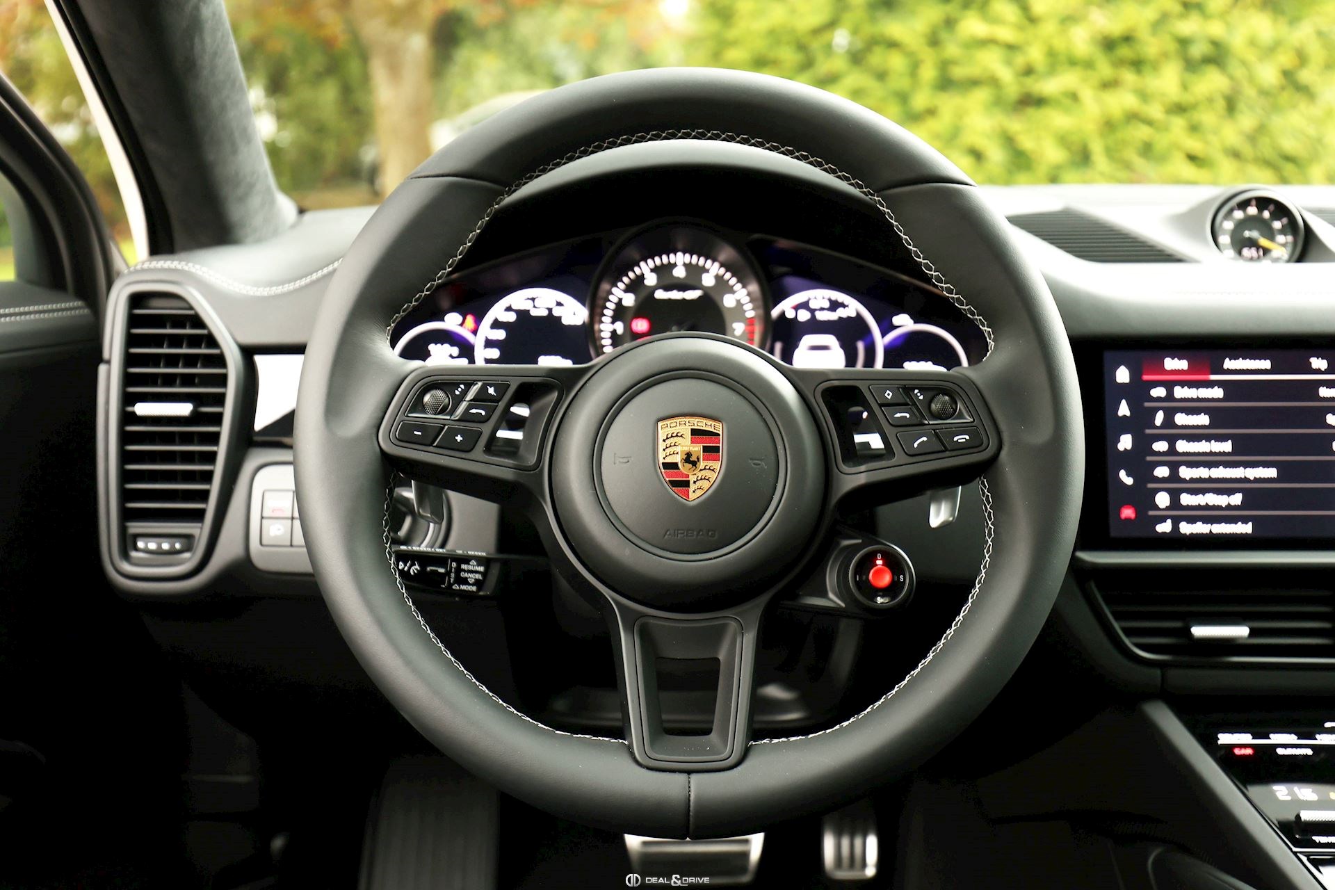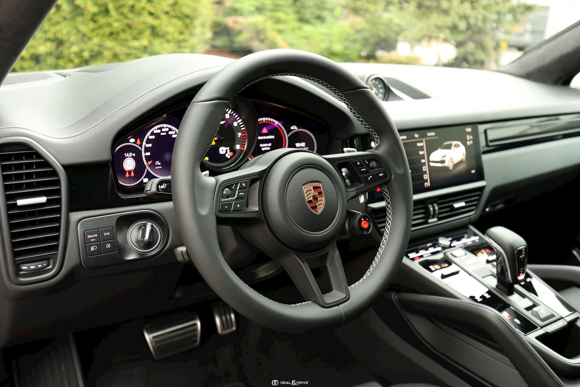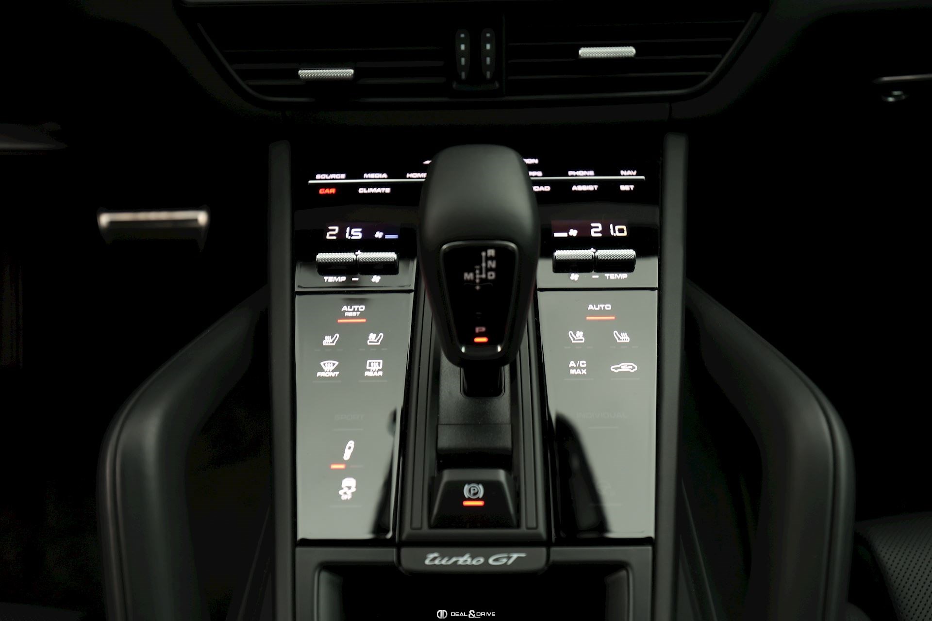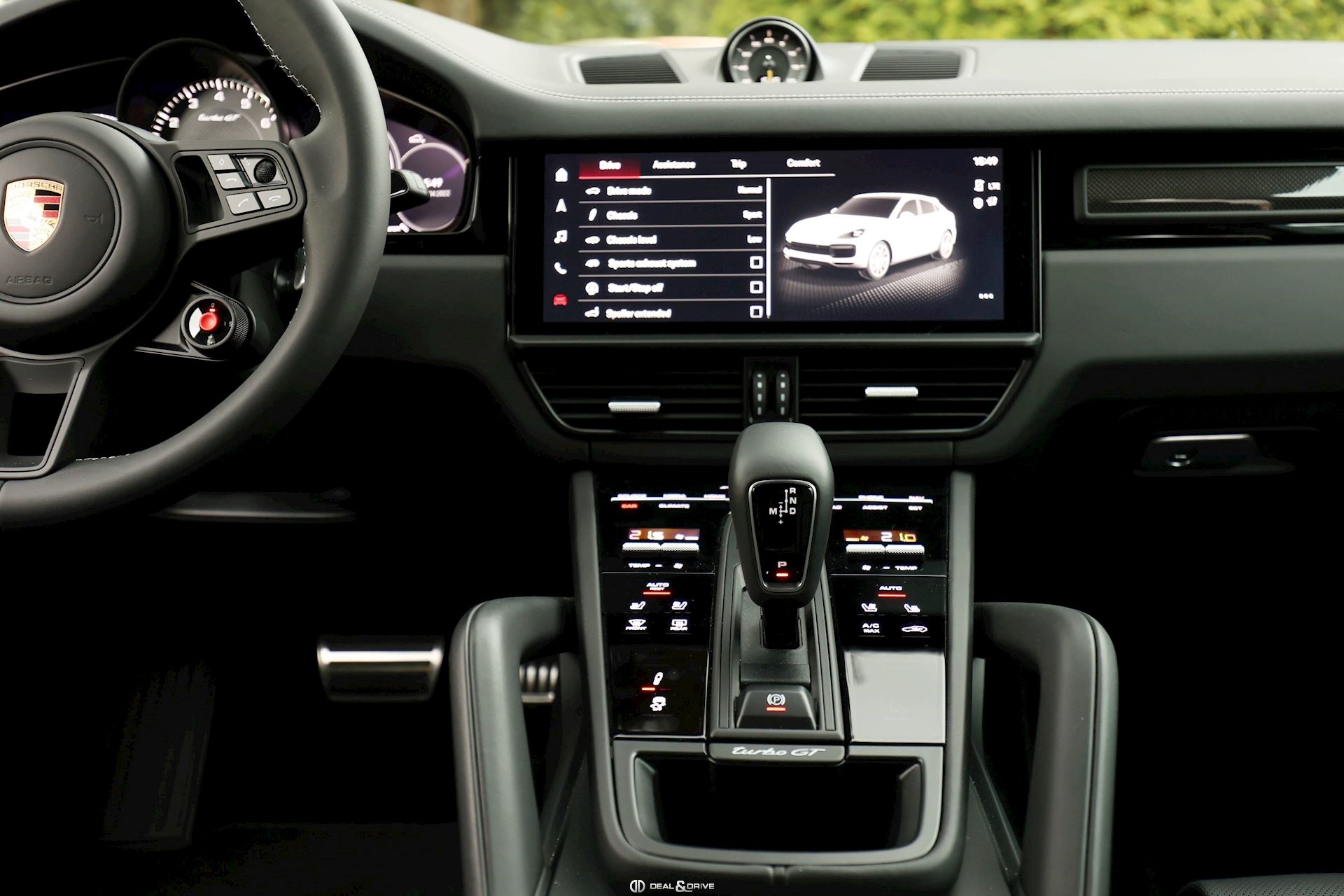 INTÉRIEUR Intérieur tout cuir Noir Pack intérieur coutures décoratives en couleur contrastante Ionisateur d’intérieur Volant Sport en cuir multifonctions Volant chauffant Ecusson Porsche sur appuie-tête avant et arrière Pack Sport Chrono Pack intérieur Carbone Sièges avant Sport 18 voies Sièges avant ventilés Sièges avant chauffants Sièges arrière chauffants Siège conducteur avec fonction mémoire Seuils de porte en carbone Climatisation automatique 4 zones Tapis de sol Porsche Volant réglable électriquement