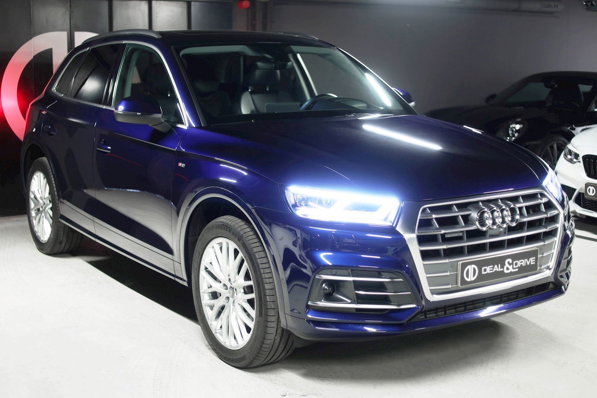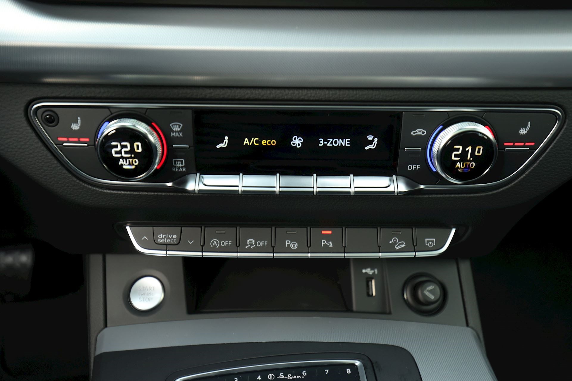Affichage tête haute Appuie-lombaires avant à réglages électriques Climatisation automatique Confort 3 zones Clé confort avec commande par capteur déverrouillage de hayon et Alarme antivol comprenant (ouverture + fermeture) Jantes alliage léger 20’’ Eclairage matrix LED Réception radio digitale (DAB) Rétroviseur extérieur à réglages électriques, dégivrant et rabattable, avec fonction anti-éblouissement et à mémoire Rétroviseur intérieur avec fonction anti-éblouissement Sellerie alcantara/cuir Siège chauffant avant Sièges avant électriquement réglables (gauche à mémoire) Sieges sport avant Toit panoramique électrique Téléphonie mains libres Bluetooth avec reconnaissance vocale (Audi Phone Box) Airbag conducteur et passager Airbag côté passager désactivable Airbag latéral avant Audi Drive Select Barres de toit anodisé Boîte automatique - Tiptronic (8 positions) Pré-équipement dispositif d'attelage Intérieur finition Aluminium Garniture de pavillon de toit en tissu Pack brillance Pack Eclairage/Vision/Lumière Pack fumeur Pack Rangement et Coffre Peinture métallisée Rideau pare-soleil sur vitres de portes arrière Réservoir à carburant 70 litres Audi Sound-System Supports Isofix pour siège enfant Tapis velours Suspension dynamique Système d'airbag crânien (Sideguard) Fonction freinage d'urgence en ville (Audi pre sense City) Système start/Stop Témoin contrôle pneumatiques Vitrage arrière surteinté (vitrage Privacy) Vitrage athermique teinté vert Volant cuir - 3 branches, multifonctions plus
