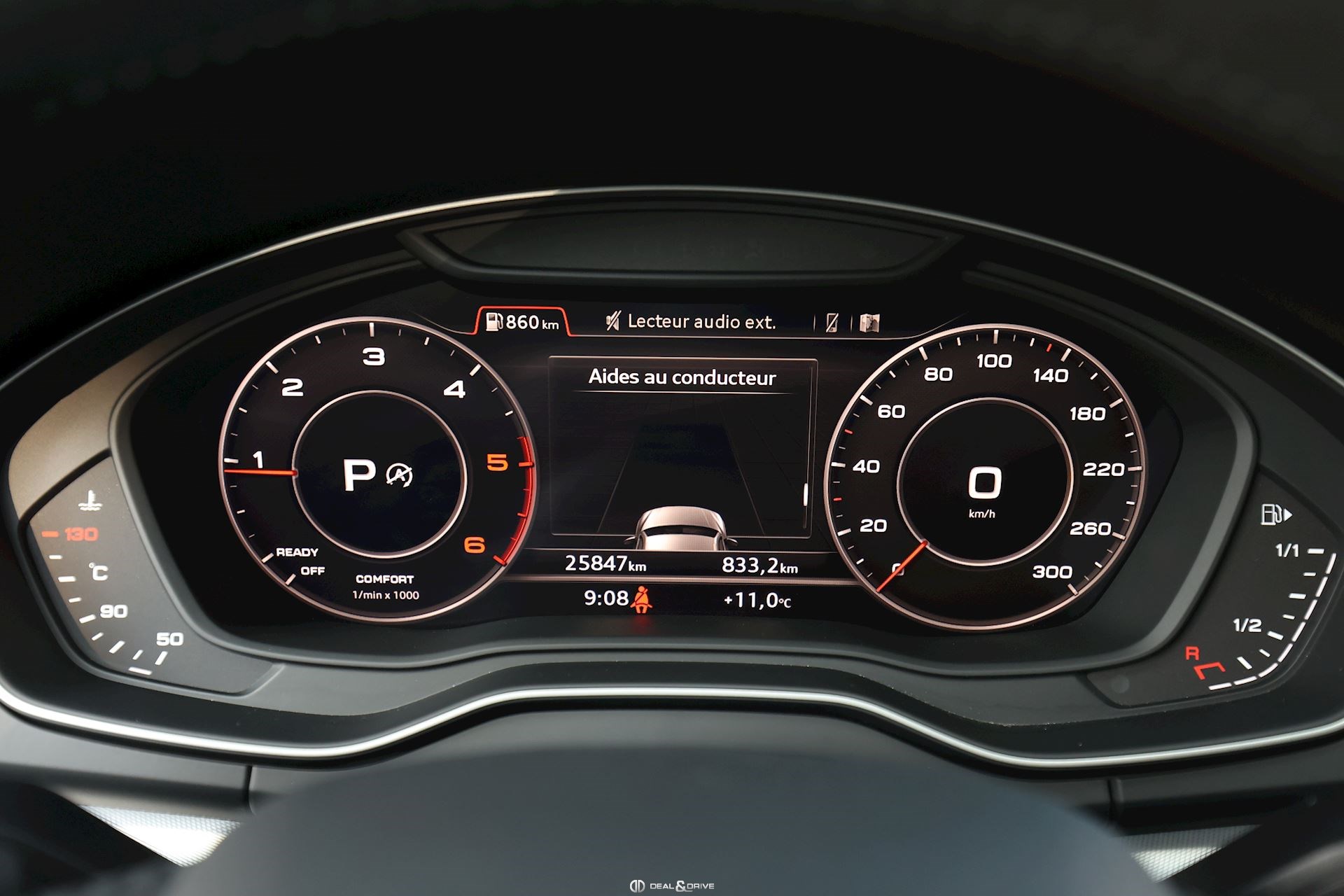 Pack Assistance Tour Feux de route automatiques Reconnaissance des panneaux de signalisation Régulateur de vitesse adaptatif Plus avec régulateur de distance Fonction freinage d'urgence en ville (Audi pre sense City) Avertissement de franchissement involontaire de ligne comprenant Assistant détresse avec identification des panneaux de circulation