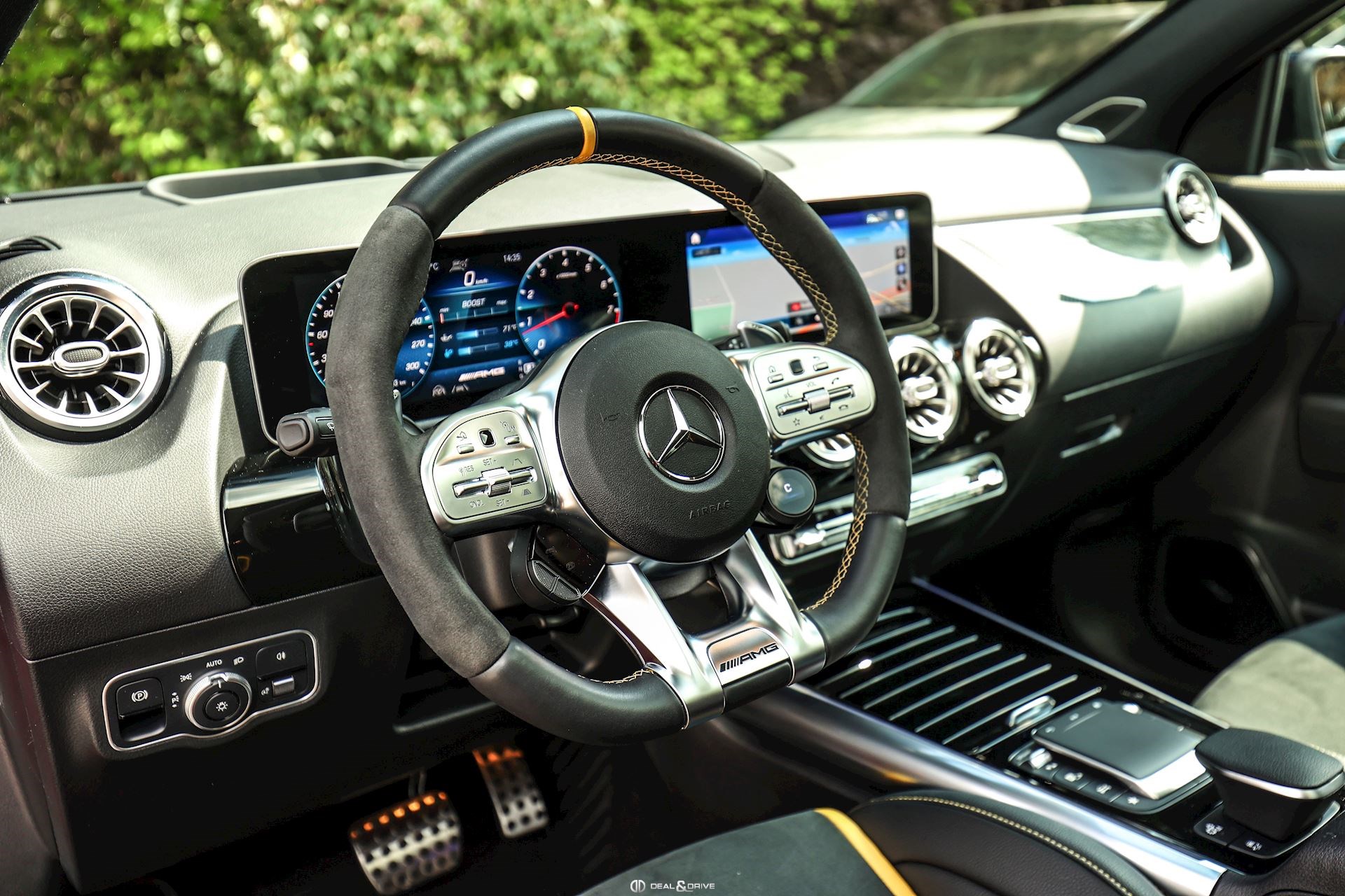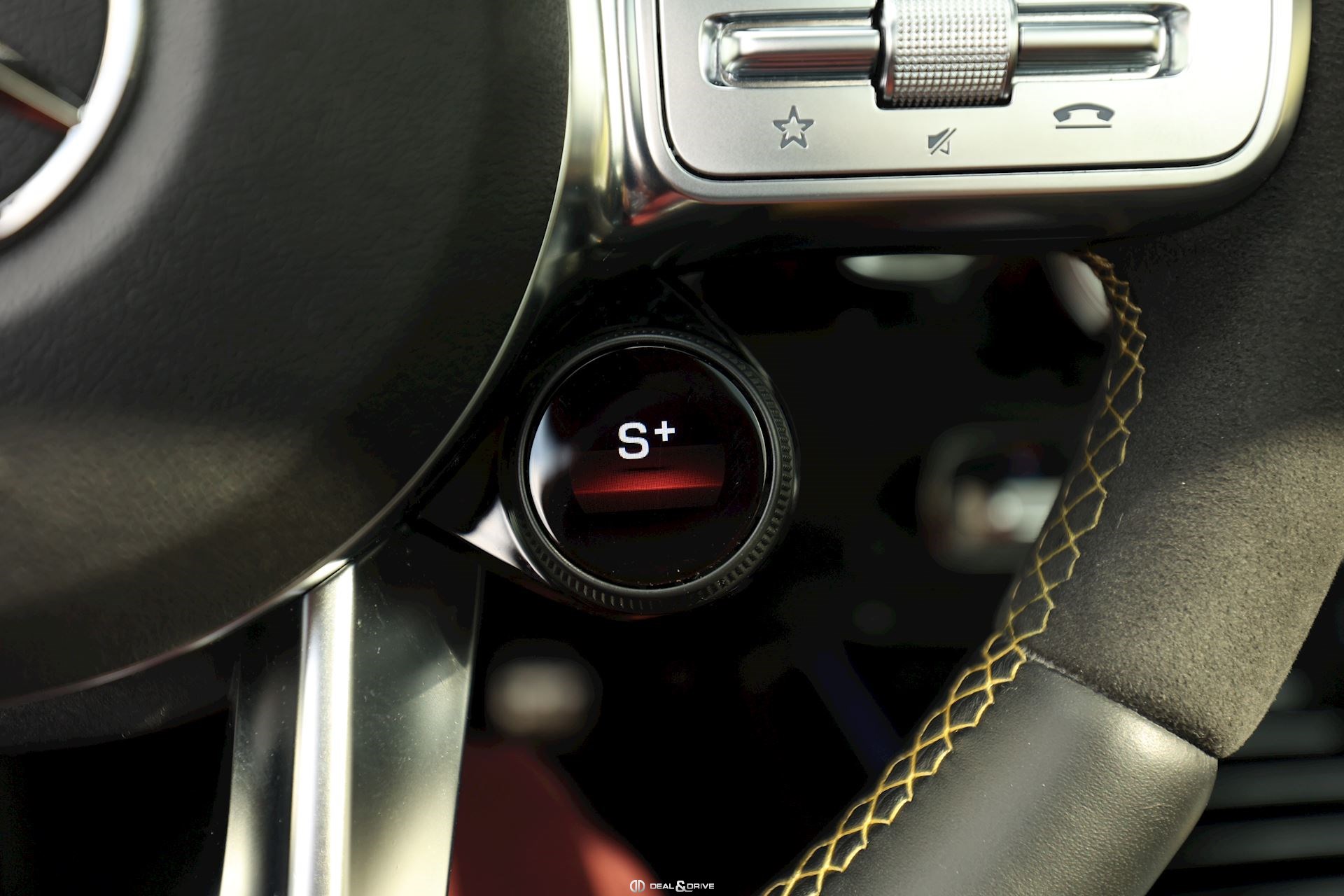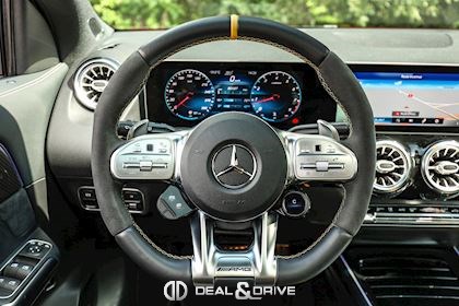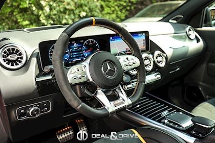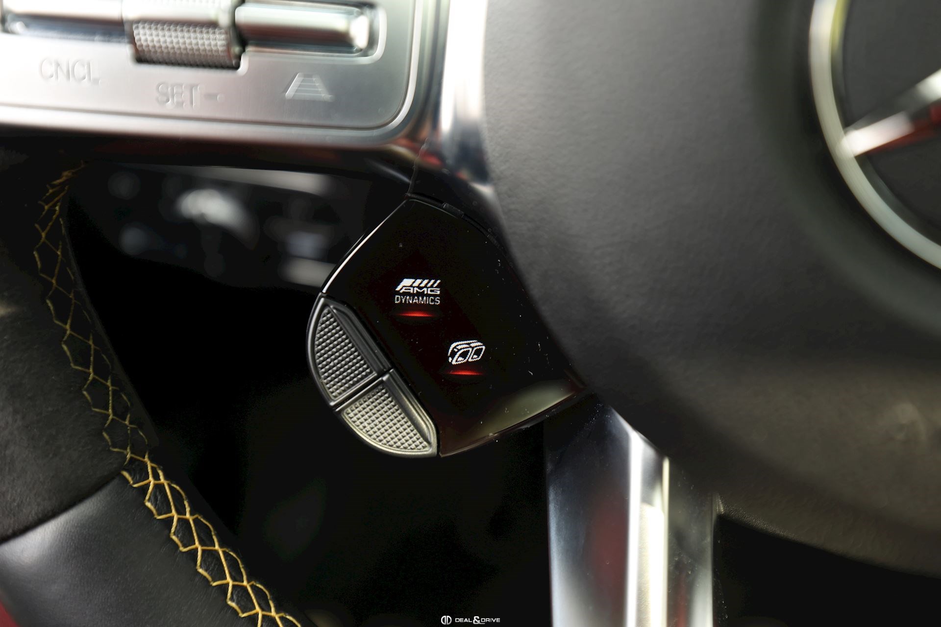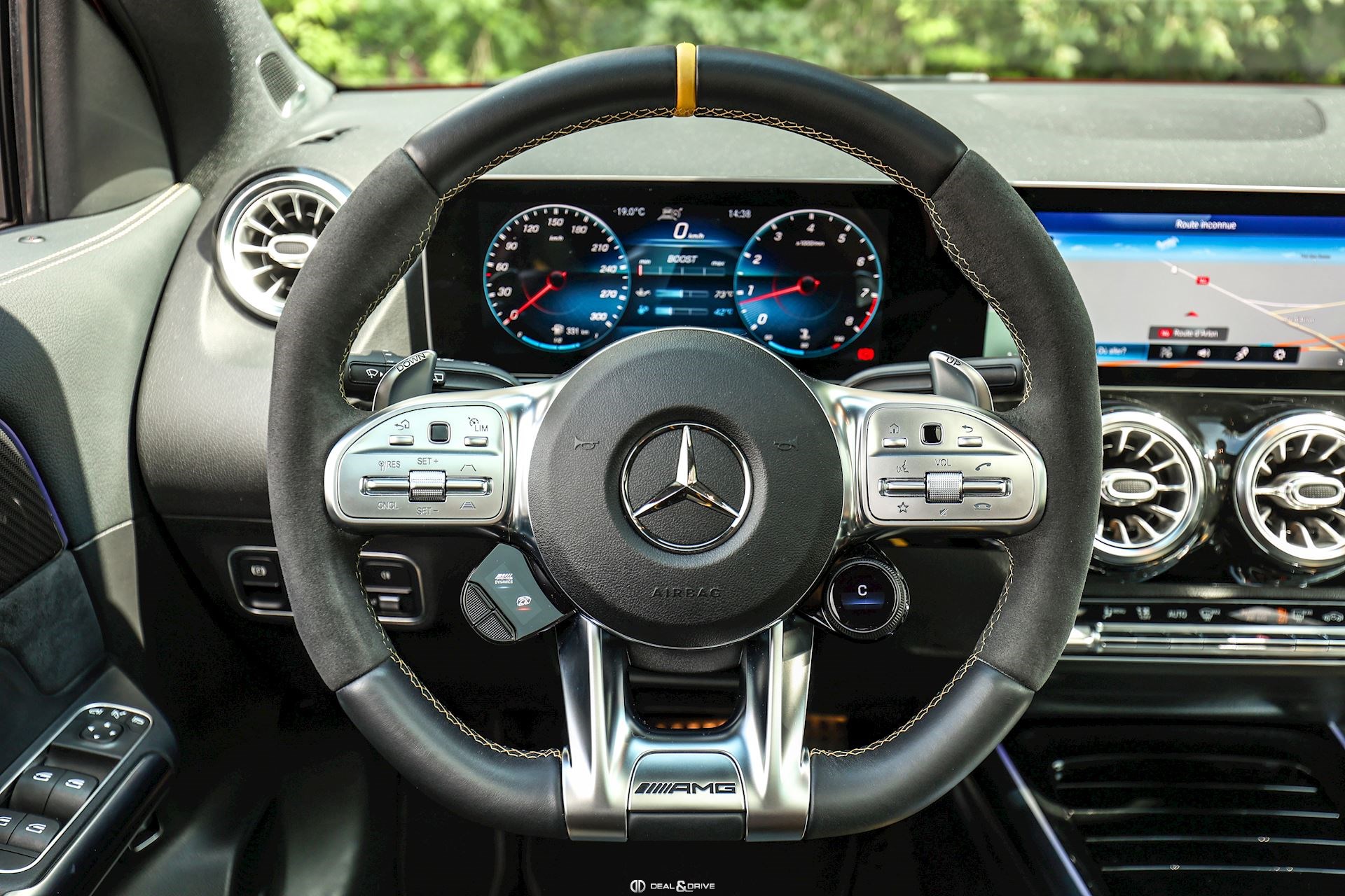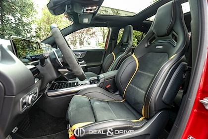 INTÉRIEUR Sellerie en cuir Artico et Dinamica Volant AMG Performance en cuir et Alcantara multifonctions Surpiqûres jaune Seuils de porte en Aluminium avec Monogramme éclairés Climatisation automatique 2 zones Thermotronic Plafonnier en Noir Tapis de sol AMG Banquette arrière coulissante Rideau occultant enroulable sur la console centrale avant Extincteur
