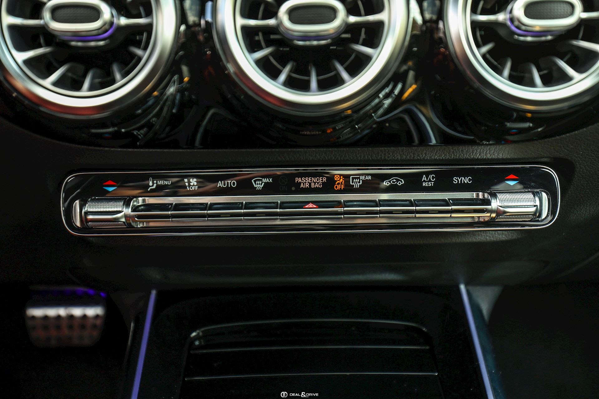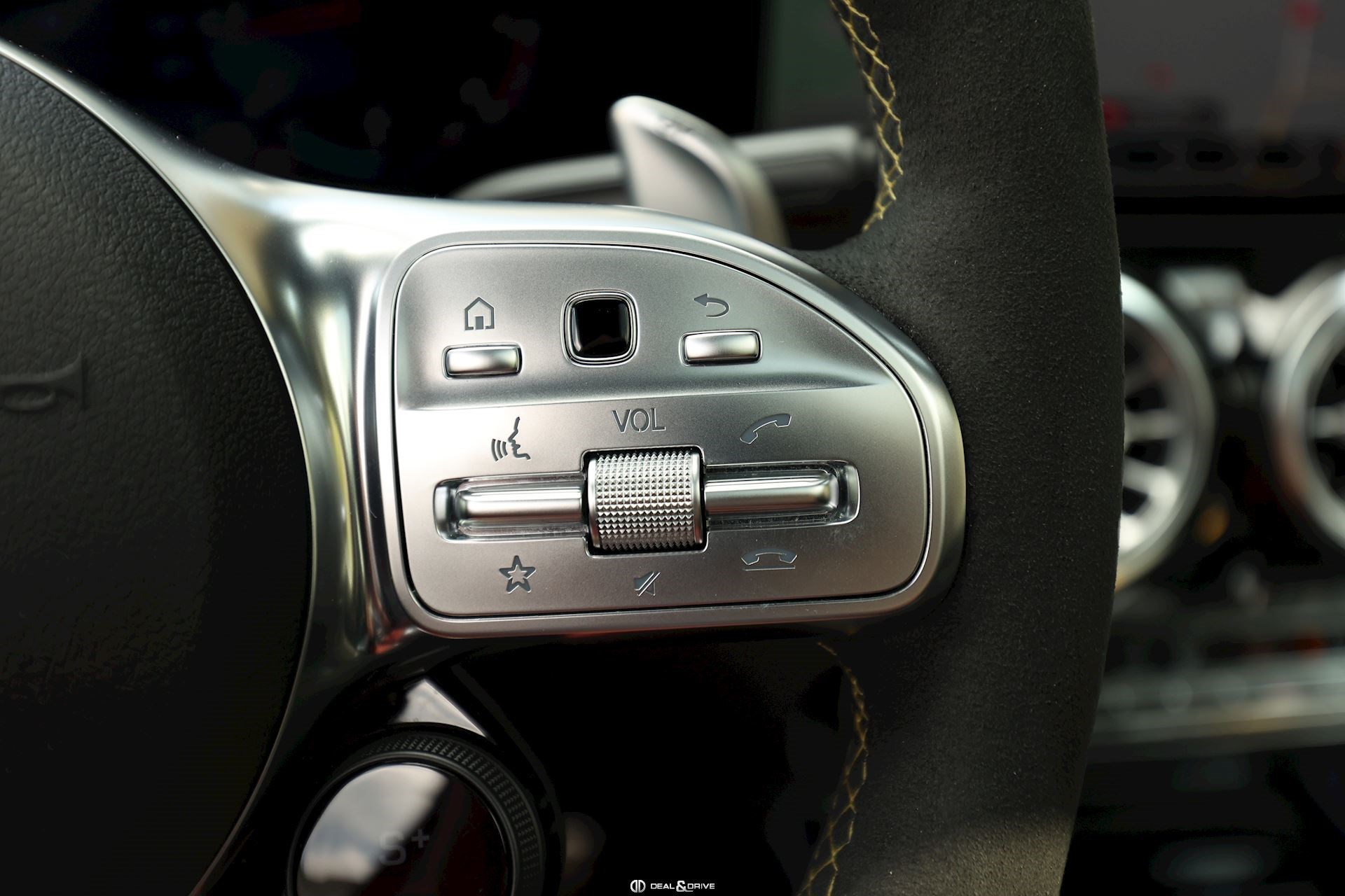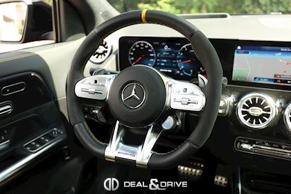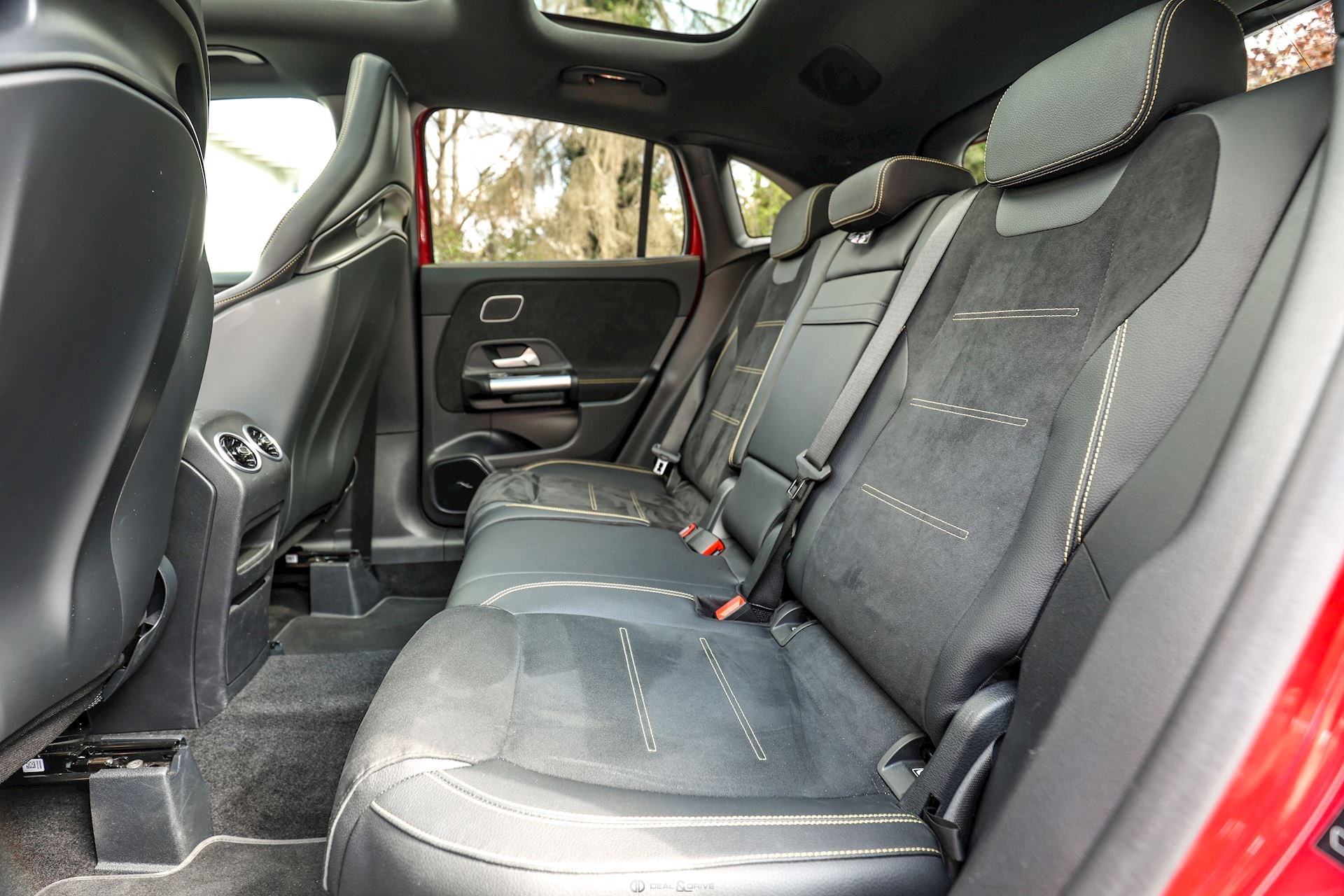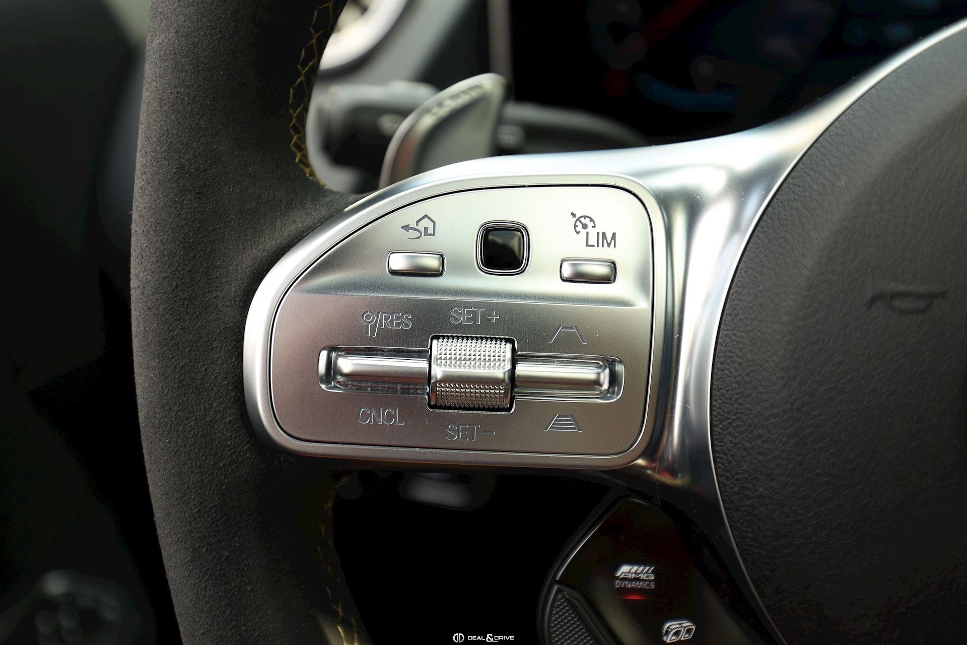 INTÉRIEUR Sellerie en cuir Artico et Dinamica Volant AMG Performance en cuir et Alcantara multifonctions Surpiqûres jaune Seuils de porte en Aluminium avec Monogramme éclairés Climatisation automatique 2 zones Thermotronic Plafonnier en Noir Tapis de sol AMG Banquette arrière coulissante Rideau occultant enroulable sur la console centrale avant Extincteur