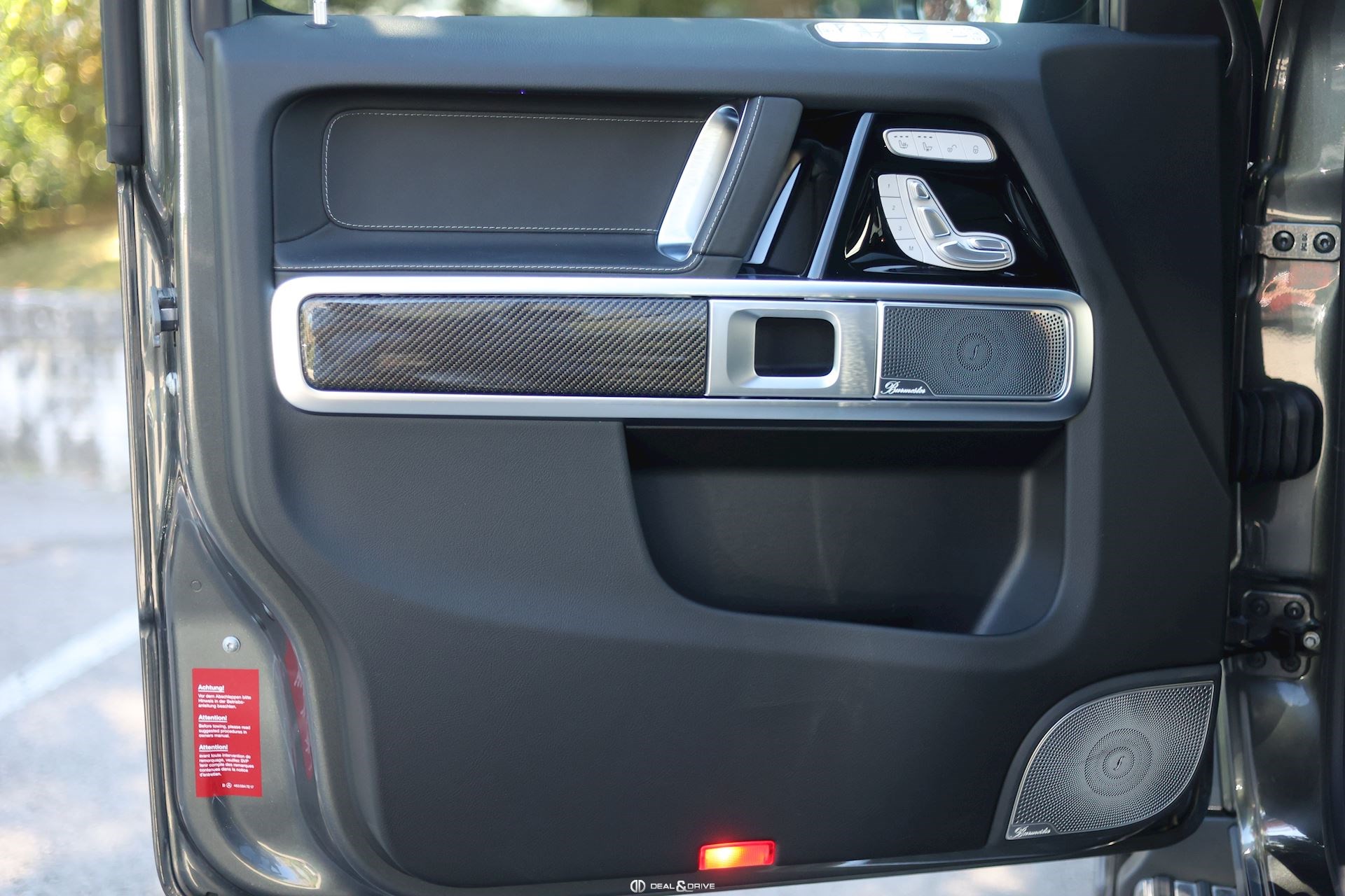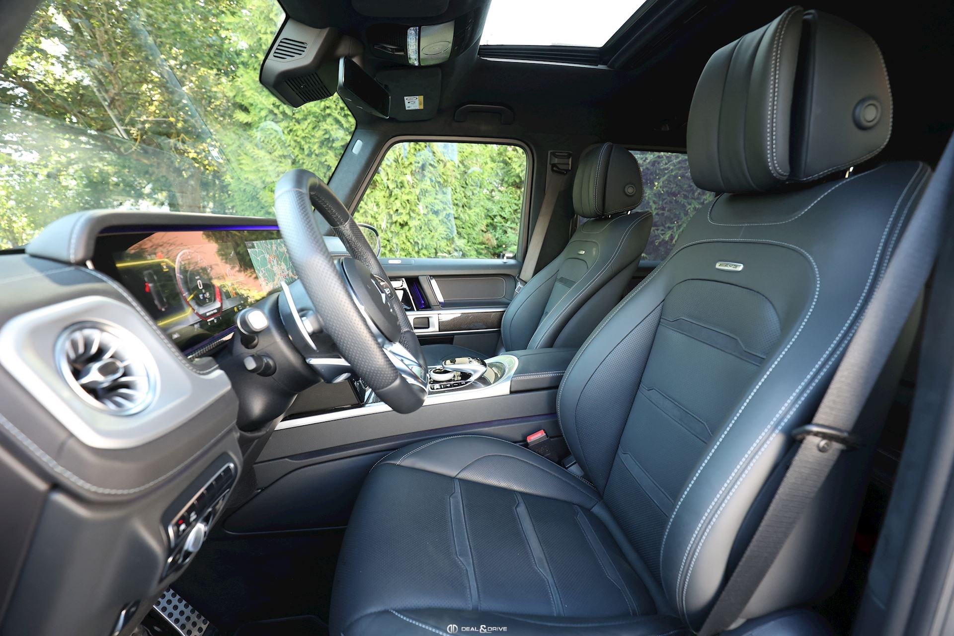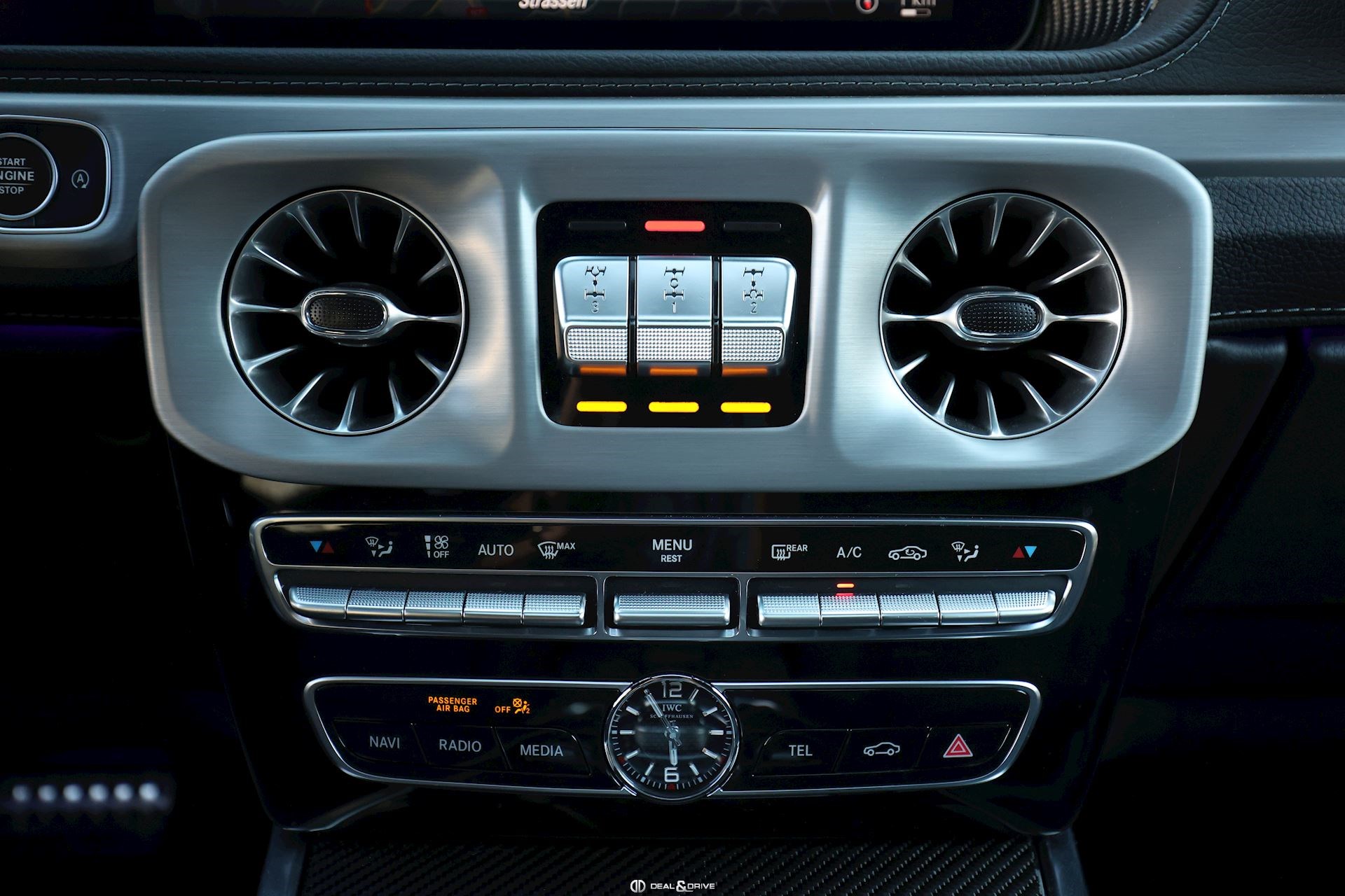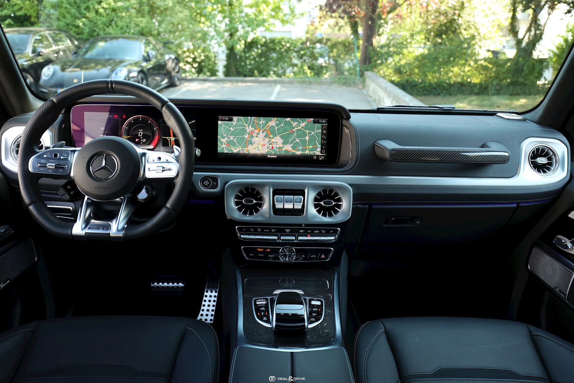 INTÉRIEUR Pack intérieur en carbone Sellerie en cuir Noir Sièges avant électriques Sièges avant avec fonction mémoire Sièges avant ventilés Sièges avant avec fonction massage Sièges avant chauffants Sièges arrière chauffants Sièges avant dynamiques Appuie-têtes confort à l’avant Horloge analogique IWC Volant en cuir perforé AMG, multifonctions Climatisation automatique 3 zones Thermotronic Plafonnier Noir Tapis de sol AMG Seuils de porte en inox éclairés Ioniseur d’air